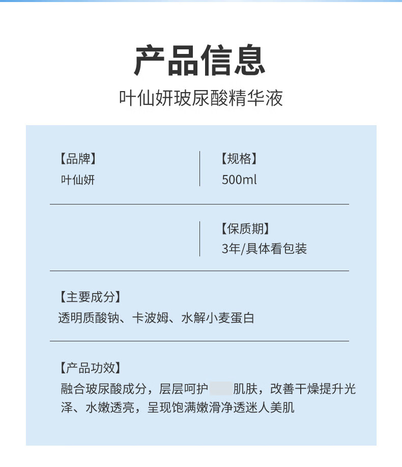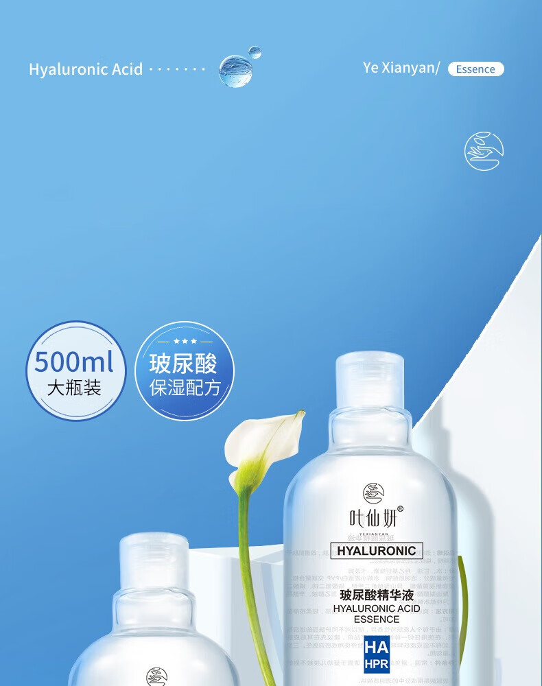 叶仙妍玻尿酸精华液500ml女生保湿精华