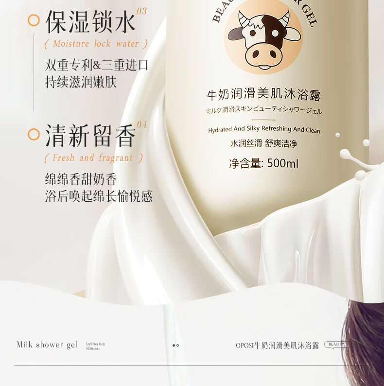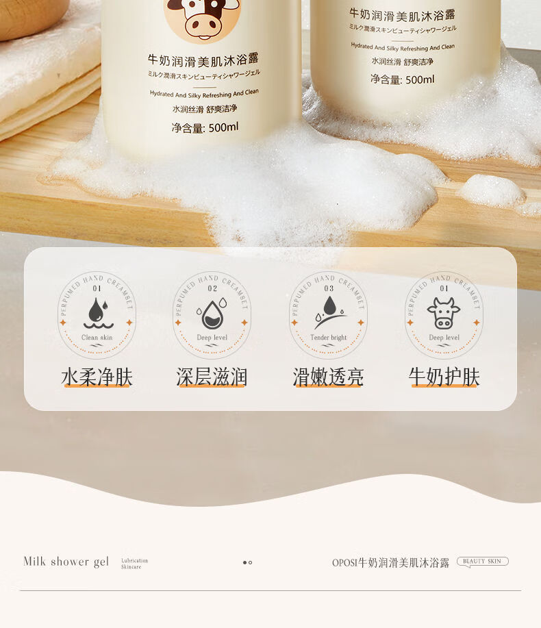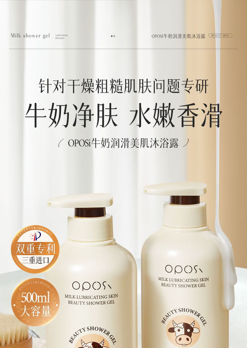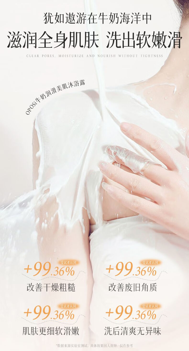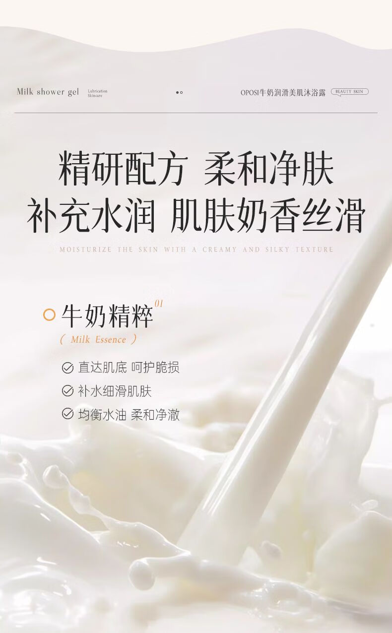 OPOSi牛奶沐浴露美白止痒去鸡皮男女持久留香秋冬滋润保湿嫩滑美肌乳液 【金榜TOP1】牛奶美肌香氛沐浴露500ml*1