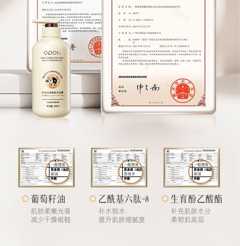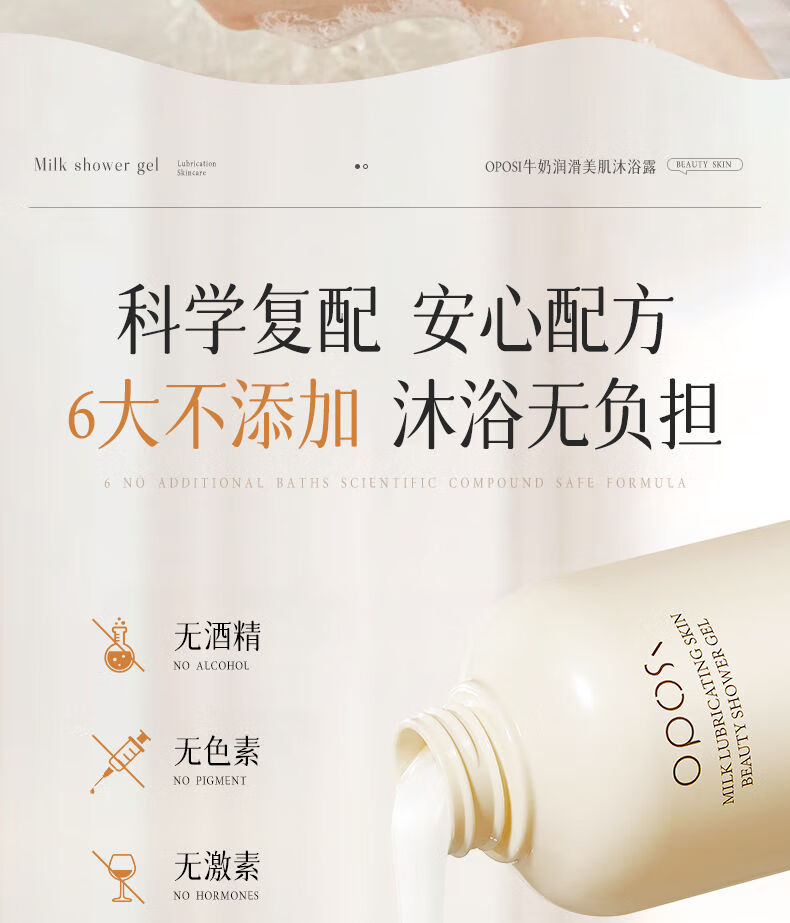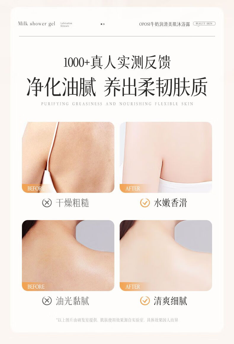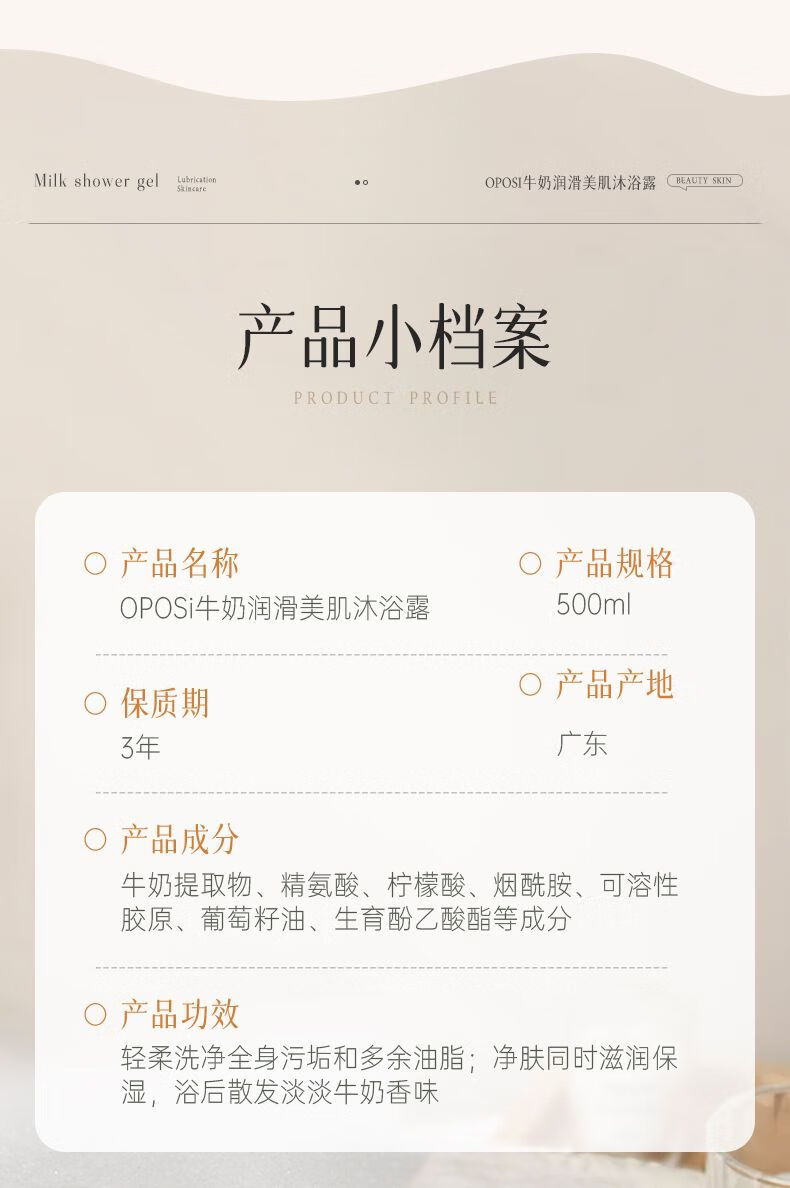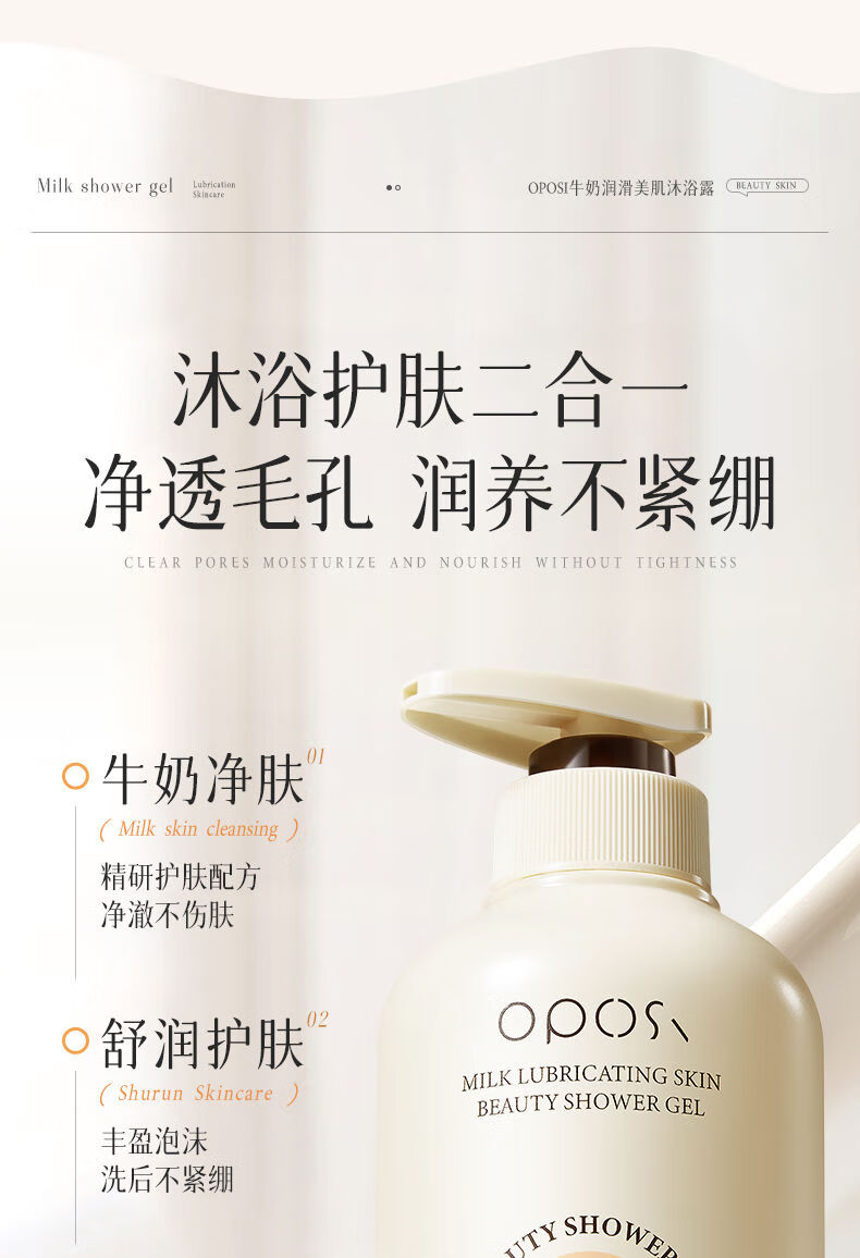 OPOSi牛奶沐浴露美白止痒去鸡皮男女持久留香秋冬滋润保湿嫩滑美肌乳液 【金榜TOP1】牛奶美肌香氛沐浴露500ml*1
