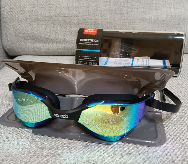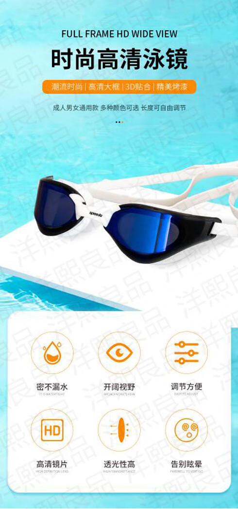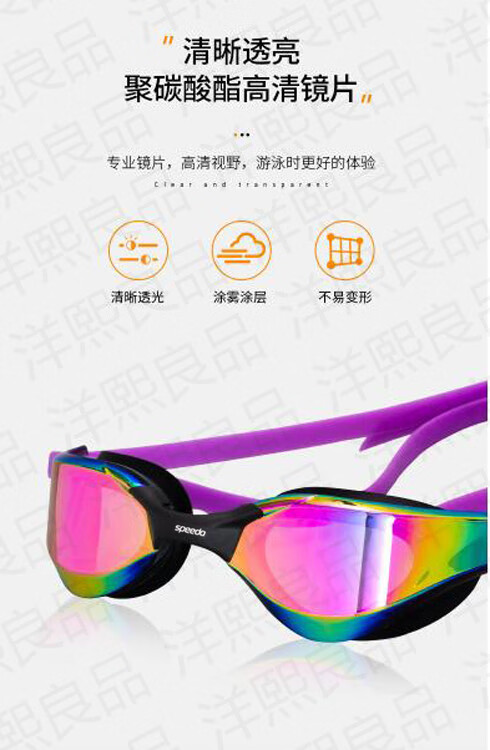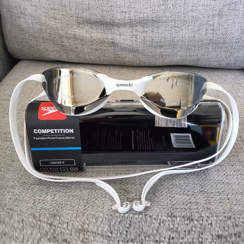 speedo速比涛泳镜高清防水防雾游泳竞技款眼镜男女通用 白色镀银