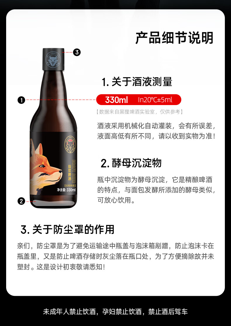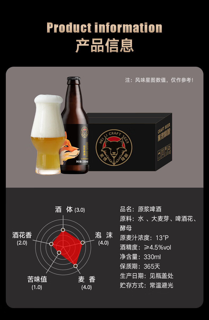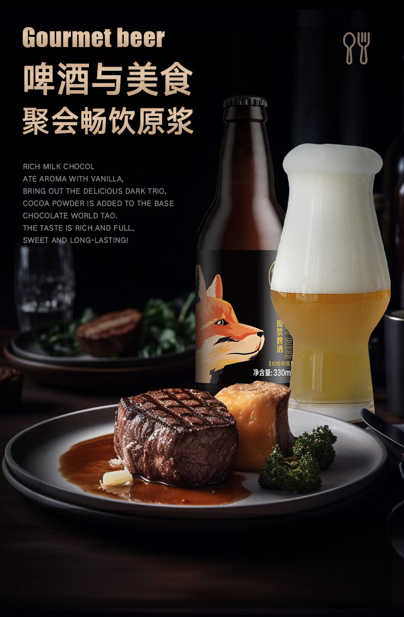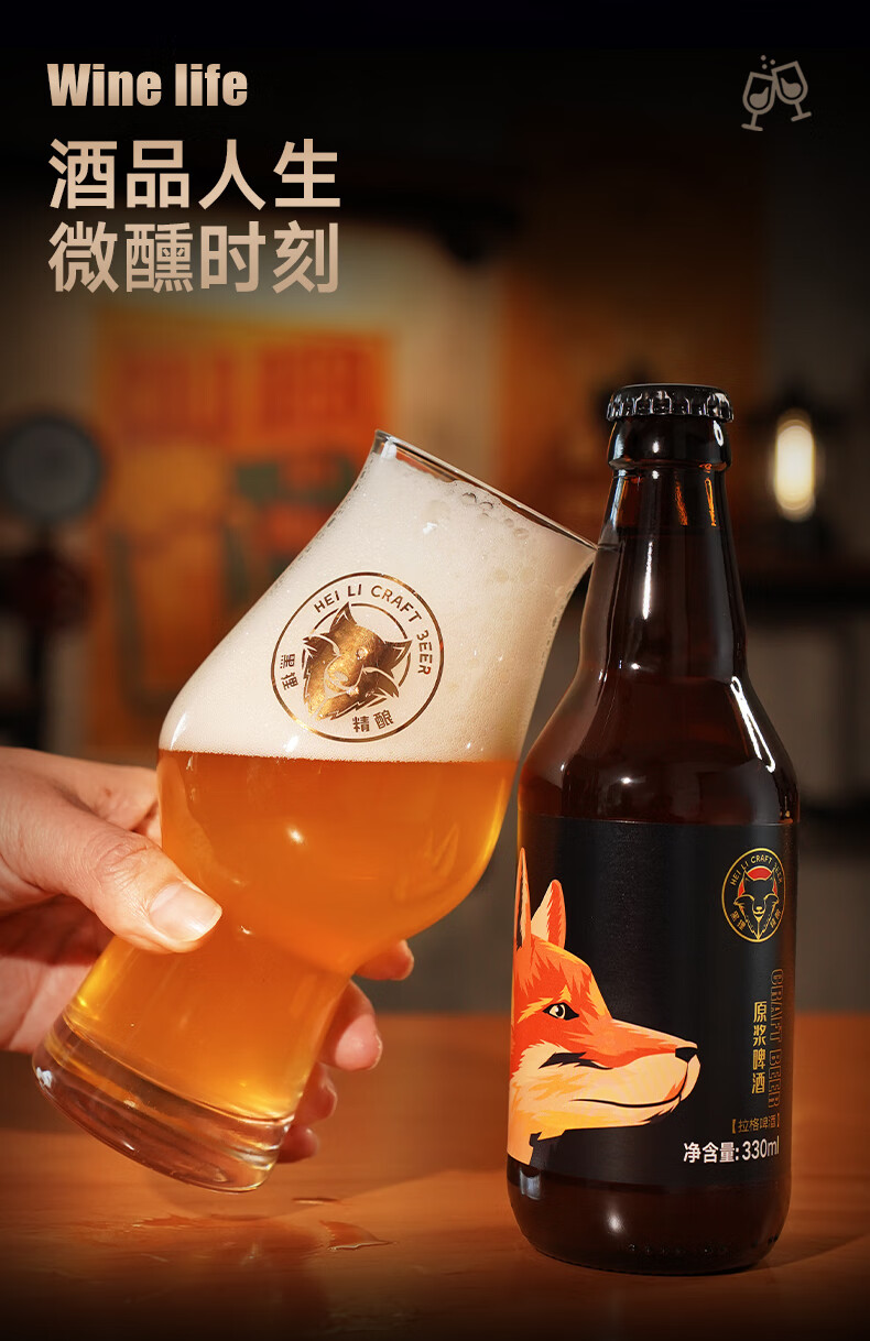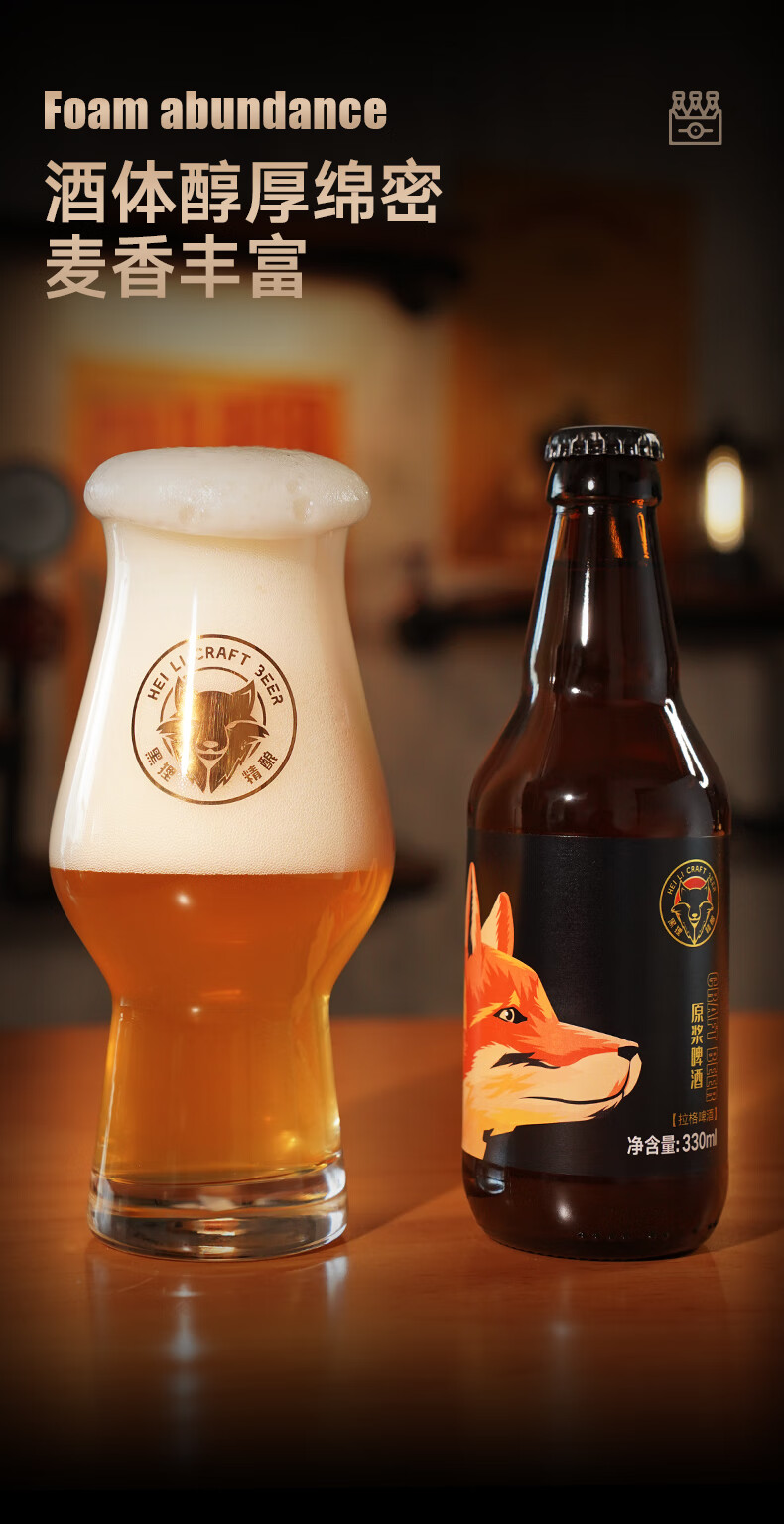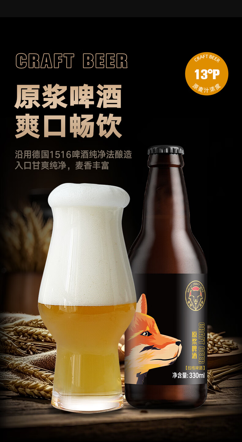 黑狸精酿啤酒整箱 13°P全麦原浆黄啤酒 礼盒装 畅饮版 4.5%vol 13度 原浆啤酒 330ml*12