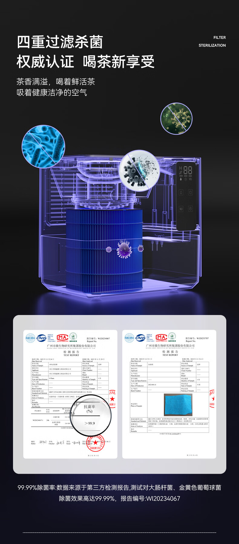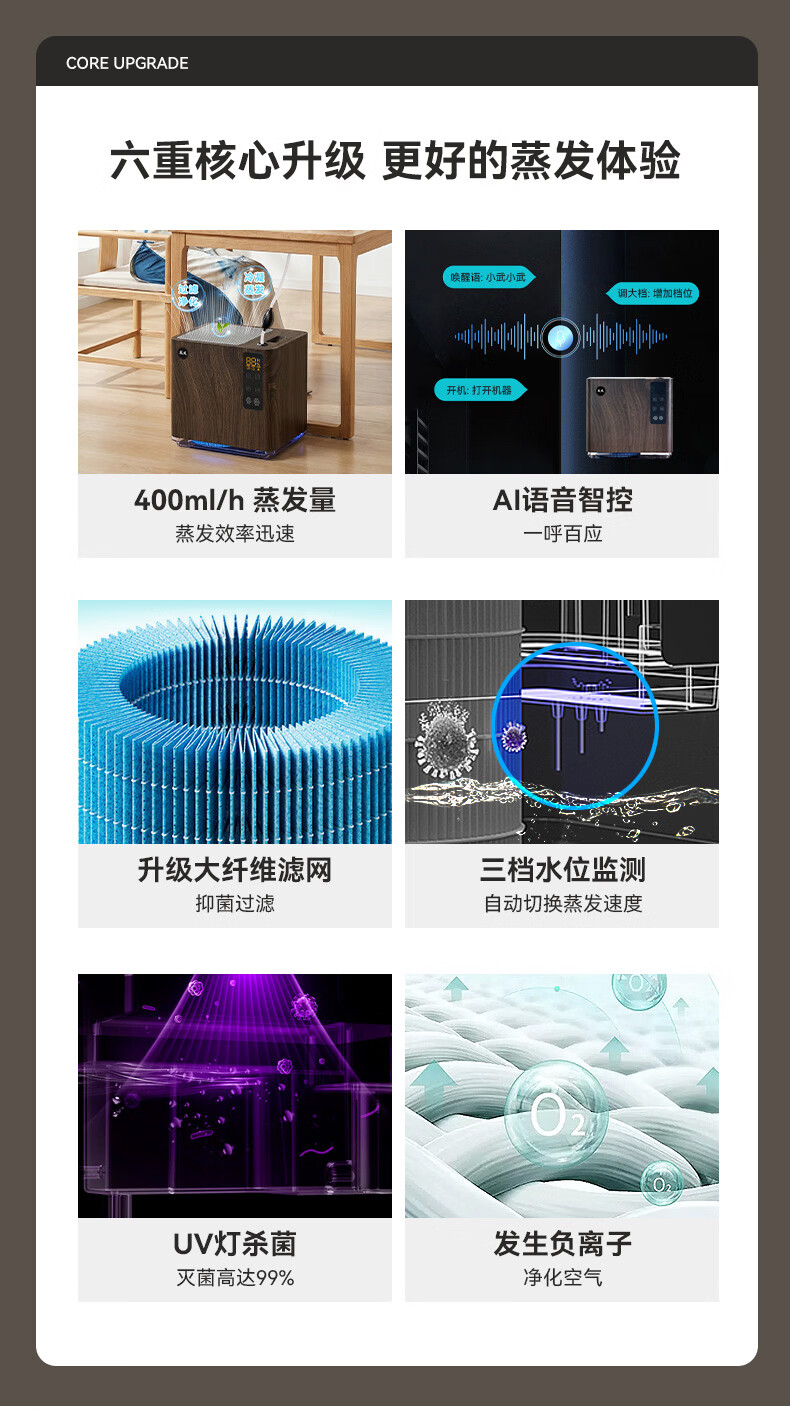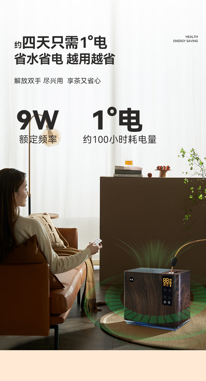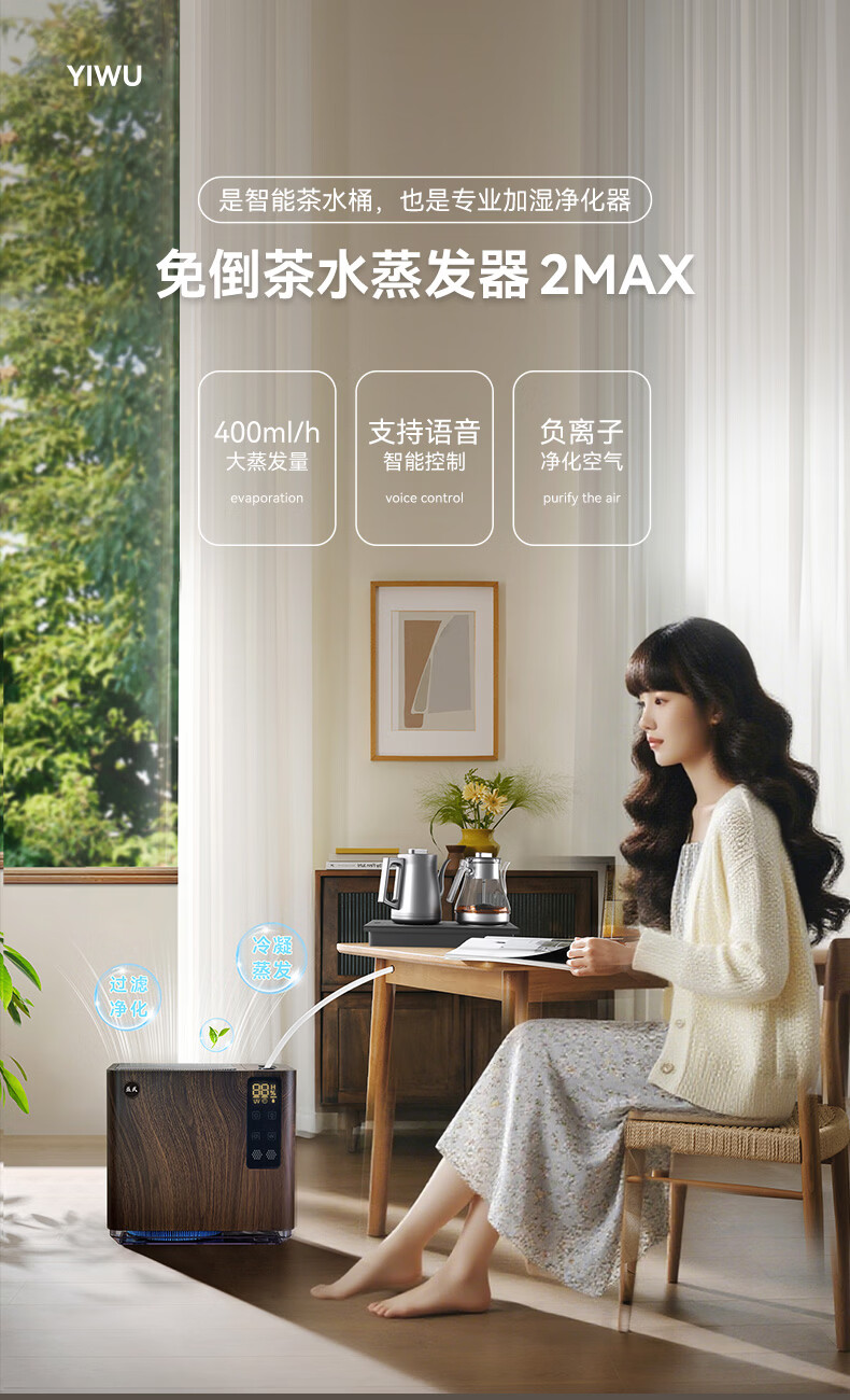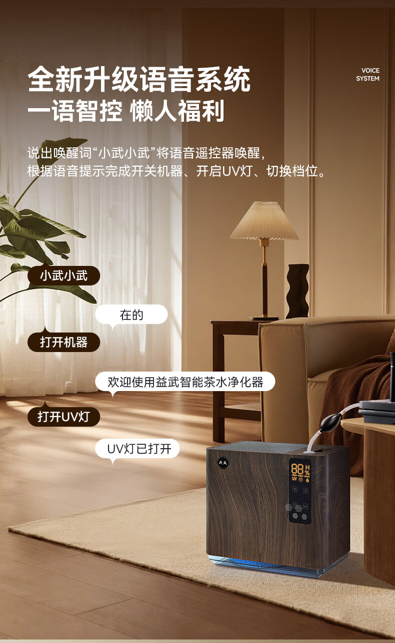 益武免倒茶水桶智能无雾蒸发茶渣桶AI语音操控家用负离子空气净化器 AI语音款-典雅白【三芯装】