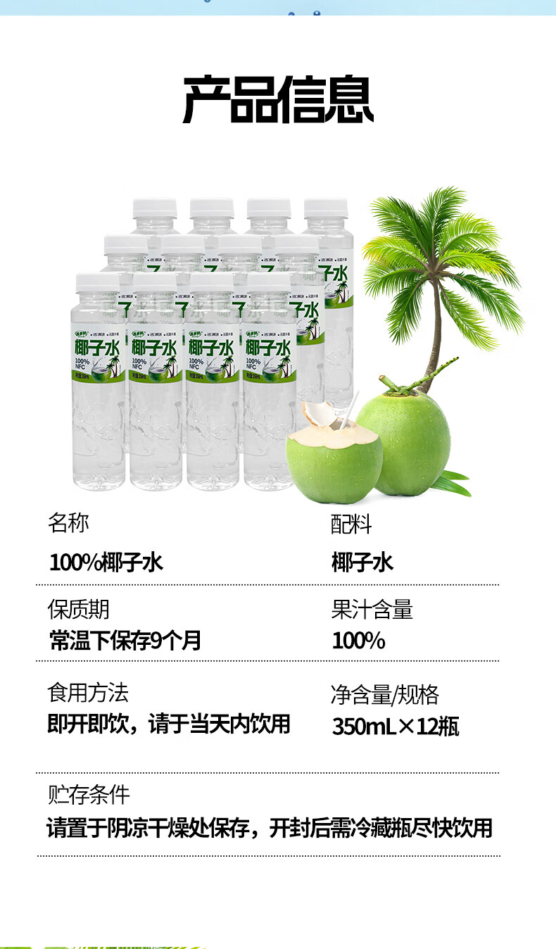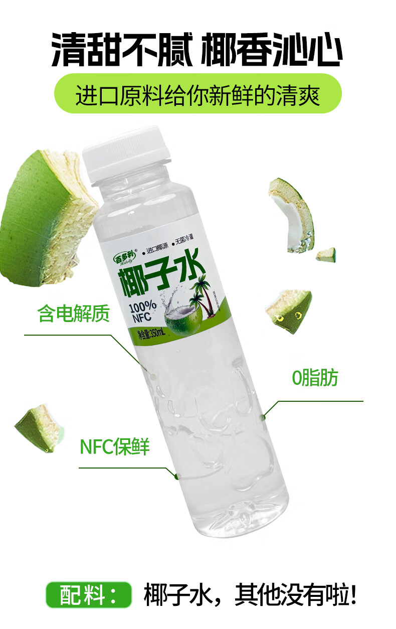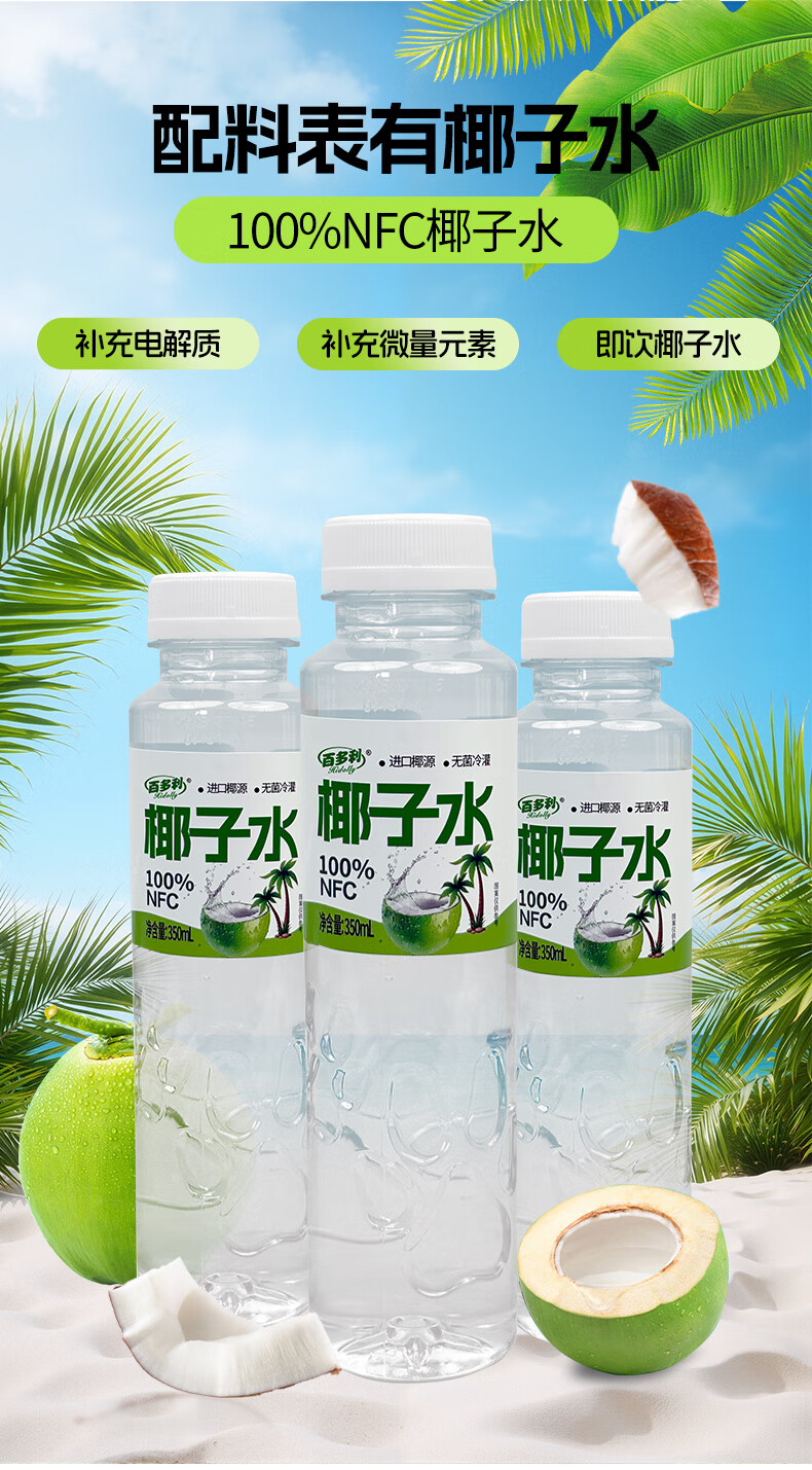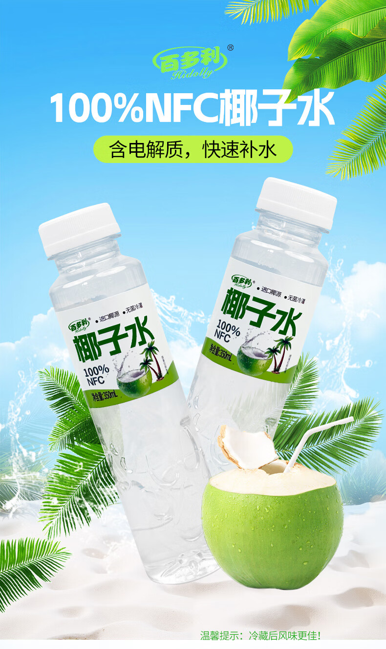 百多利椰子水nfc非浓缩还原纯天然电解质椰青水350*12瓶零添加饮料 椰子水整箱/(12瓶)