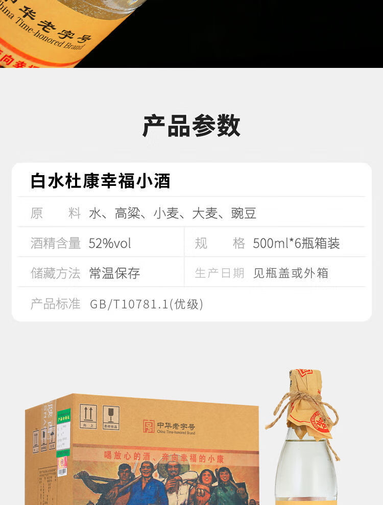 白水杜康【5万+人已加购】幸福小酒浓香型白酒52度500ml*6瓶整箱纯粮食酒 52度 500mL 6瓶 幸福小酒整箱6瓶