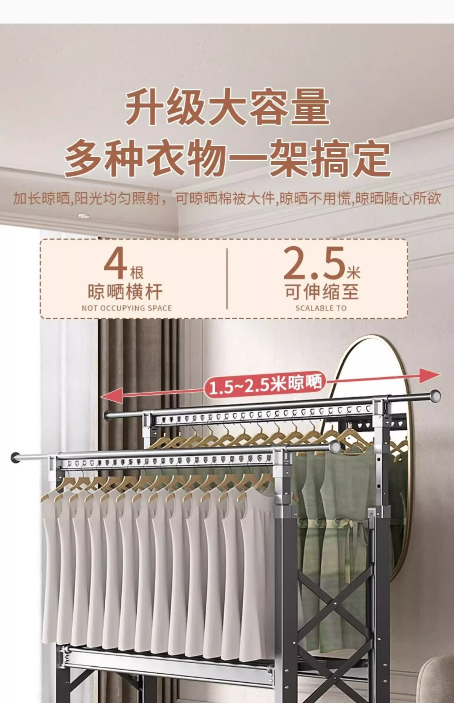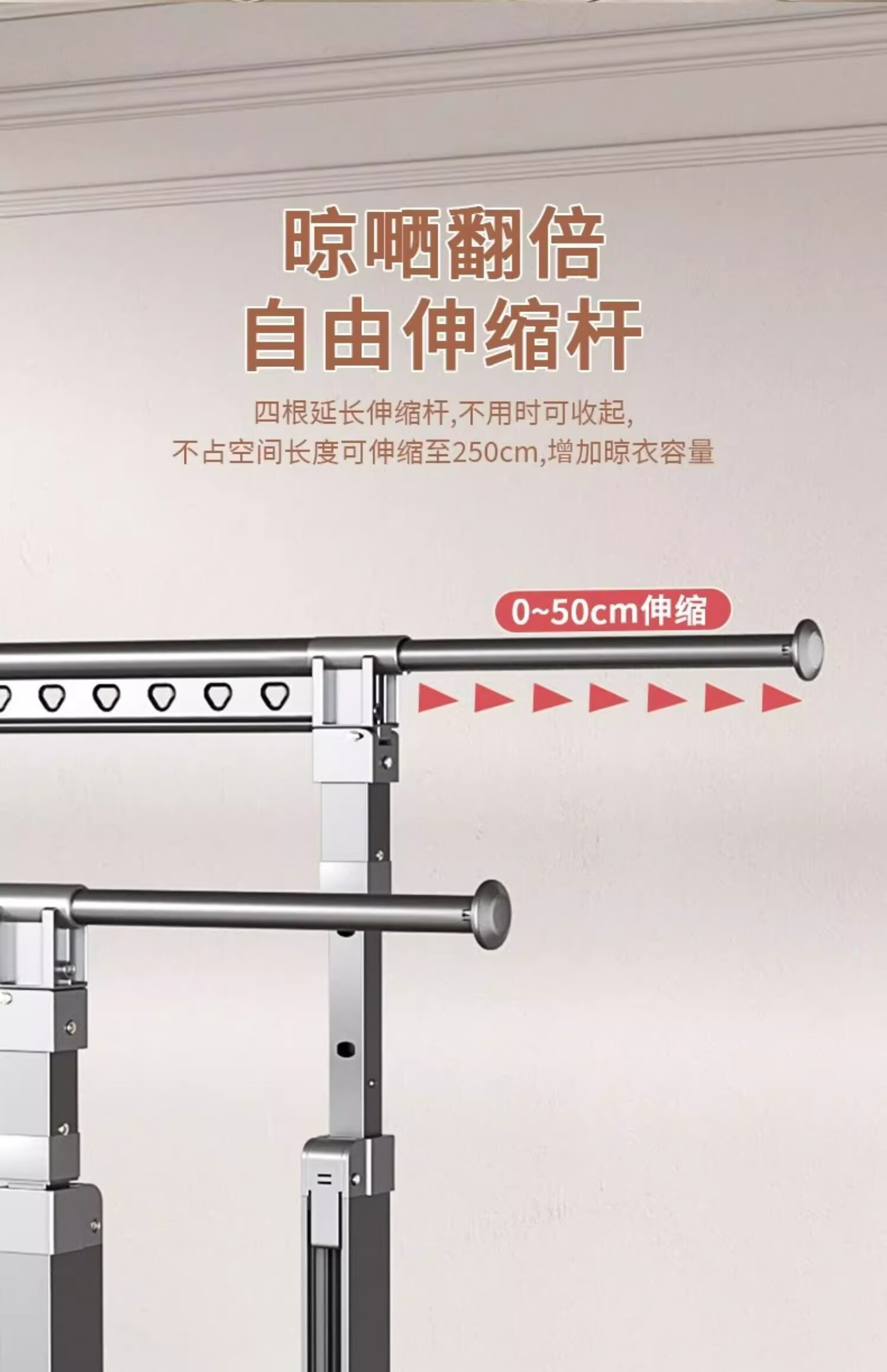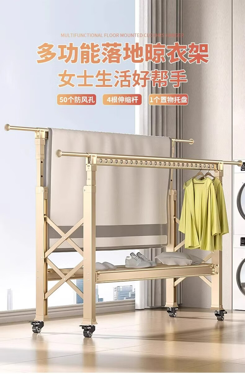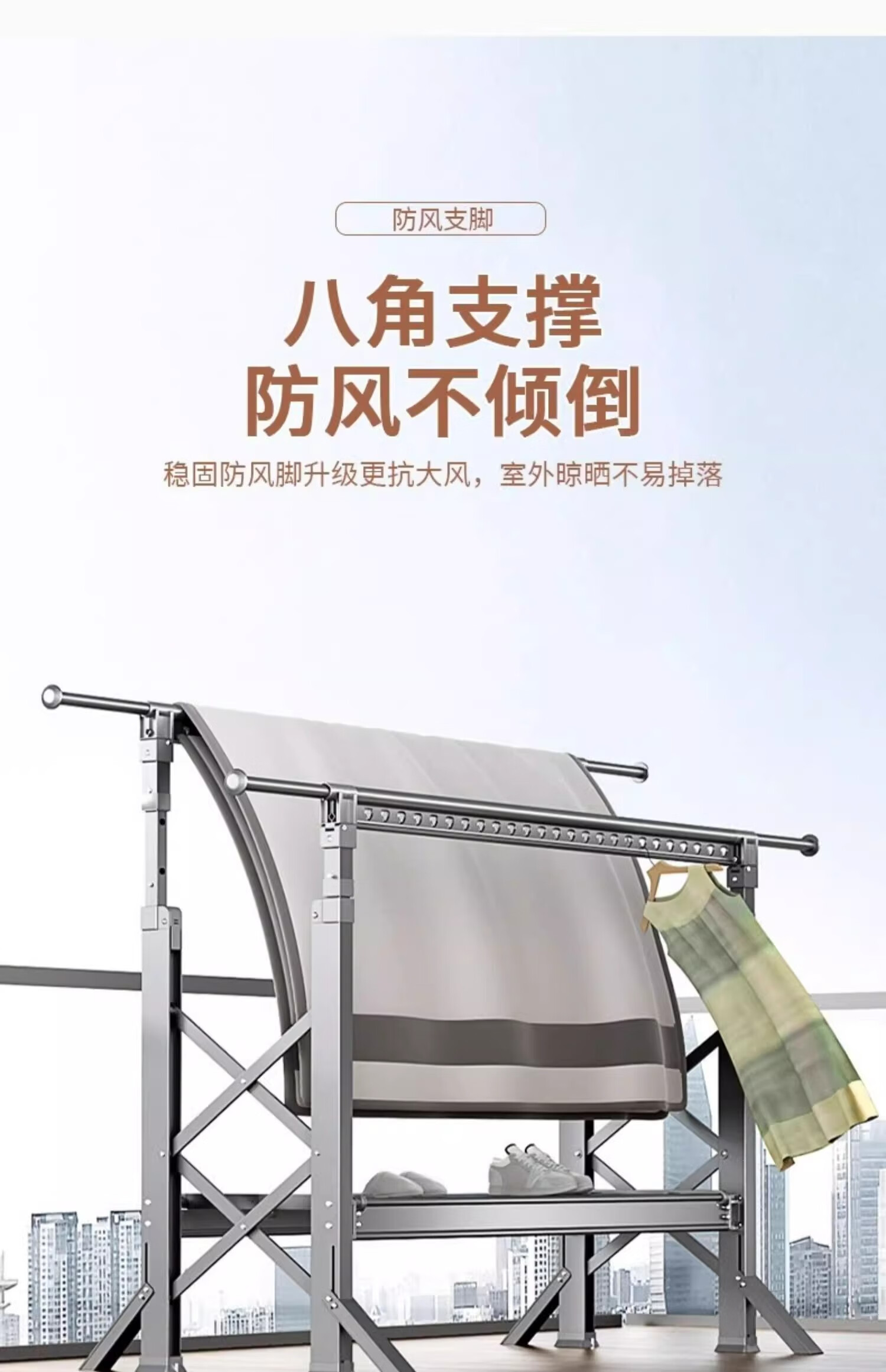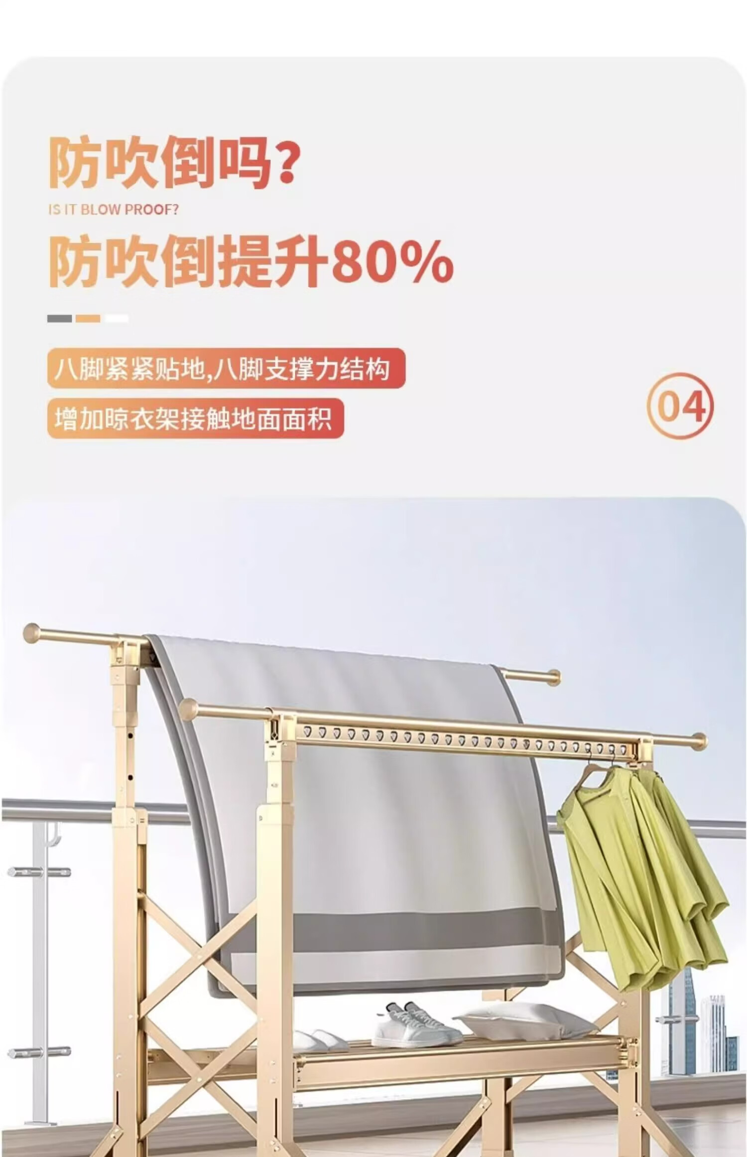 ATNPQZ德国晾衣架阳台家用落地式晒被子神器可升降伸缩折叠晾衣杆 星空灰1.3米带鞋架托盘+防风脚