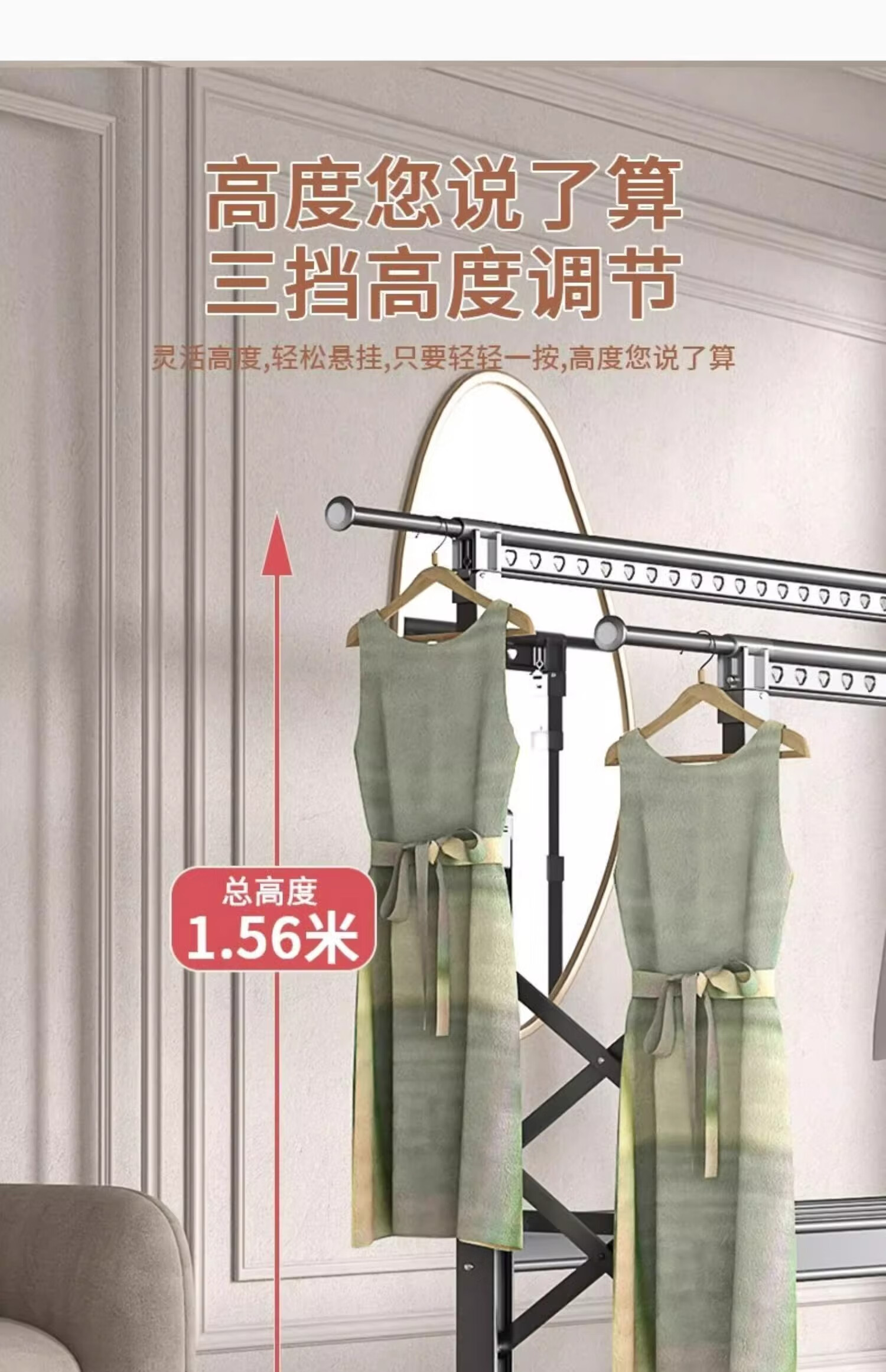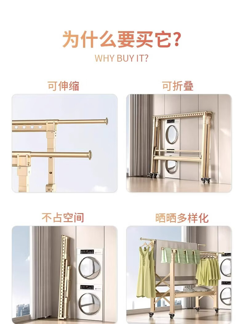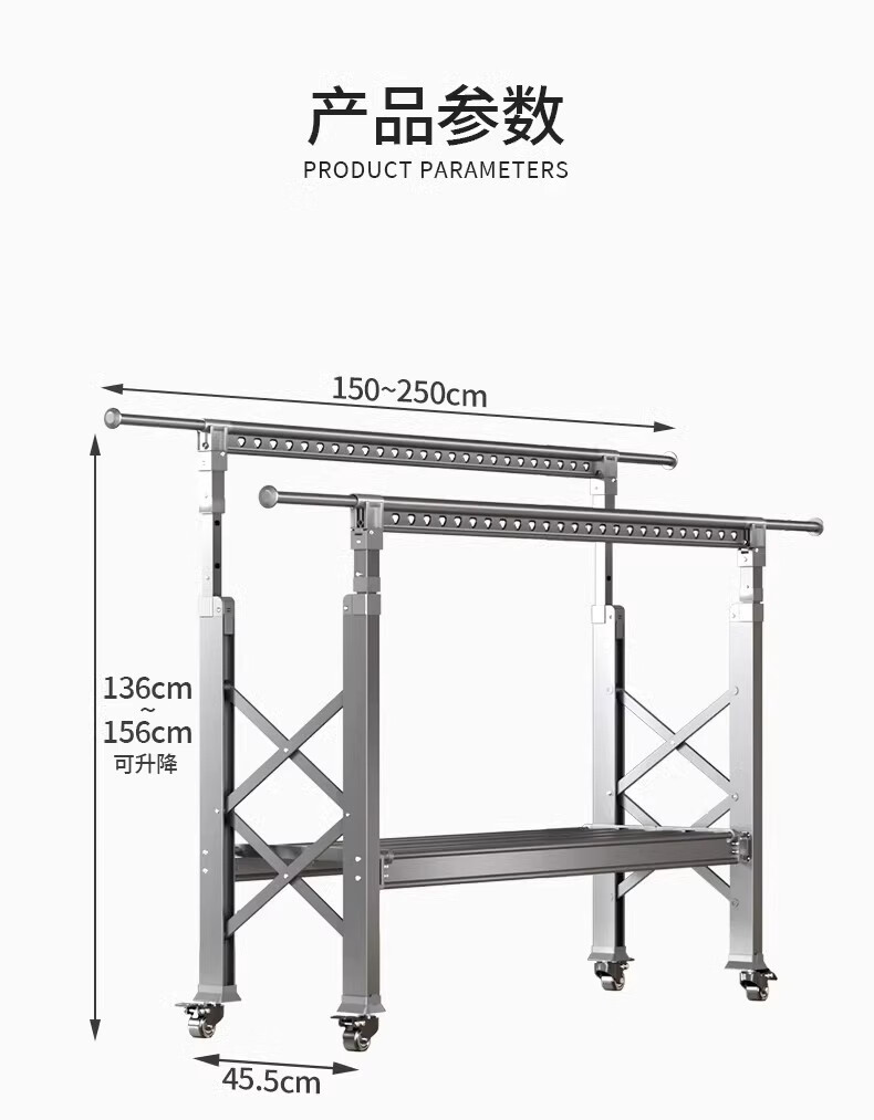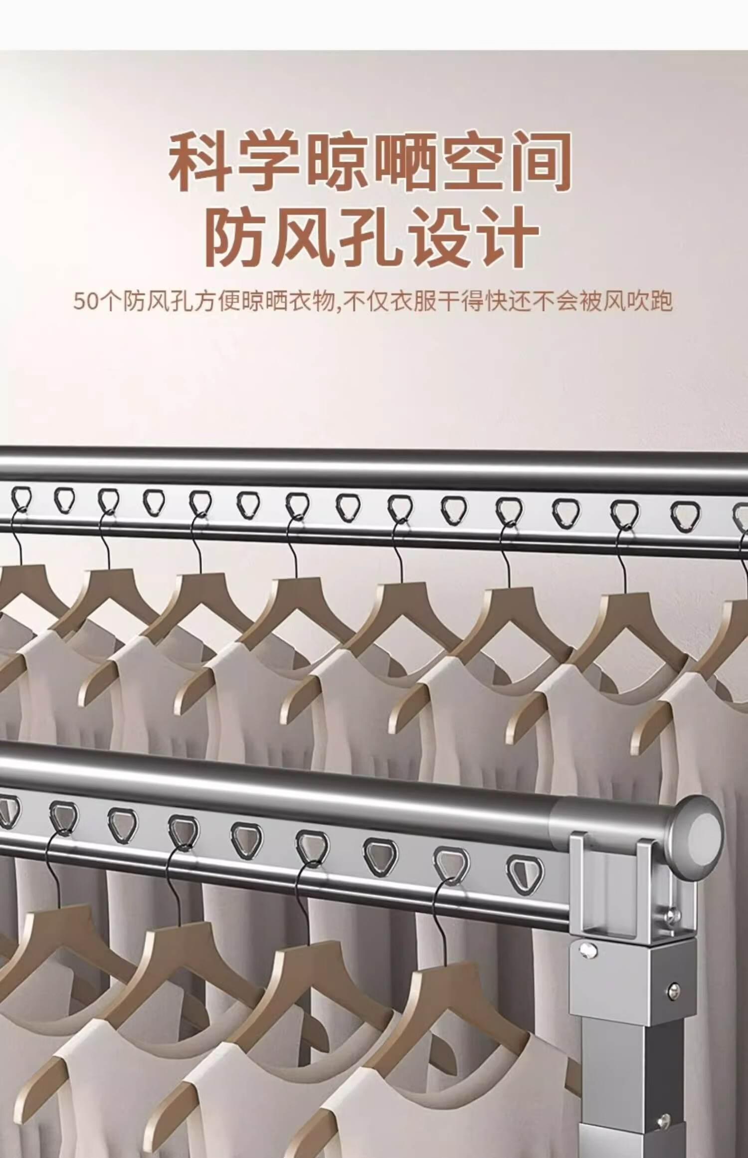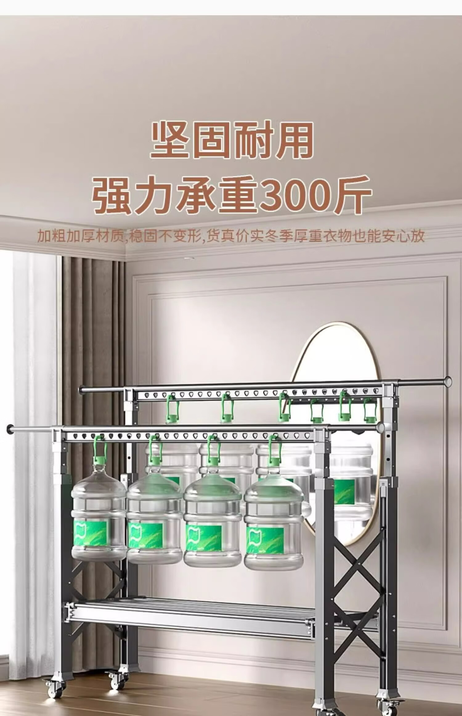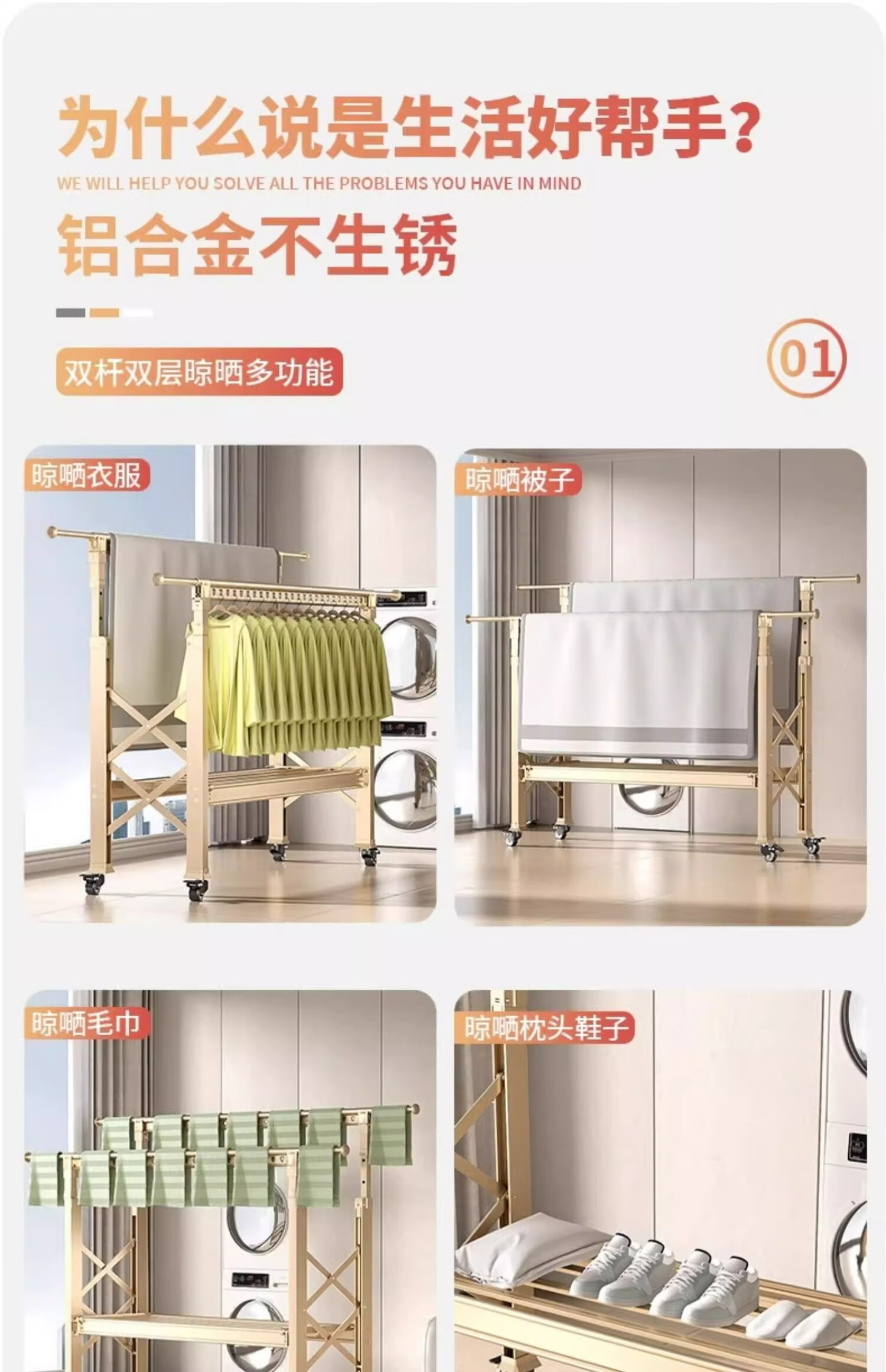 ATNPQZ德国晾衣架阳台家用落地式晒被子神器可升降伸缩折叠晾衣杆 星空灰1.3米带鞋架托盘+防风脚