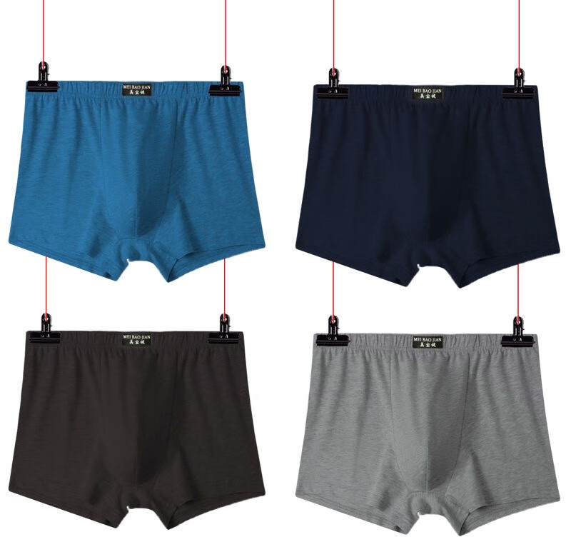 美宝健100%纯棉男士内裤中腰四角爸爸透气内裤宽松内裤棉质四角裤中年人 3条瓶子平角100%棉)颜色随机 3条 XL (体重90-110斤)