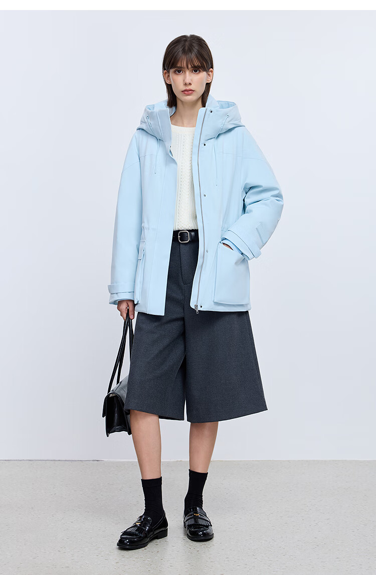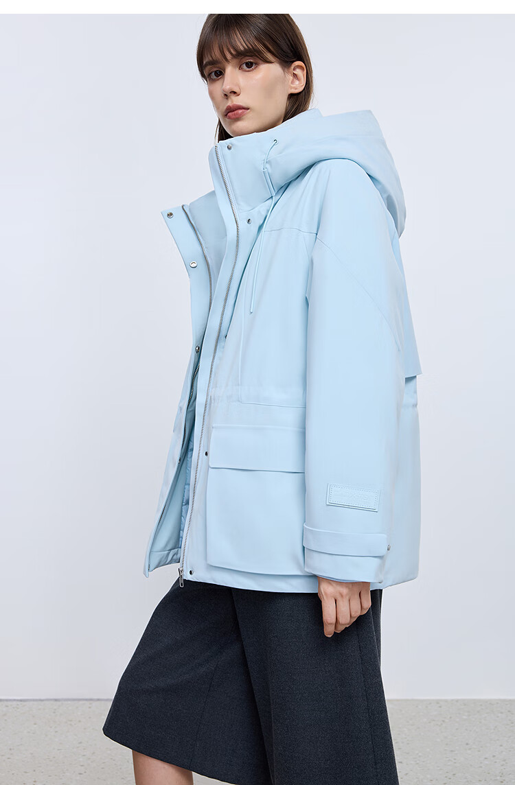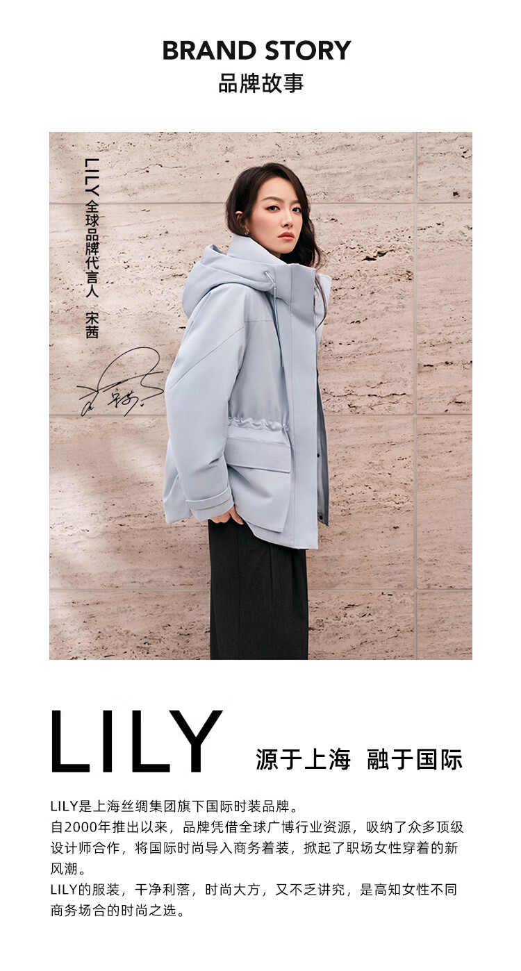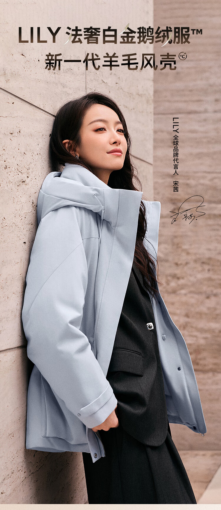 LILY【法奢白金】羊毛风衣壳LILY2025冬季中长新款外套加厚鹅绒羽绒服 402天蓝 XL