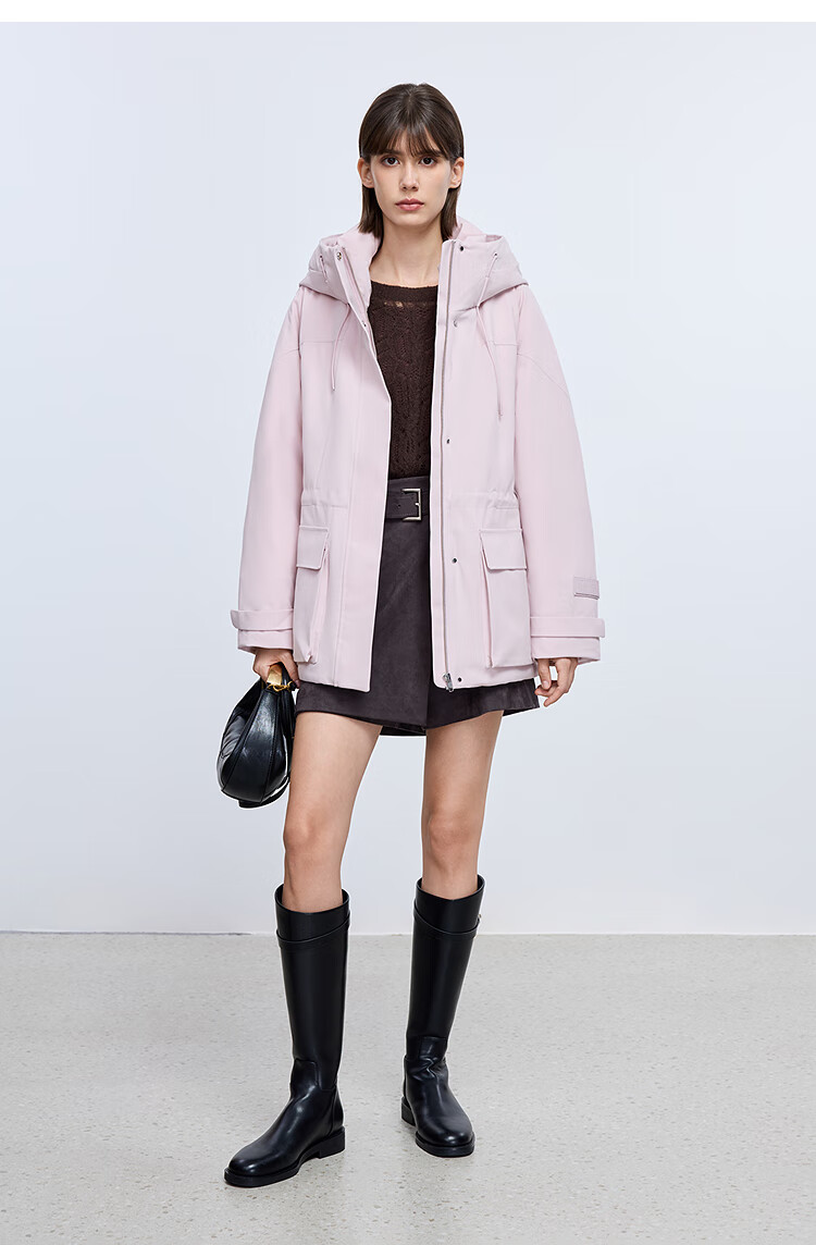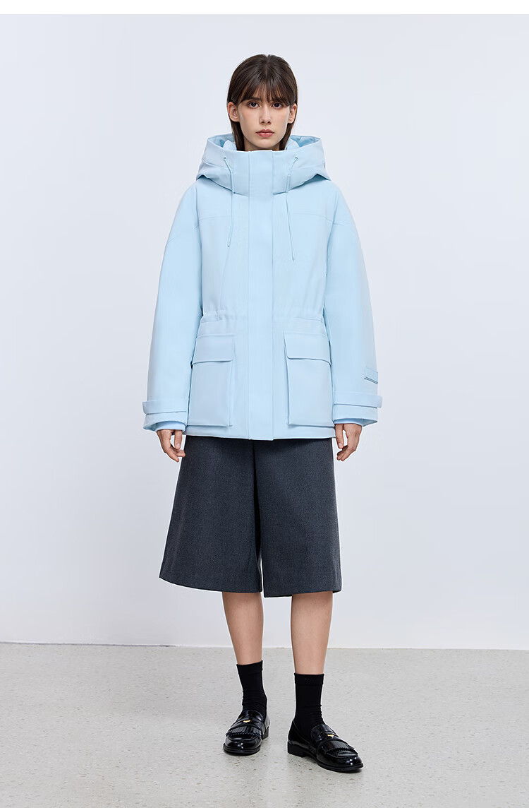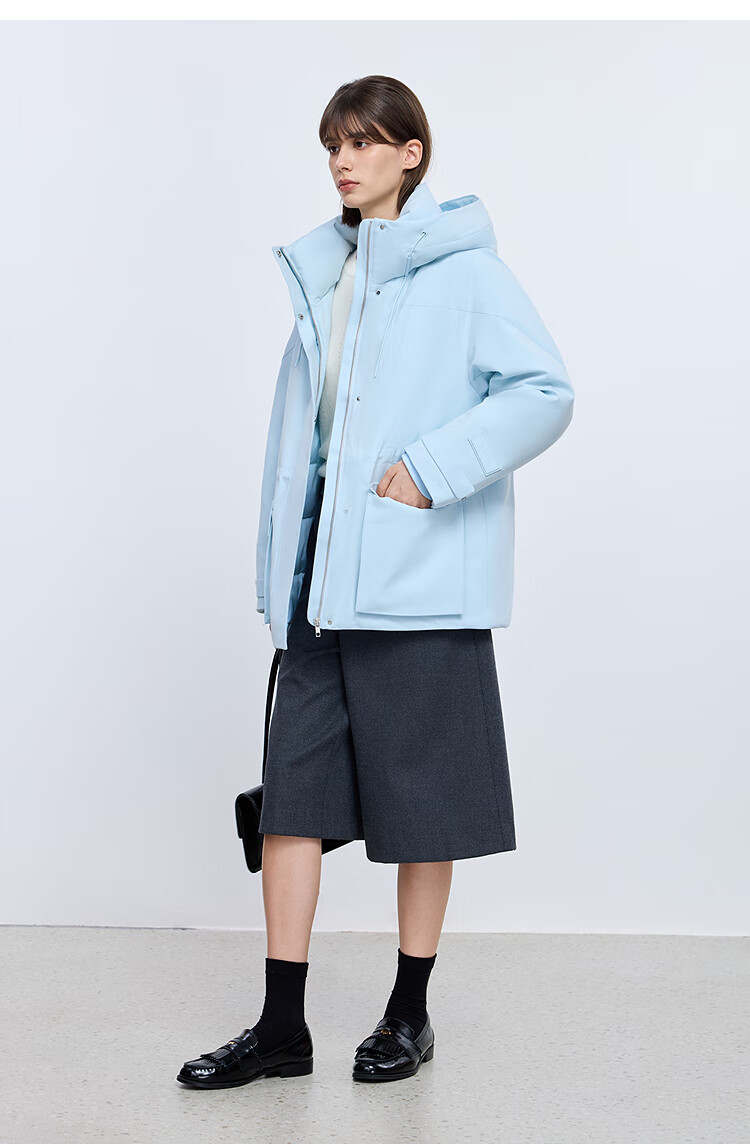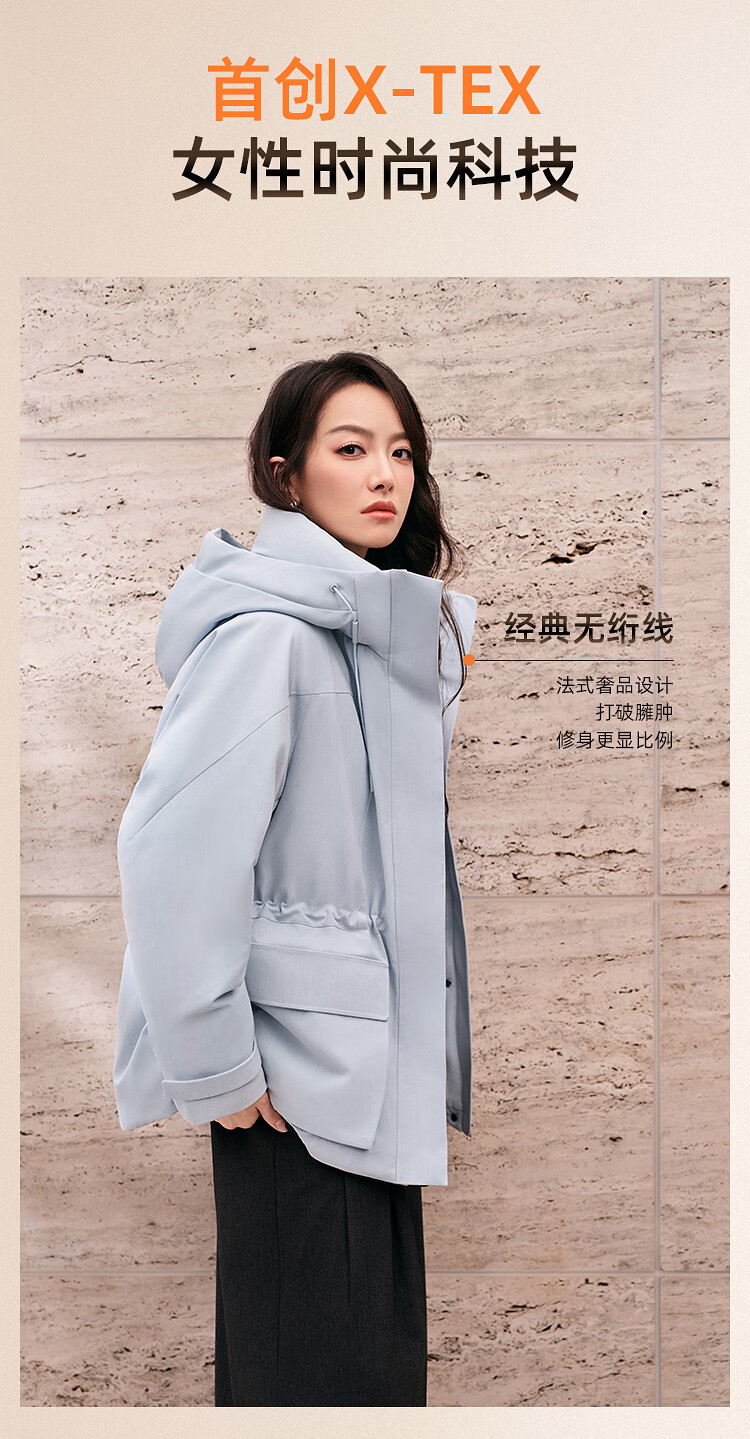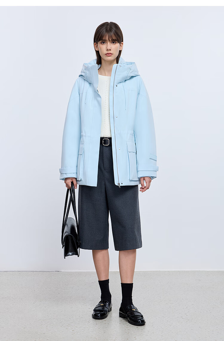 LILY【法奢白金】羊毛风衣壳LILY2025冬季中长新款外套加厚鹅绒羽绒服 402天蓝 XL