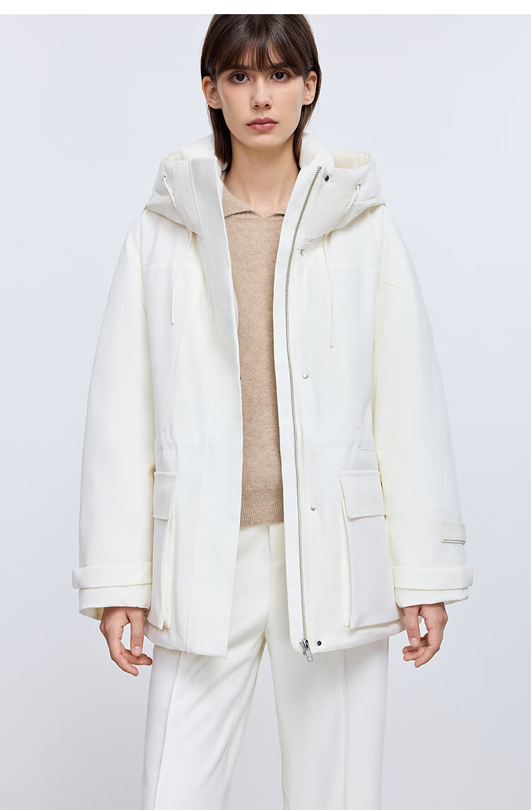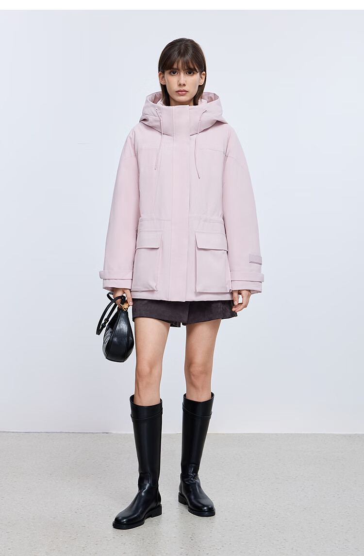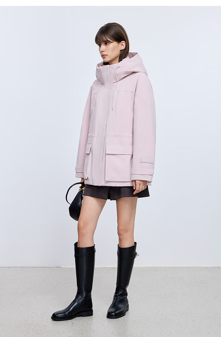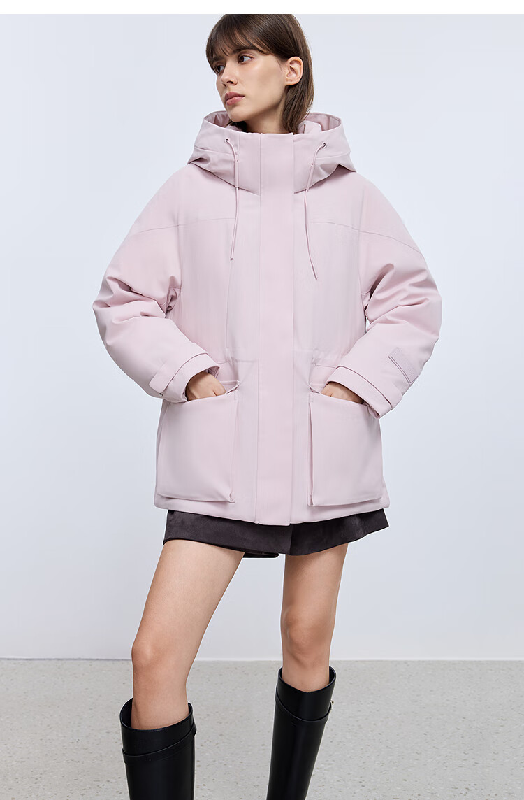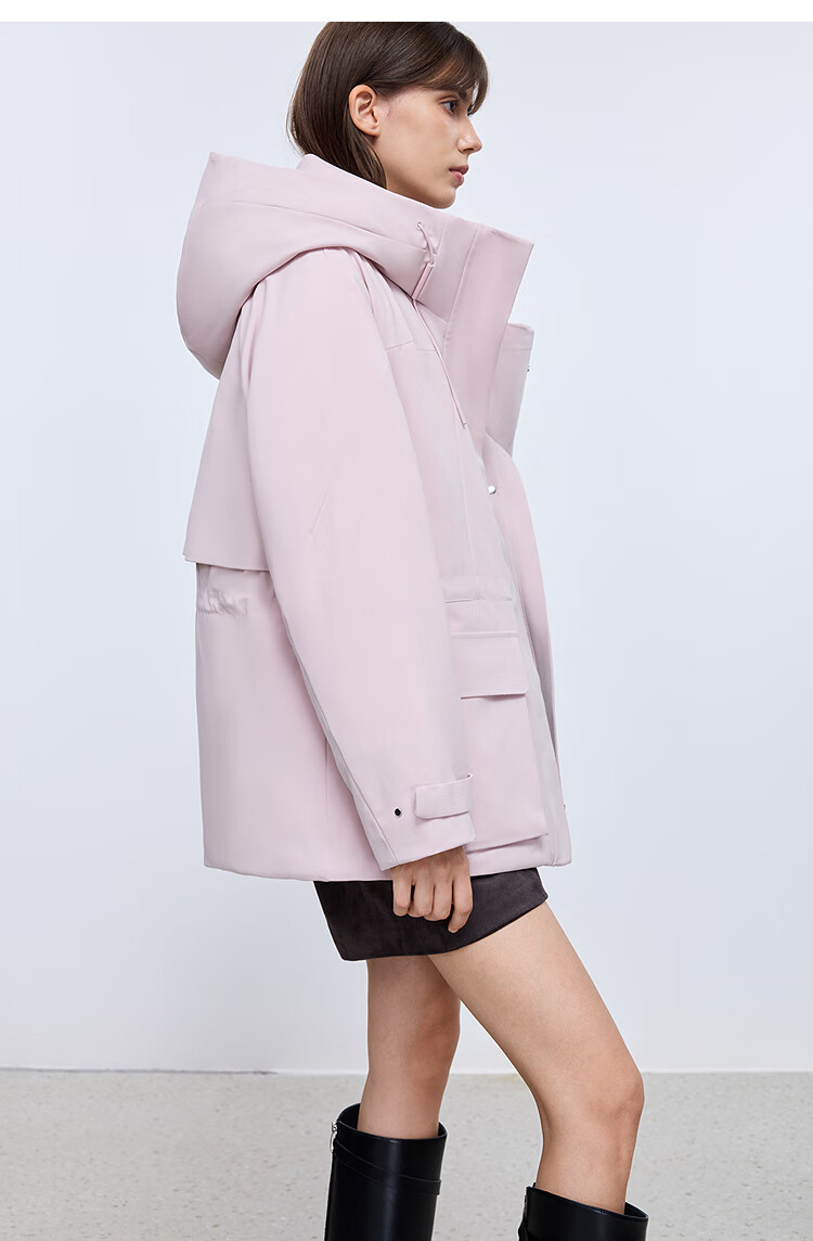 【达人专属】女仿羊羔绒短款羽绒服户外双面穿保暖上衣潮流休闲风 海贝米(女) M (160)120-140斤