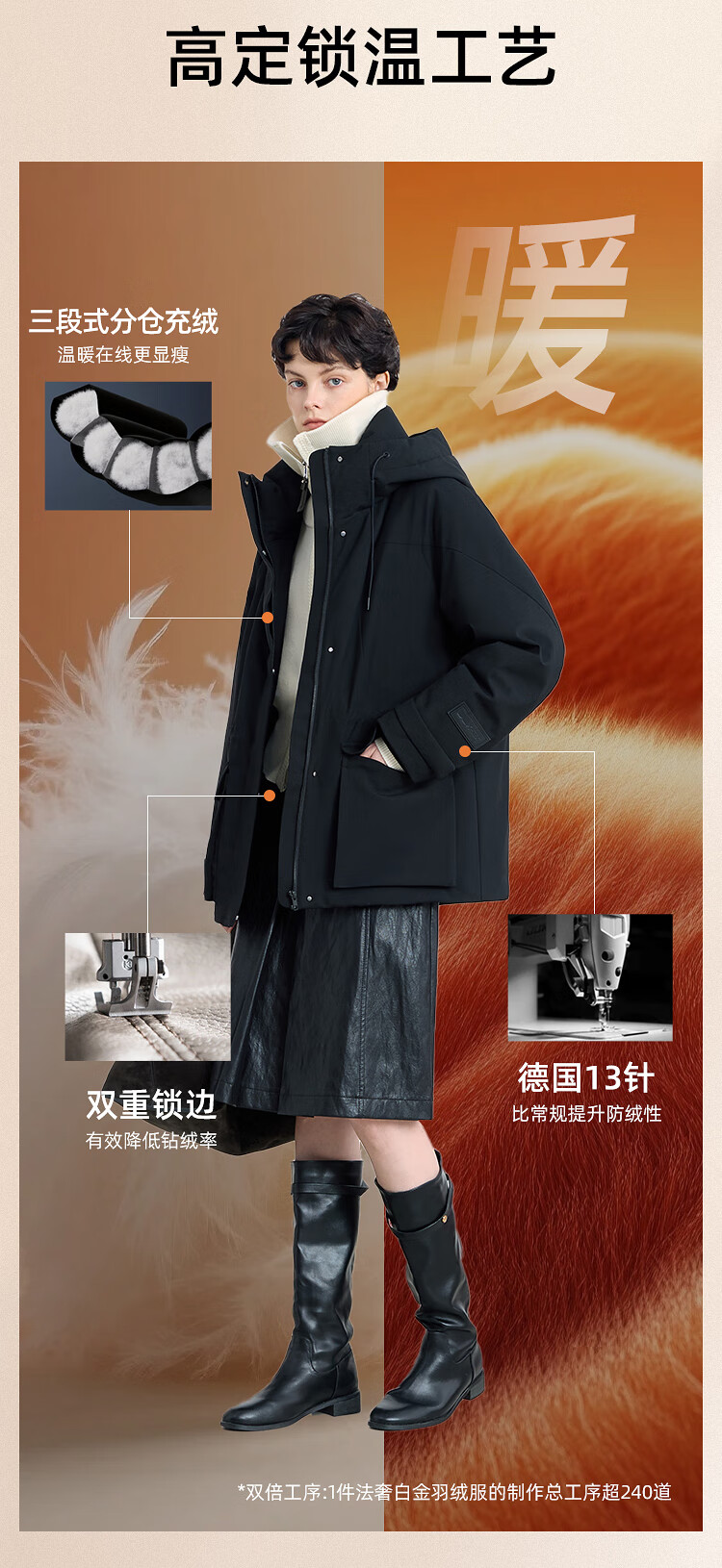 【达人专属】|骐骥红情侣款羽绒服休闲保暖外套户外保暖 姜黄 M (165) 100-115斤