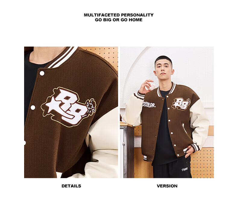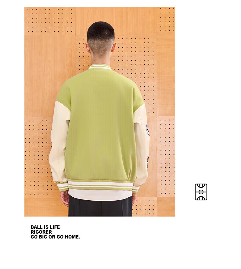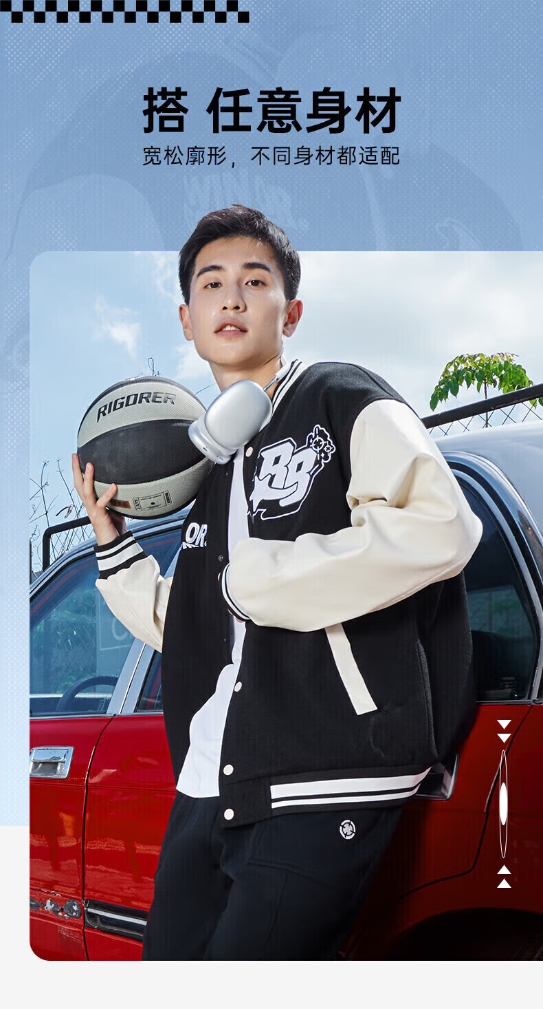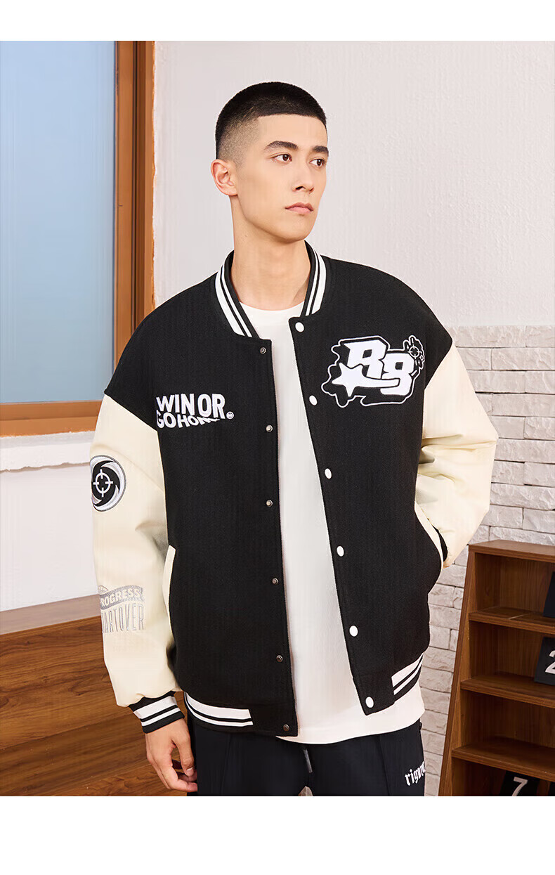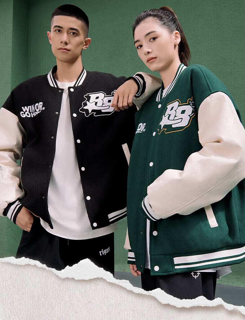 准者(RIGORER)棒球服外套男女春夏加厚新款美式复古刺绣宽松运动夹克 深卡其 XS 160
