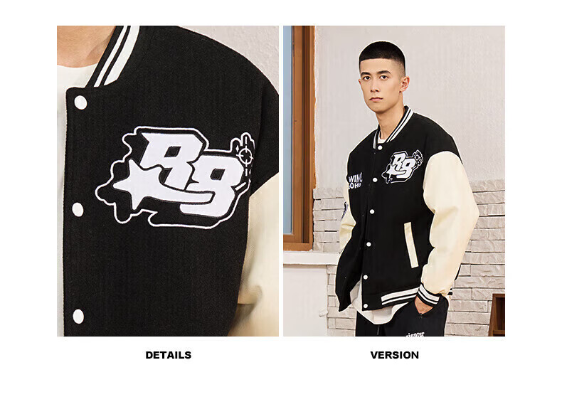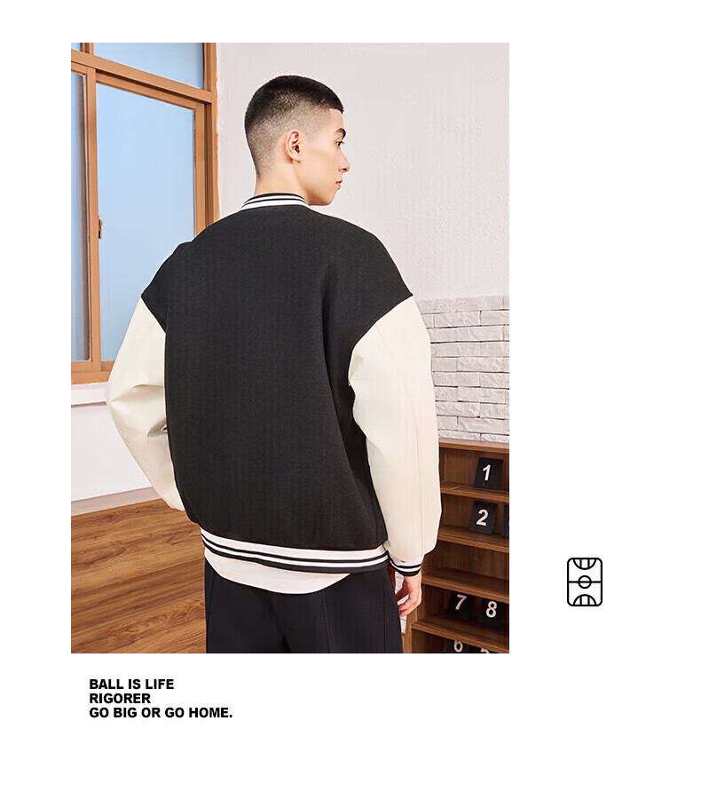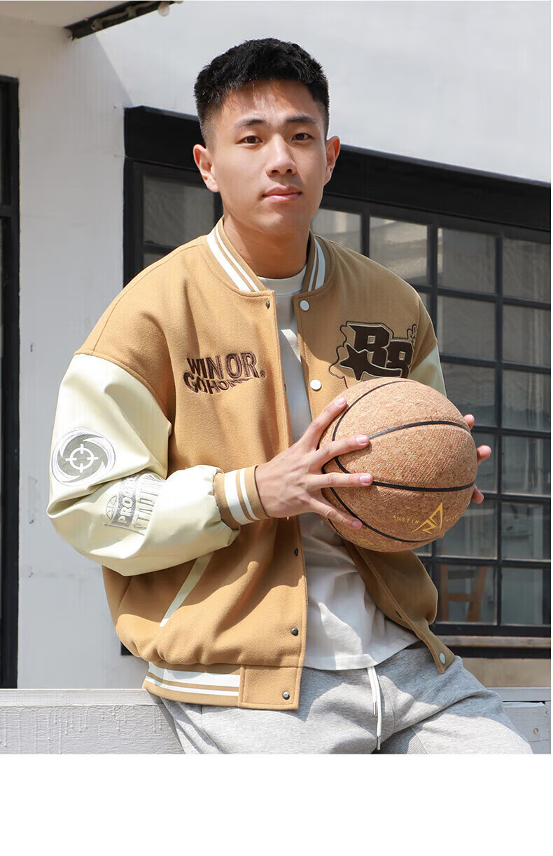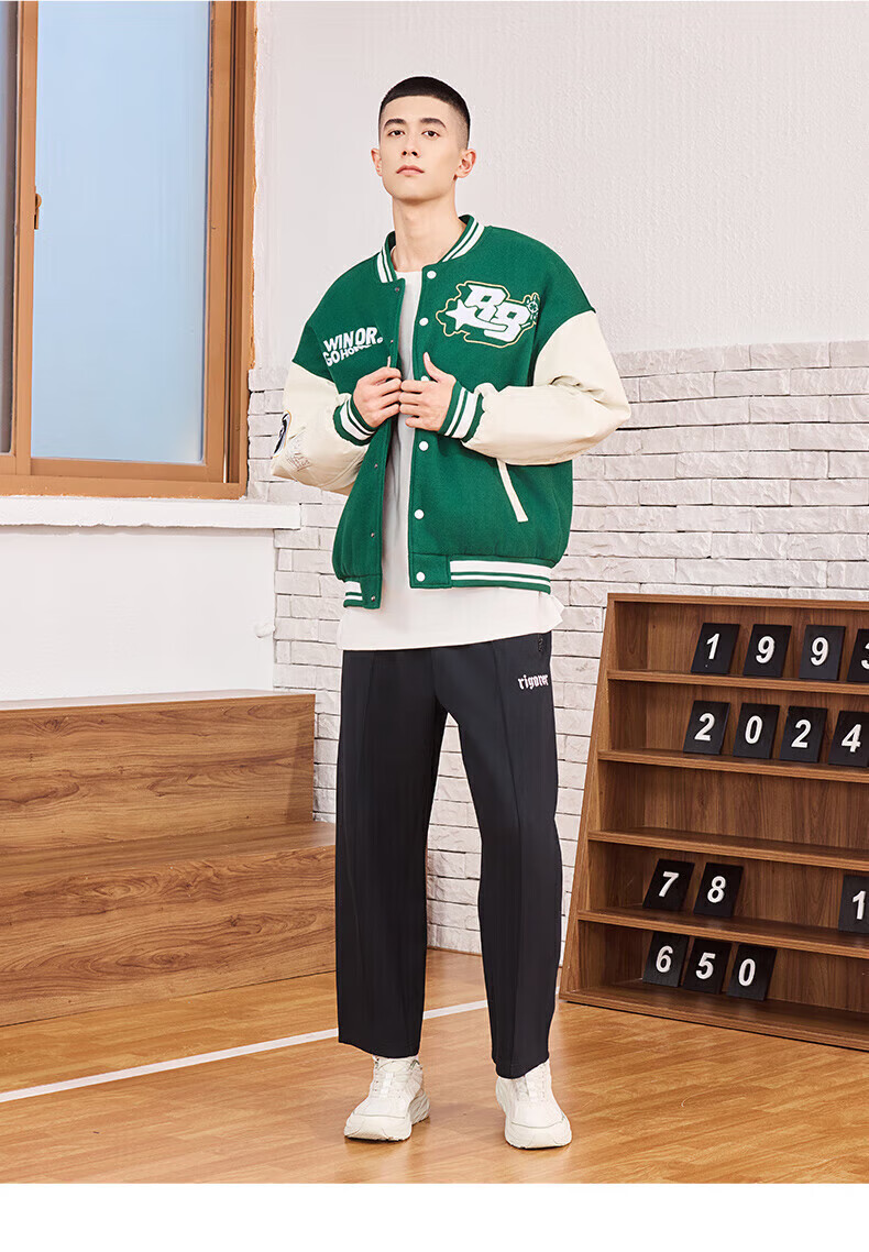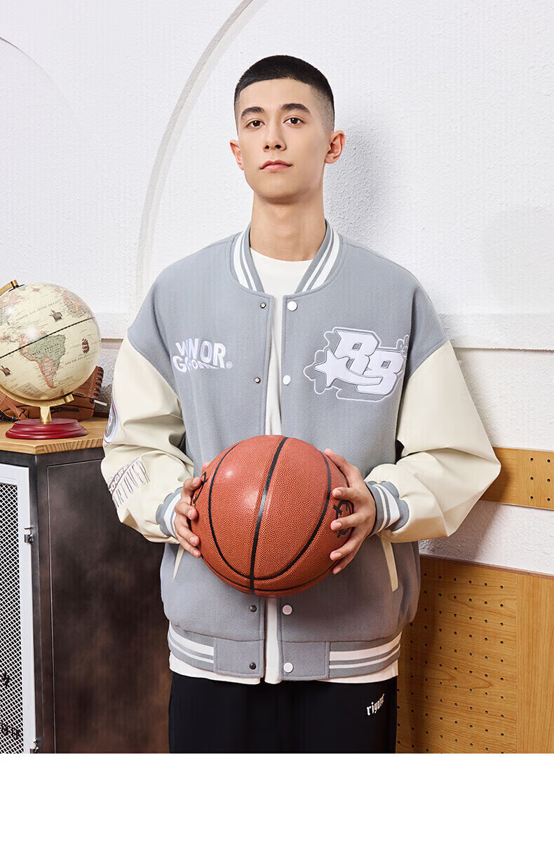 准者(RIGORER)棒球服外套男女春夏加厚新款美式复古刺绣宽松运动夹克 深卡其 XS 160