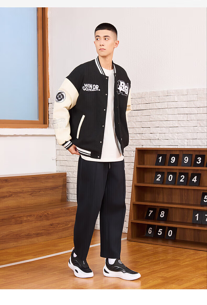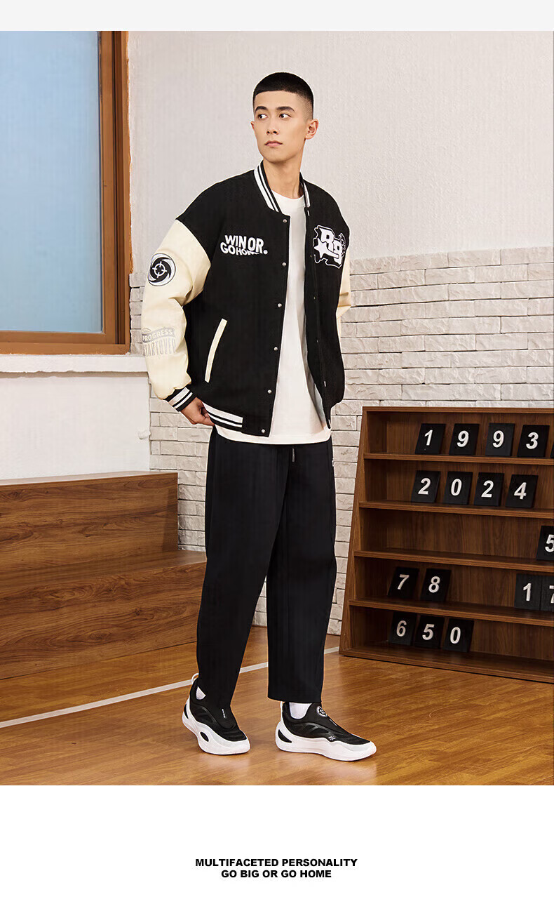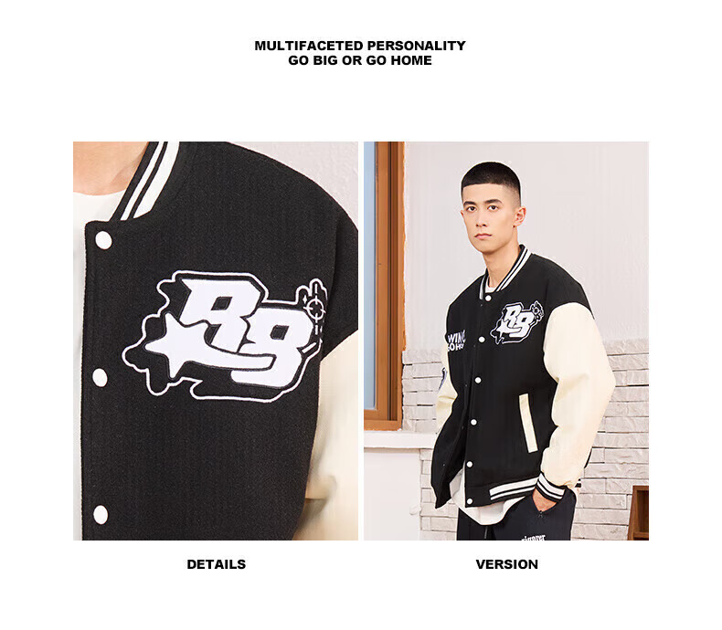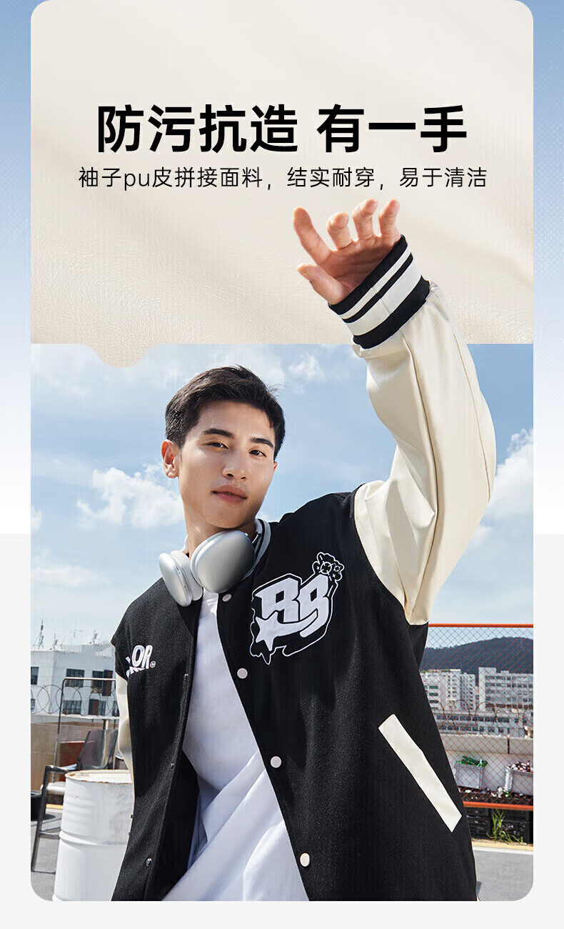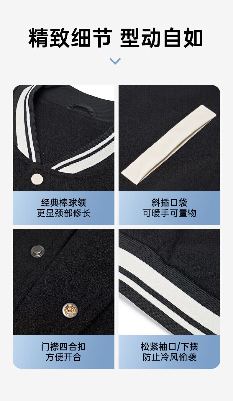 准者(RIGORER)棒球服外套男女春夏加厚新款美式复古刺绣宽松运动夹克 深卡其 XS 160