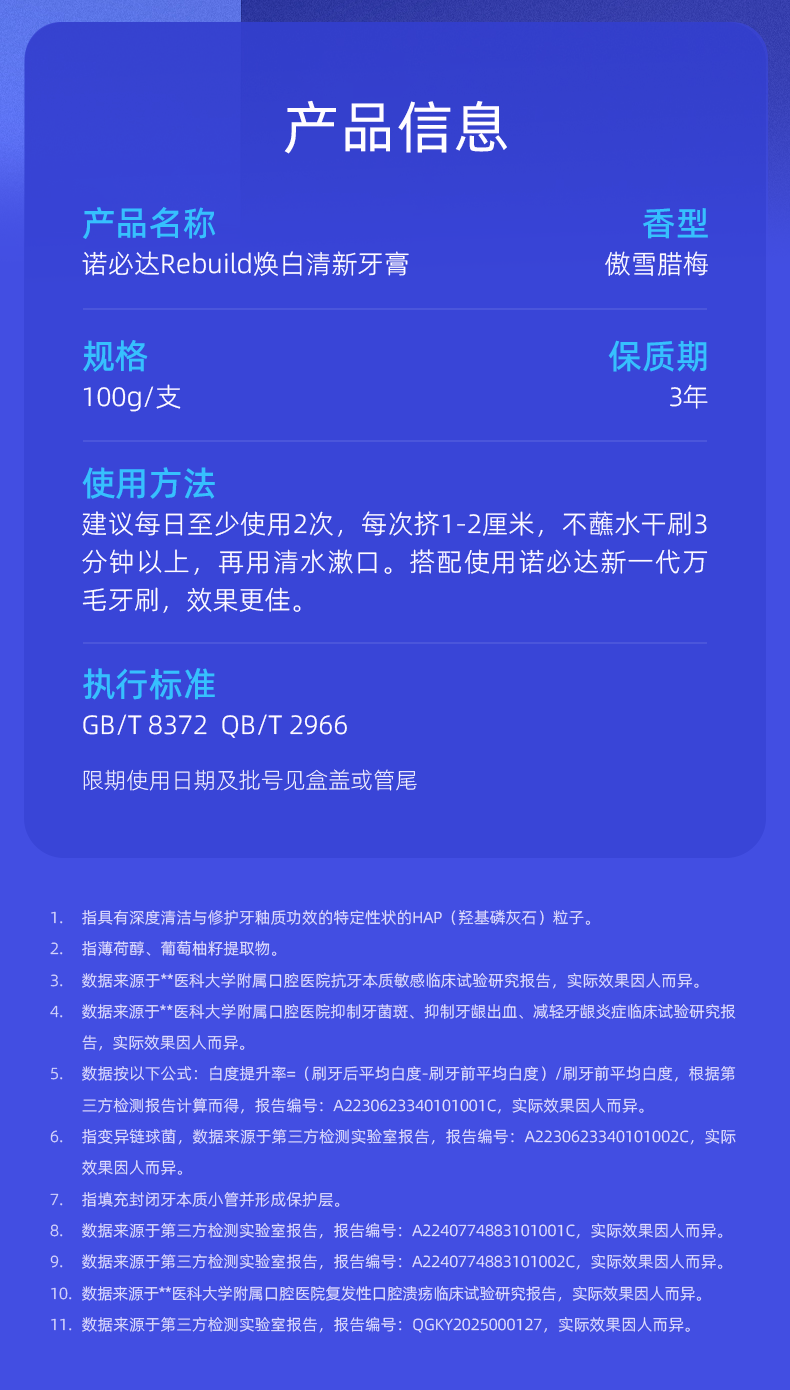 诺必达Rebuild焕白清新牙膏 美白去渍抑制口臭抗敏感成人牙膏 1支装100g*1