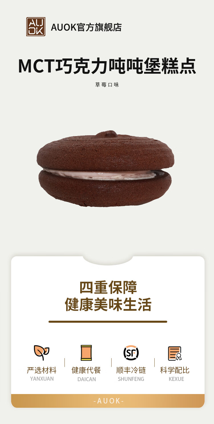 AUOK MCT巧克力吨吨堡草莓口味70g/个可可脂软曲奇饼干代餐食品乳酪 MCT巧克力吨吨堡(草莓味)2个
