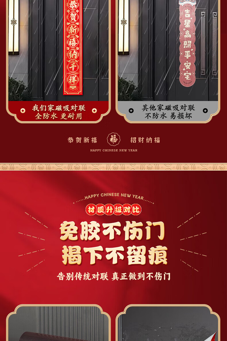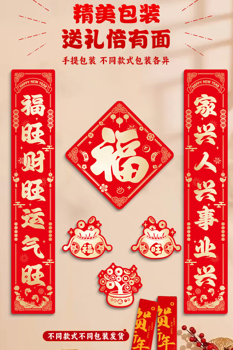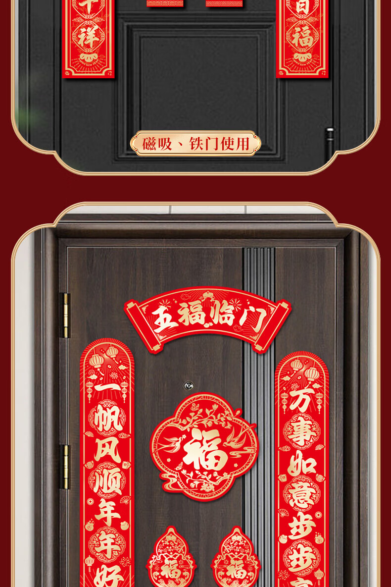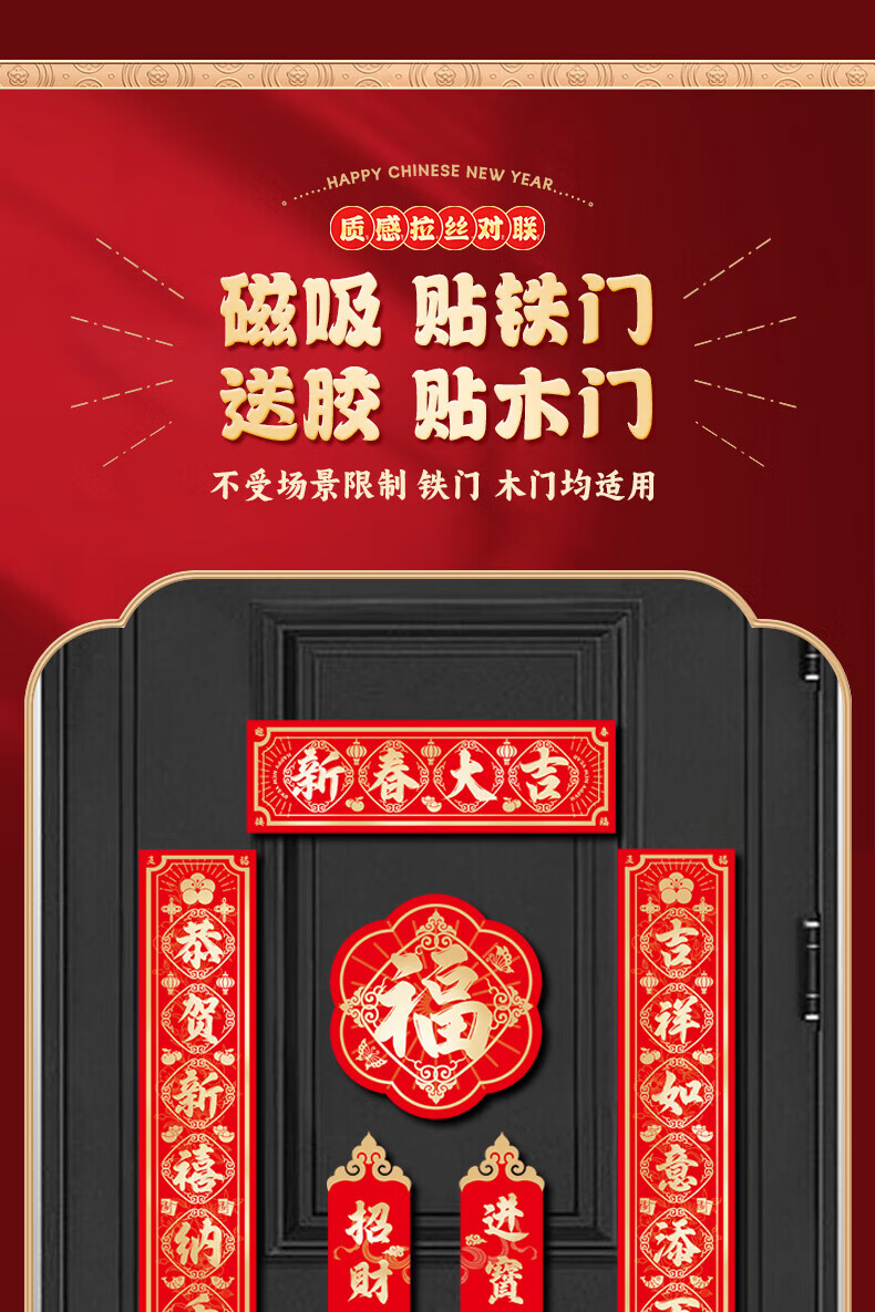 千棵树2026新款马年磁吸对联入户大门福字门贴新年装饰春节过年布置春联 【8个装】财神送福 磁吸胶贴两用
