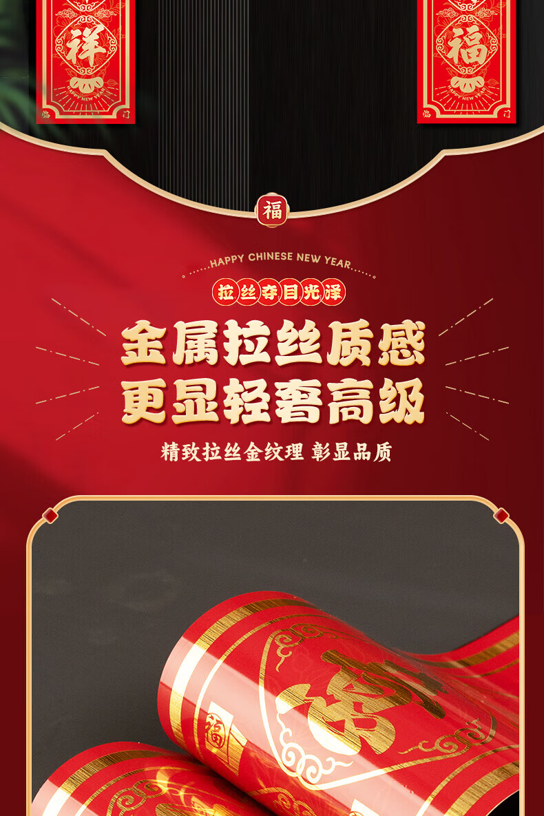 手写定制对联新款2026马年春联装饰门贴书法黑字门联生意对联贴纸 福满华堂添富贵,财临吉宅永平安 3米 宽38公分