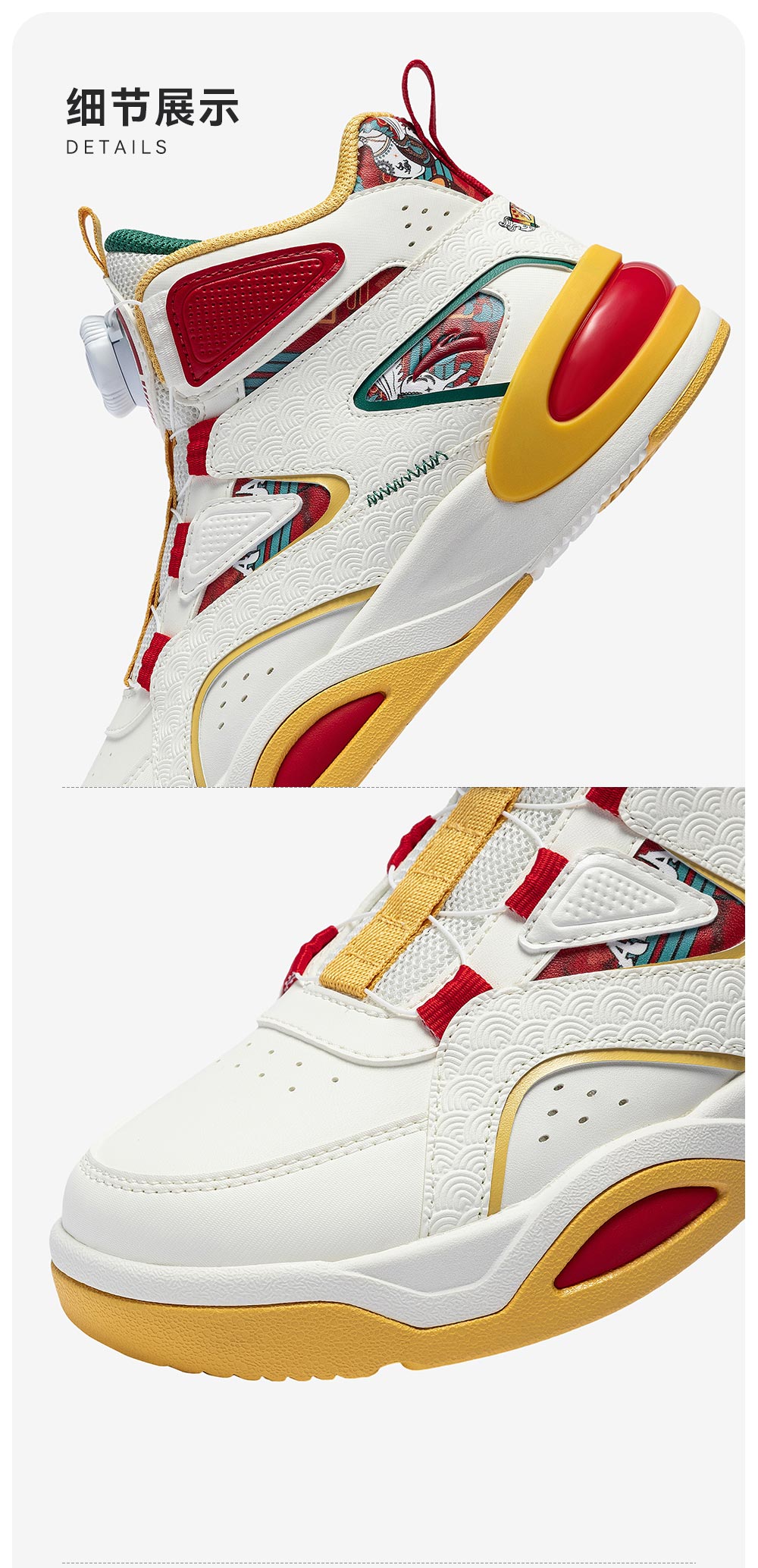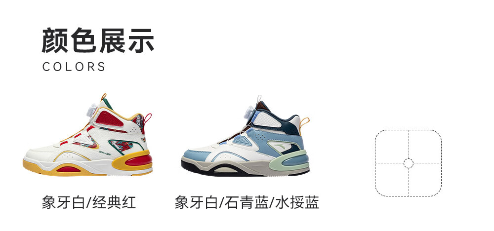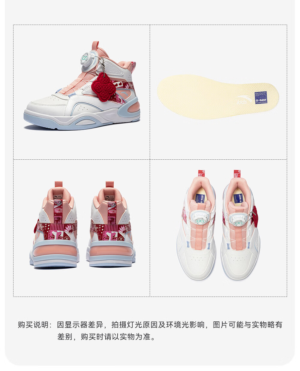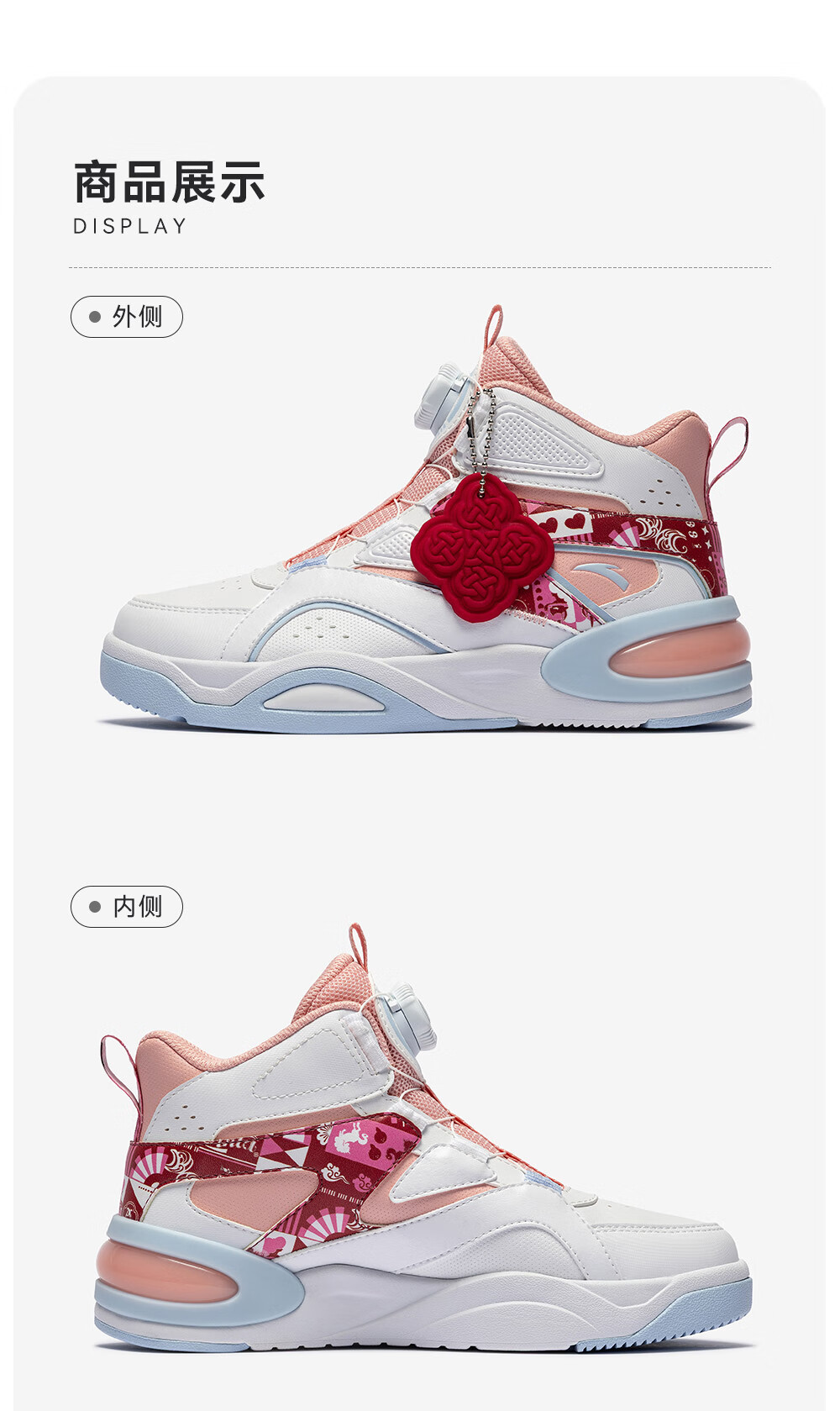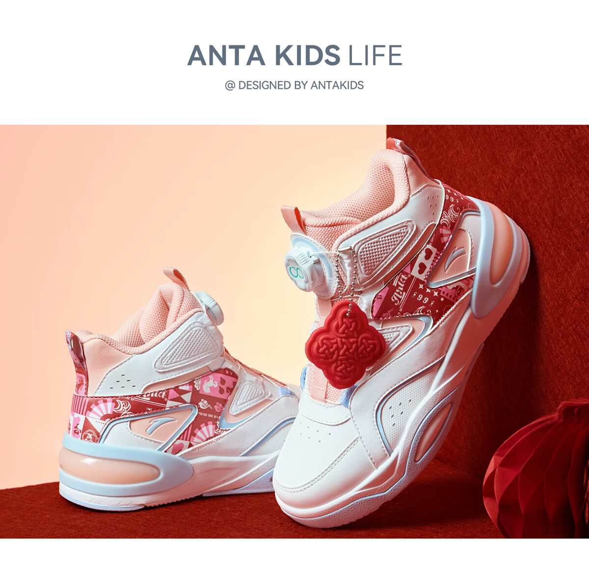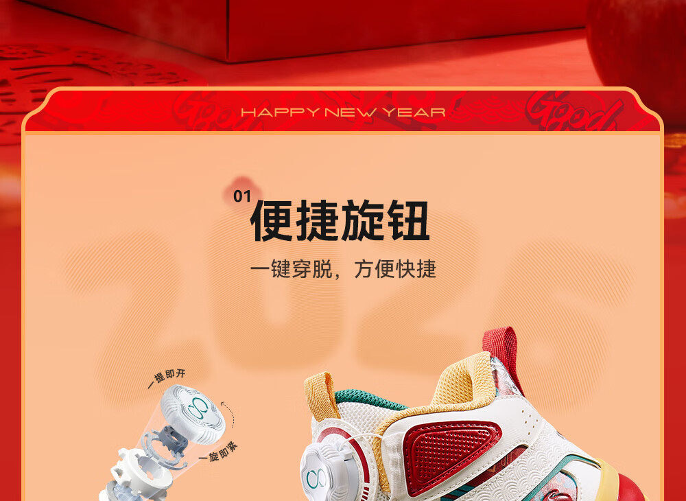安踏童鞋男女大童弧光高帮板鞋26新年鸿运国潮风革面旋钮儿童运动鞋 【店长推荐】象牙白/经典红-1 37 鞋内长23.5cm