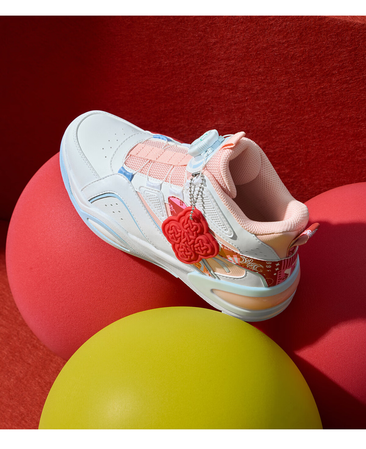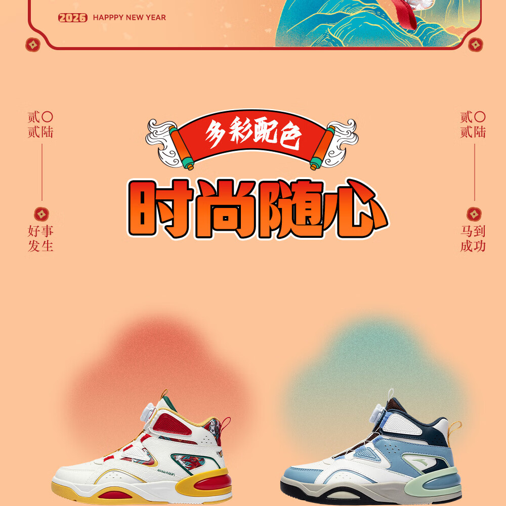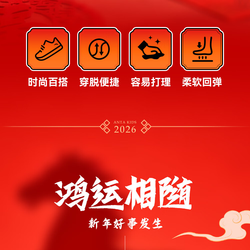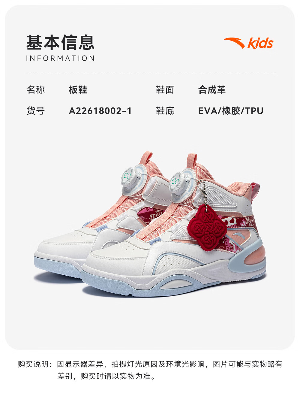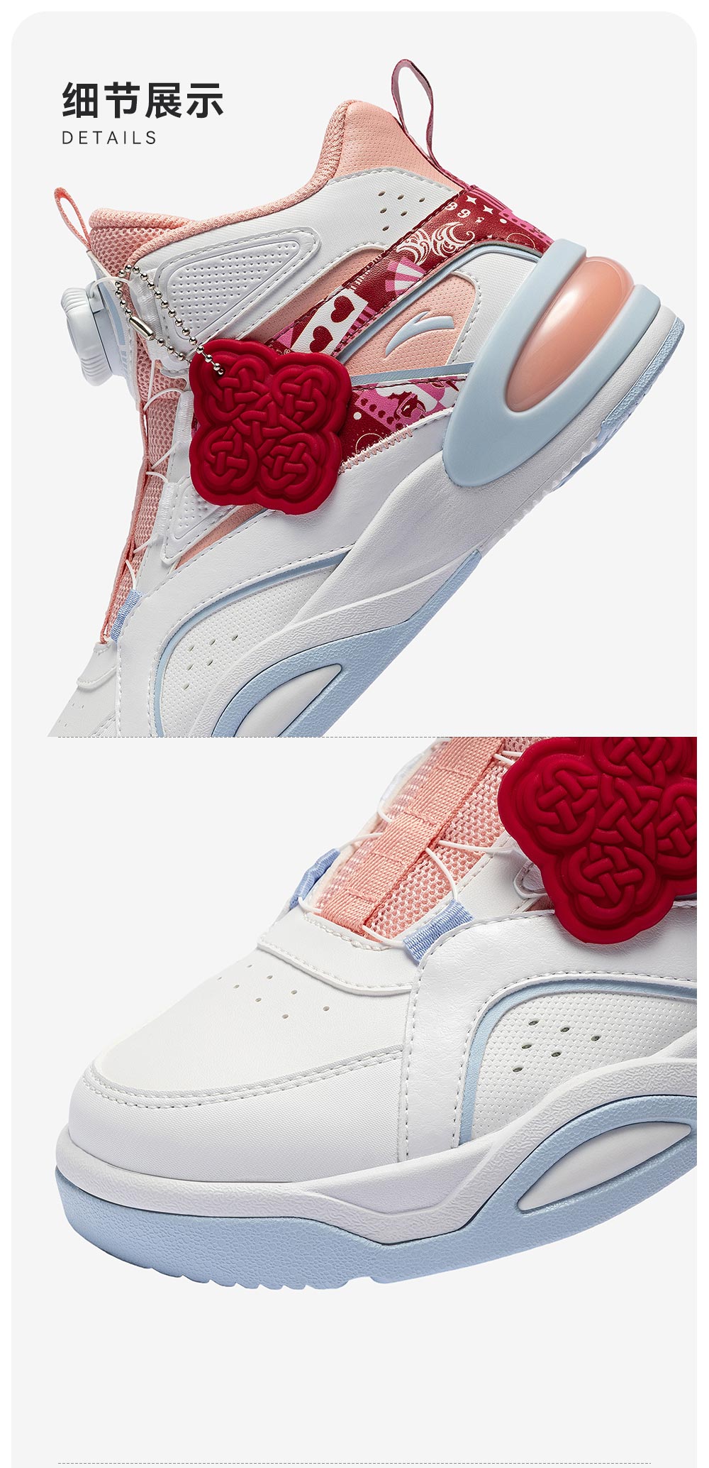 安踏童鞋男女大童弧光高帮板鞋26新年鸿运国潮风革面旋钮儿童运动鞋 【店长推荐】象牙白/经典红-1 37 鞋内长23.5cm