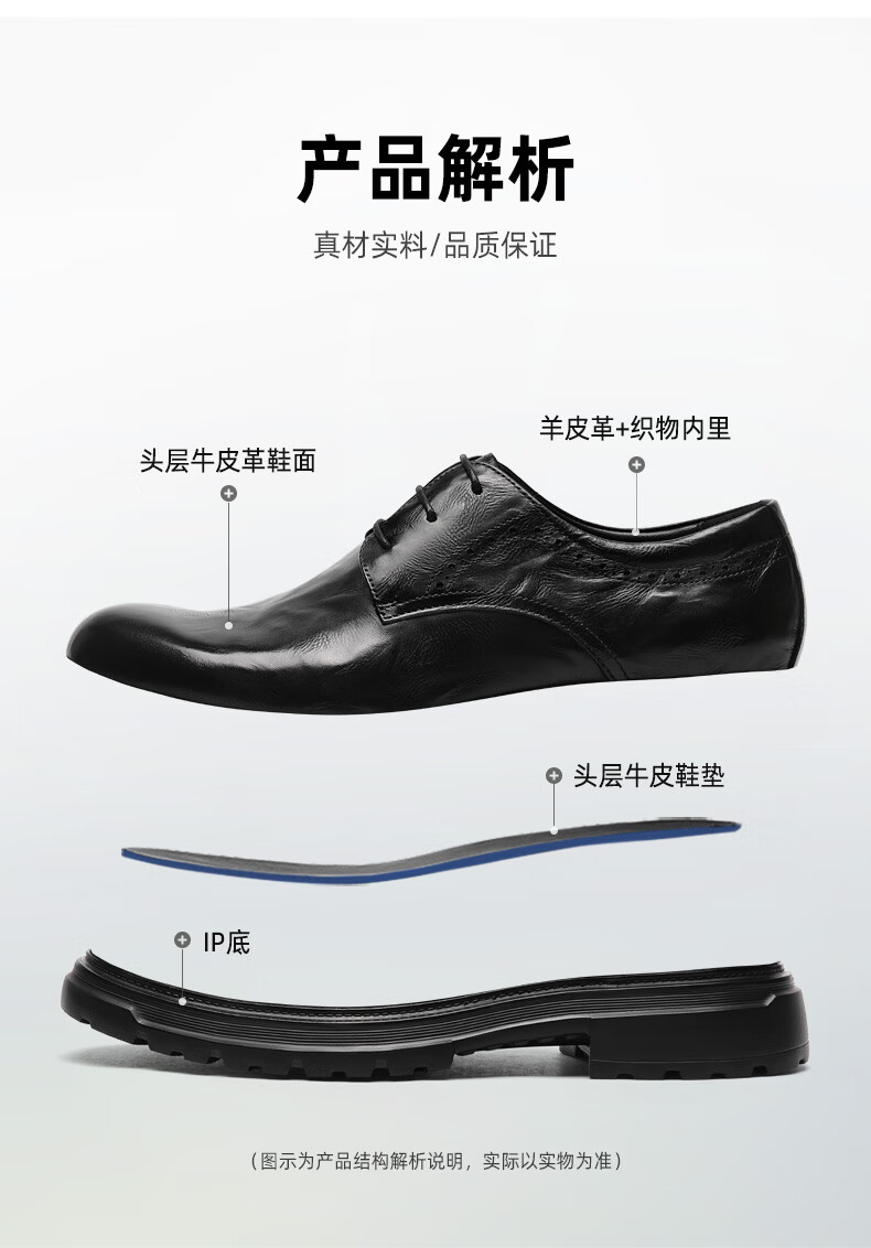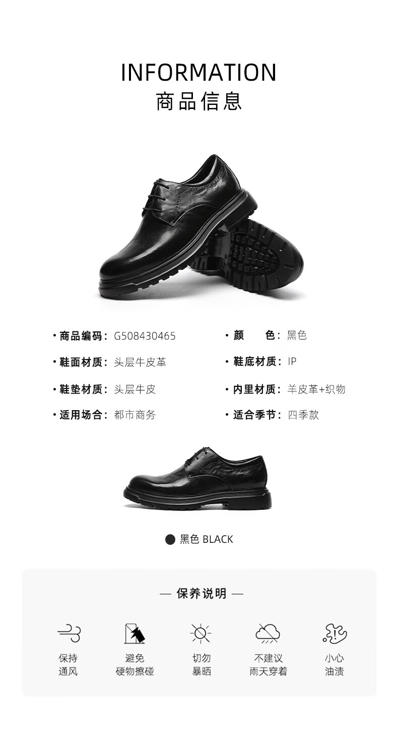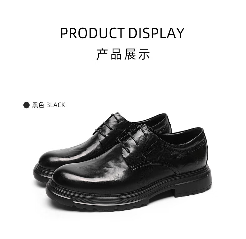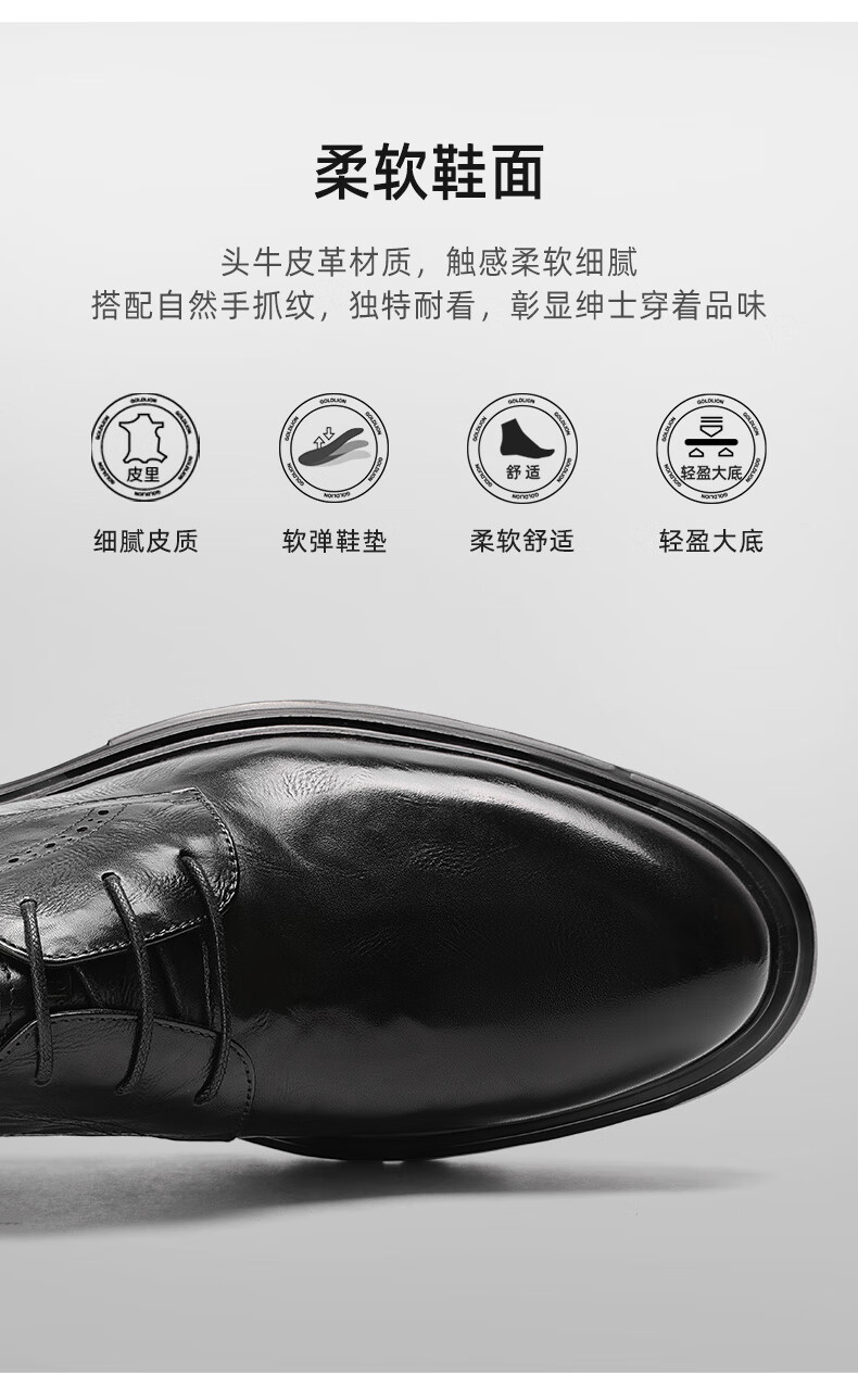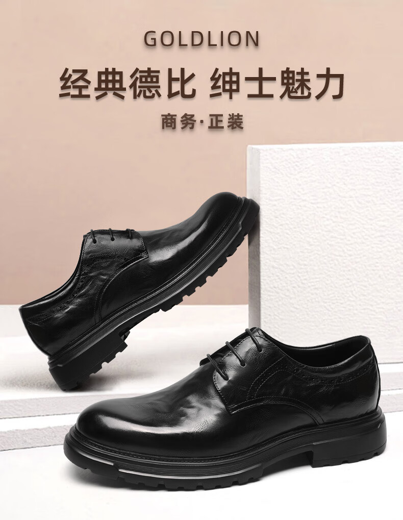 金利来(Goldlion)男鞋25年秋季新品商务正装皮鞋男英伦风德比鞋男士皮鞋 黑色 37