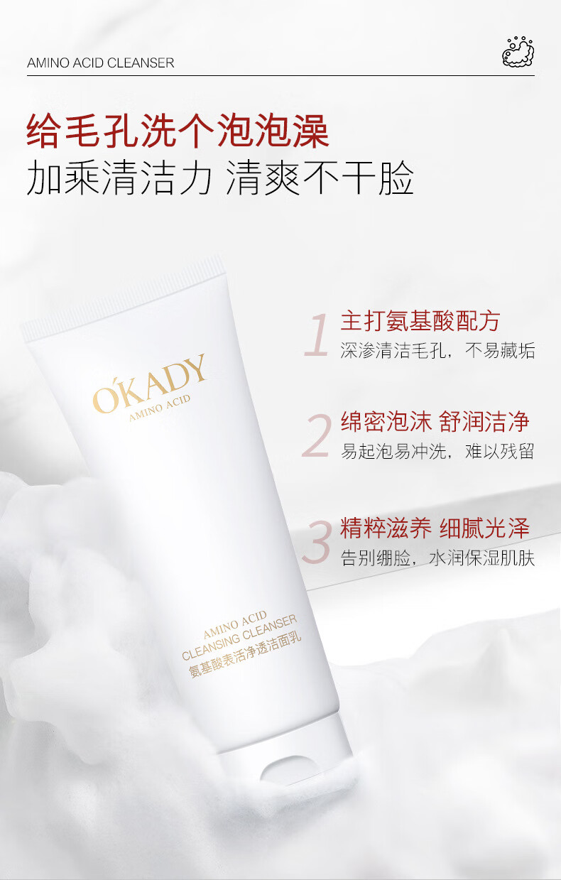 欧佩O'KADY【男女通用】氨基酸表活净透洁面乳洗面奶温和清洁不紧绷不干脸 氨基酸洁面乳