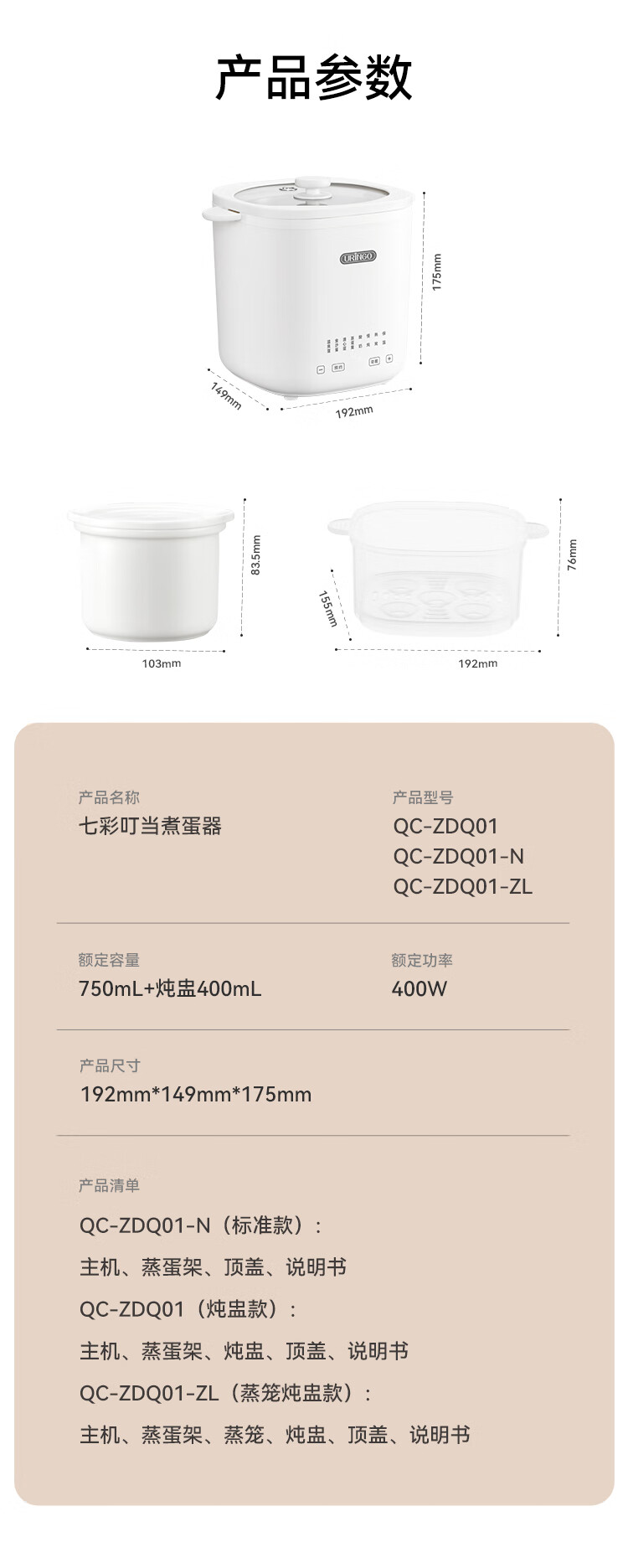 七彩叮当煮蛋器蒸蛋器蒸锅电蒸锅蒸煮多功能一体机全自动智能煮鸡蛋神器小蒸锅1-2人早餐机 单层 【炖盅款】