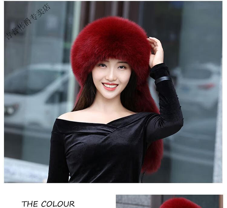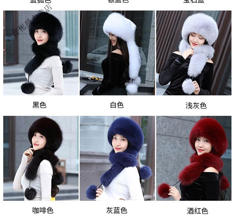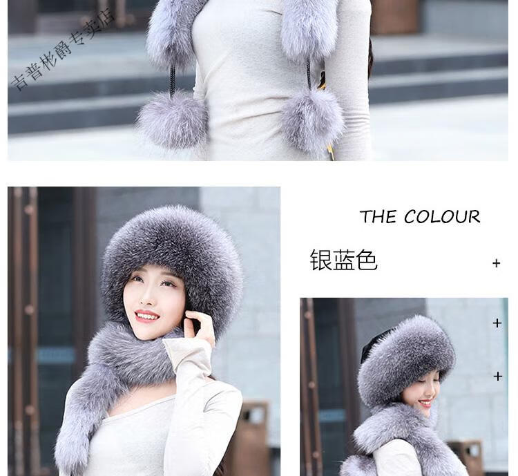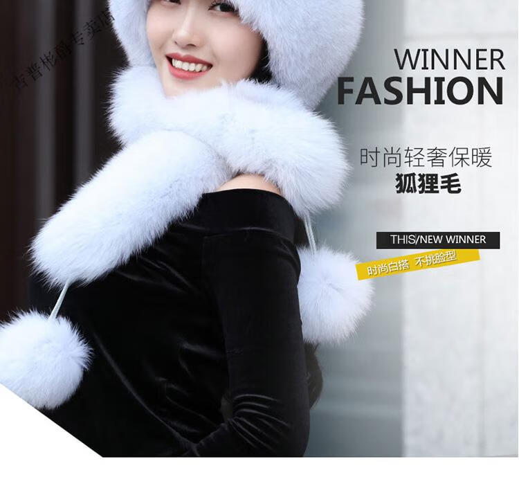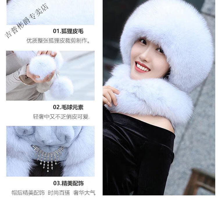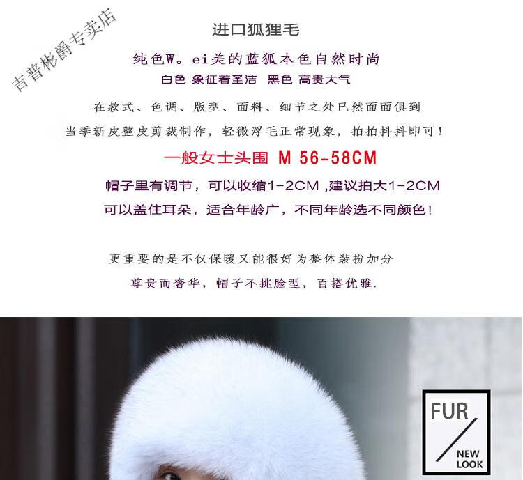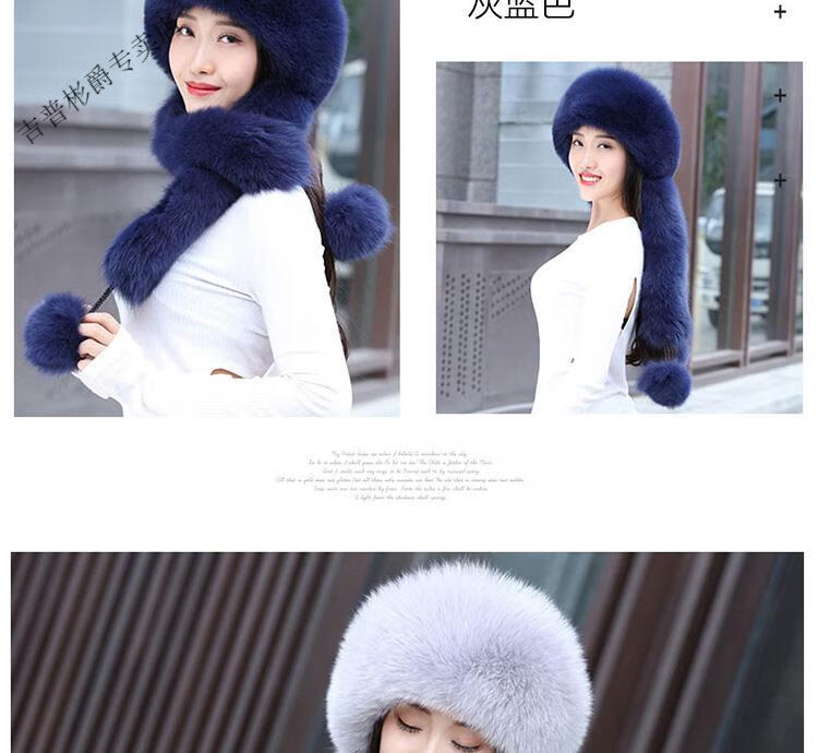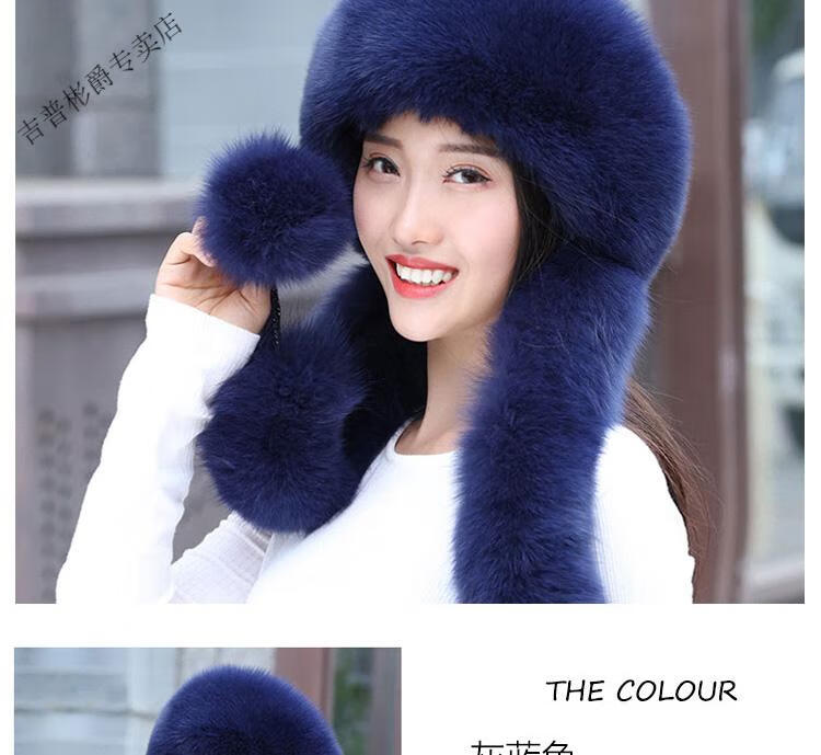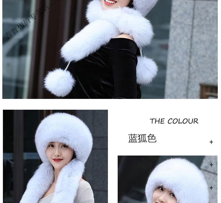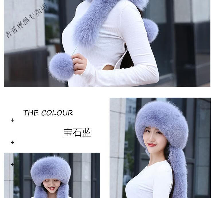 JEEP SPIRIT狐狸毛皮草帽子女冬季护耳包头围巾帽真裘皮蒙古女帽东北獭兔毛毛 蓝狐色 S(54-56cm)