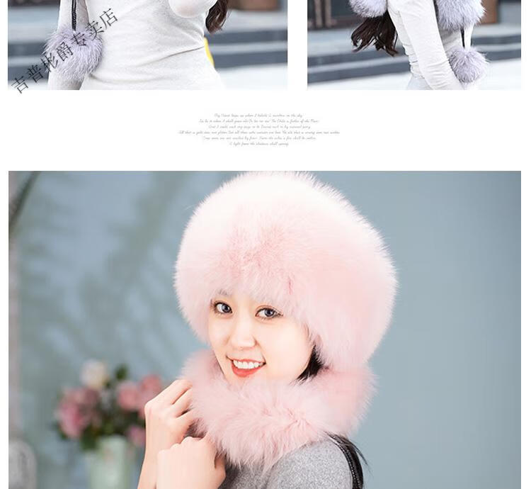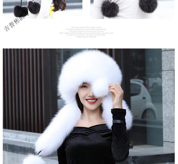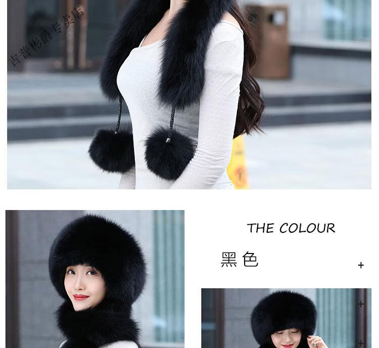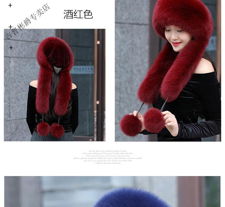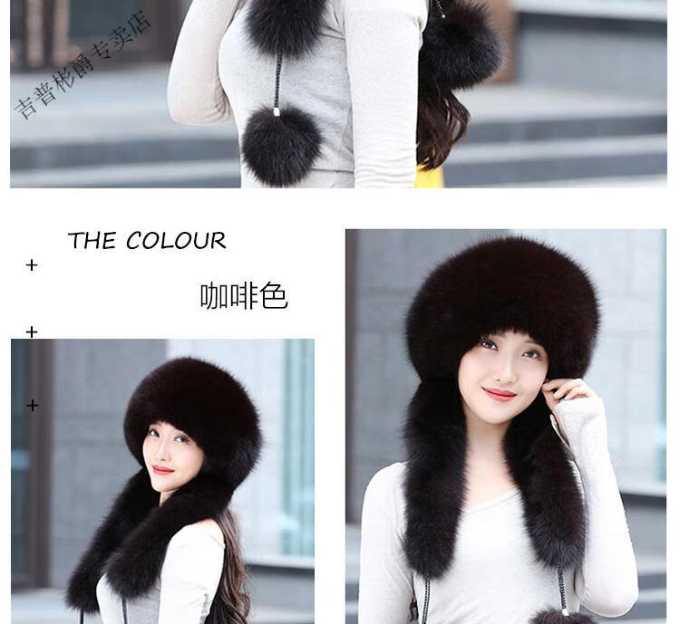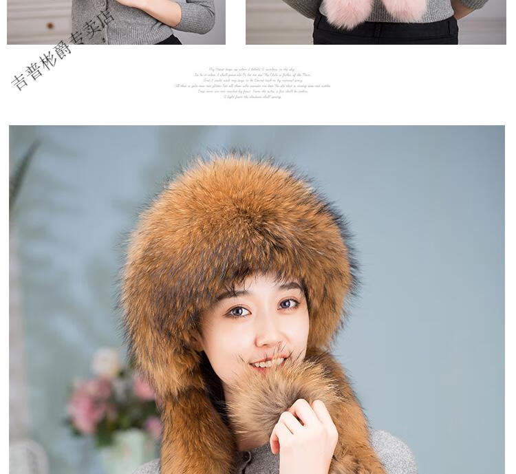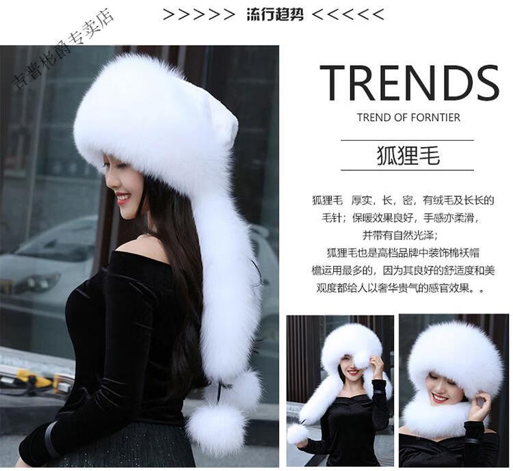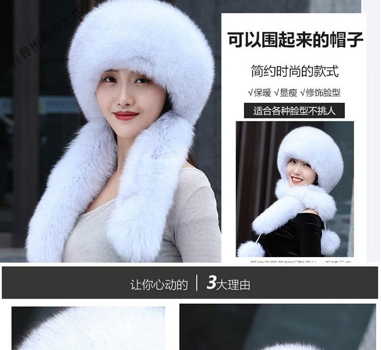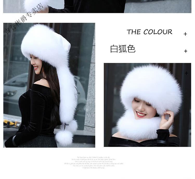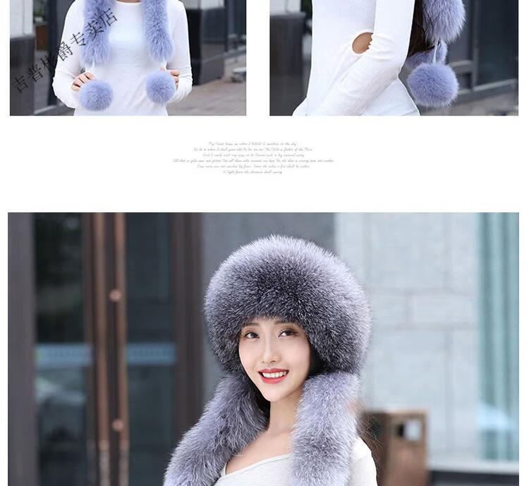 JEEP SPIRIT狐狸毛皮草帽子女冬季护耳包头围巾帽真裘皮蒙古女帽东北獭兔毛毛 蓝狐色 S(54-56cm)