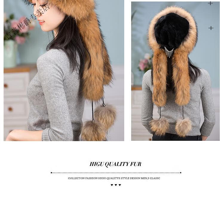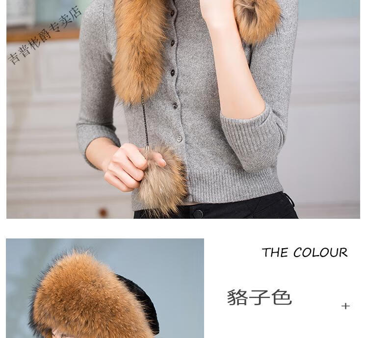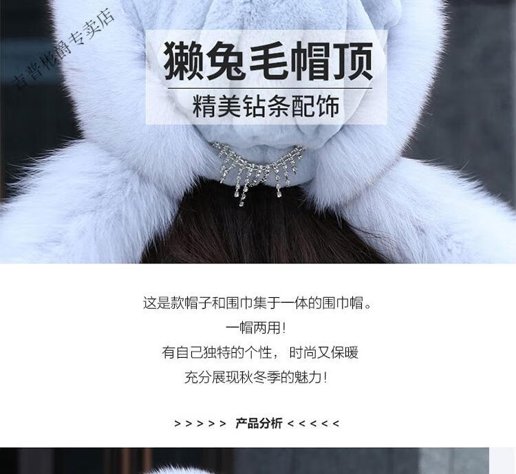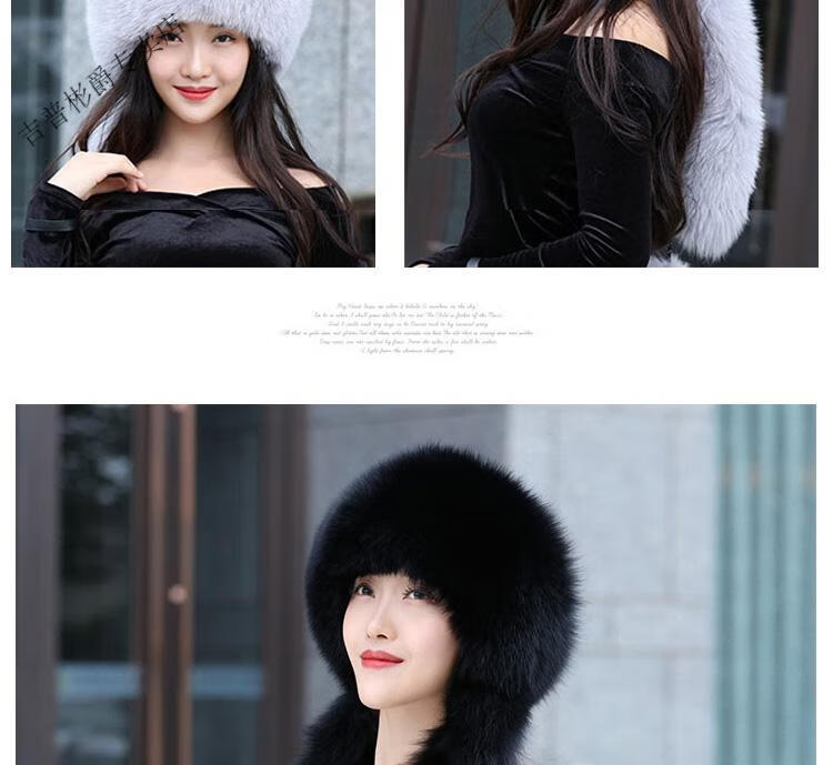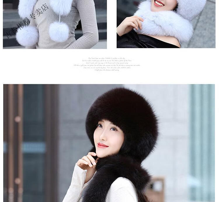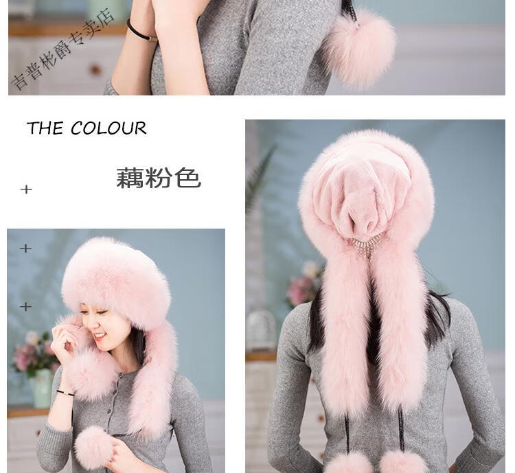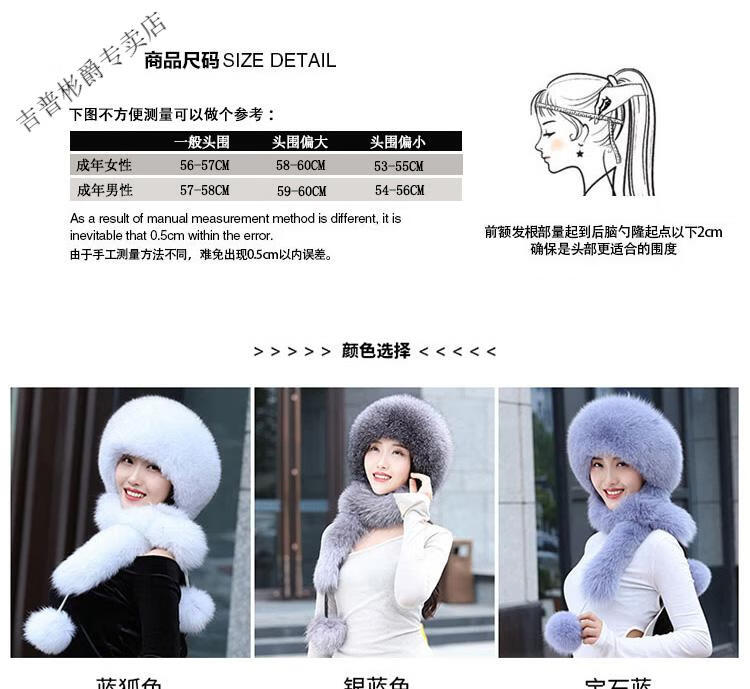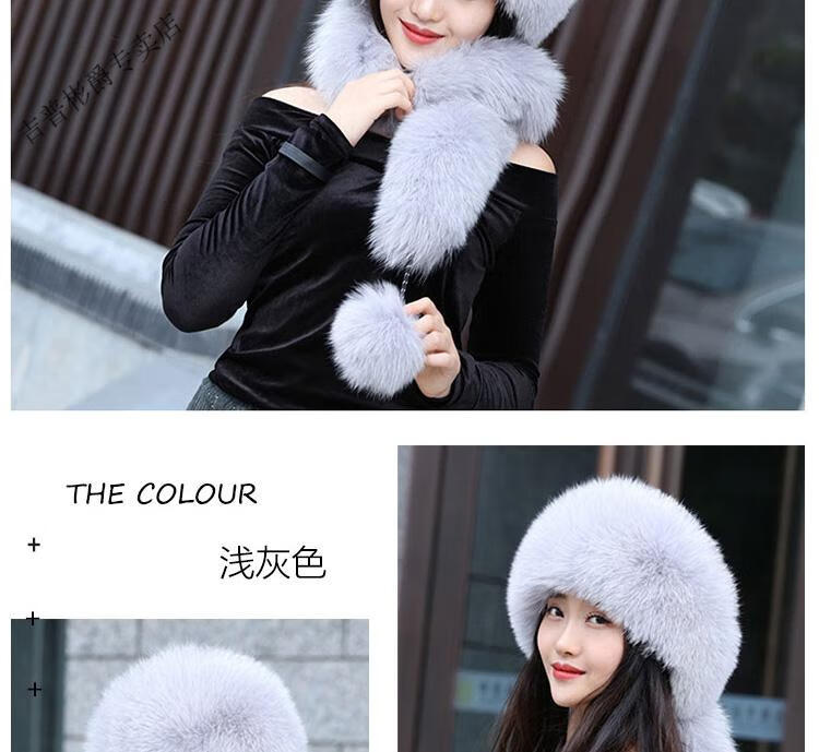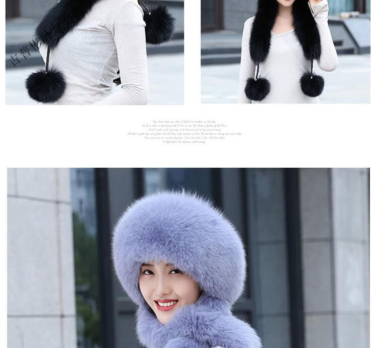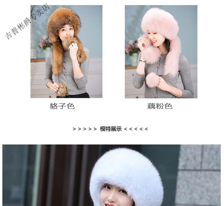 JEEP SPIRIT狐狸毛皮草帽子女冬季护耳包头围巾帽真裘皮蒙古女帽东北獭兔毛毛 蓝狐色 S(54-56cm)
