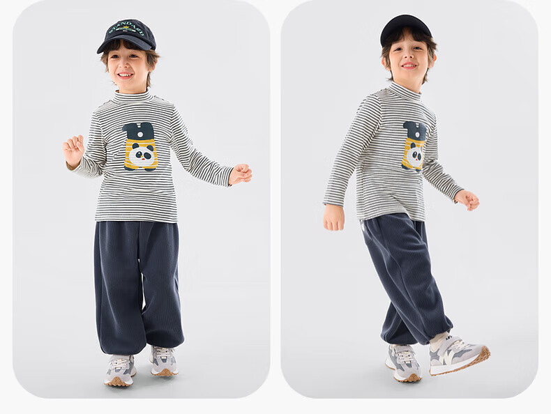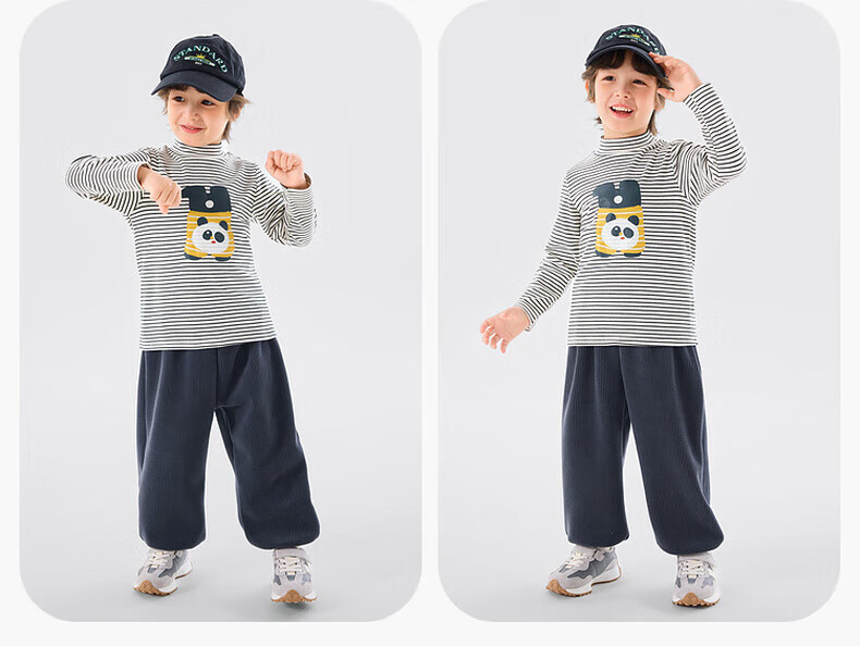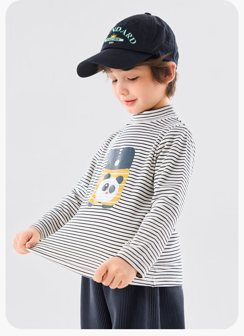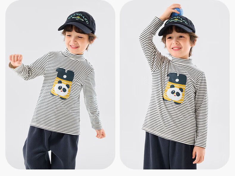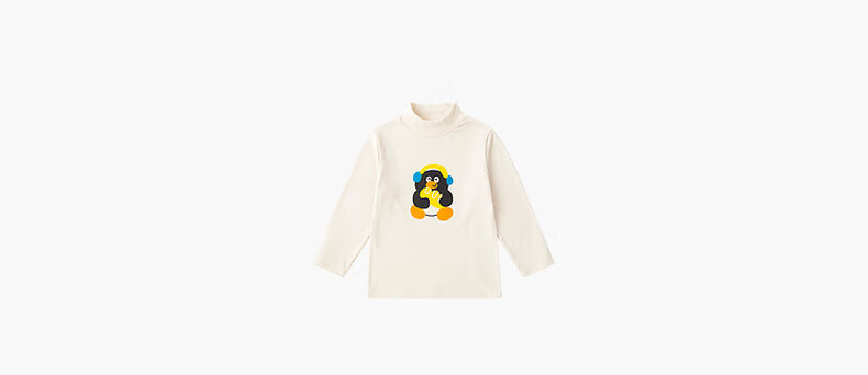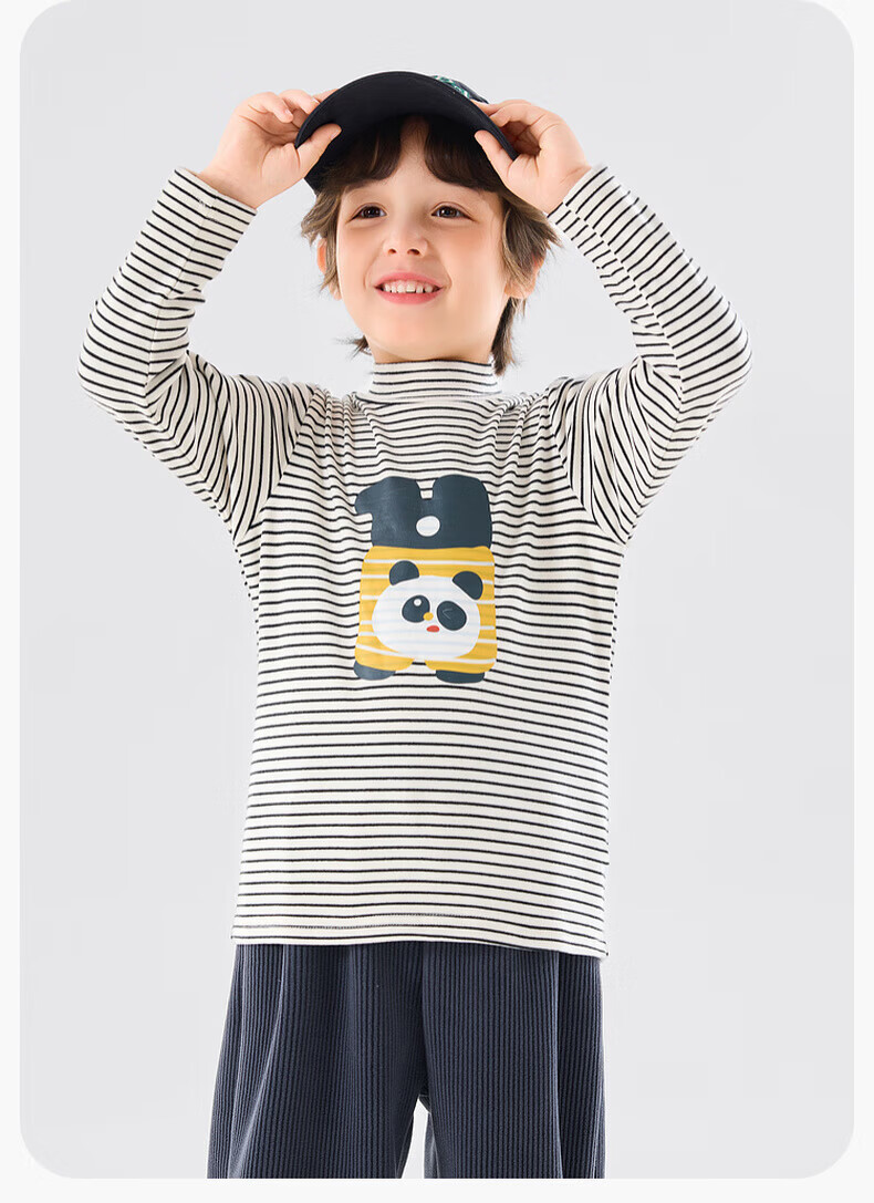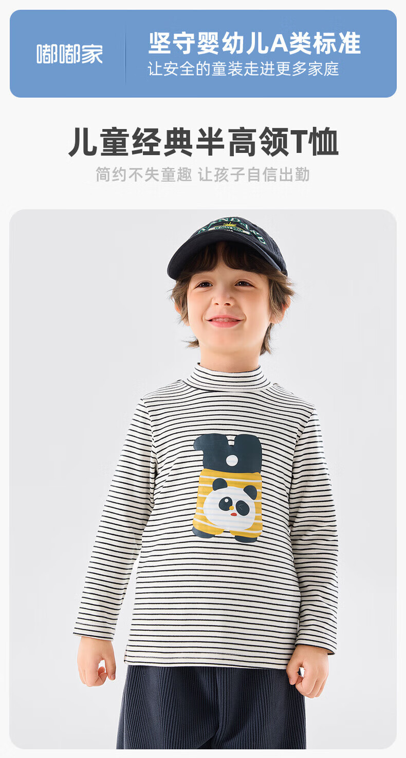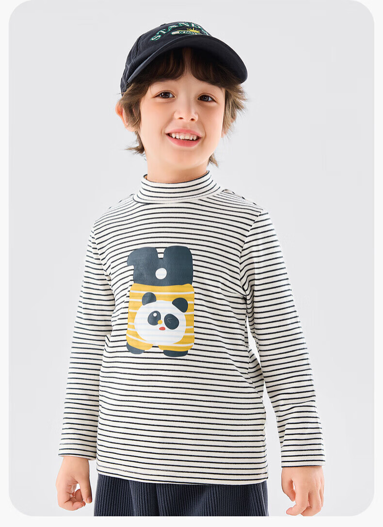 嘟嘟家【抗静电】男童打底衫冬款儿童长袖T恤半高领冬装女童上衣童装潮 米白色 90