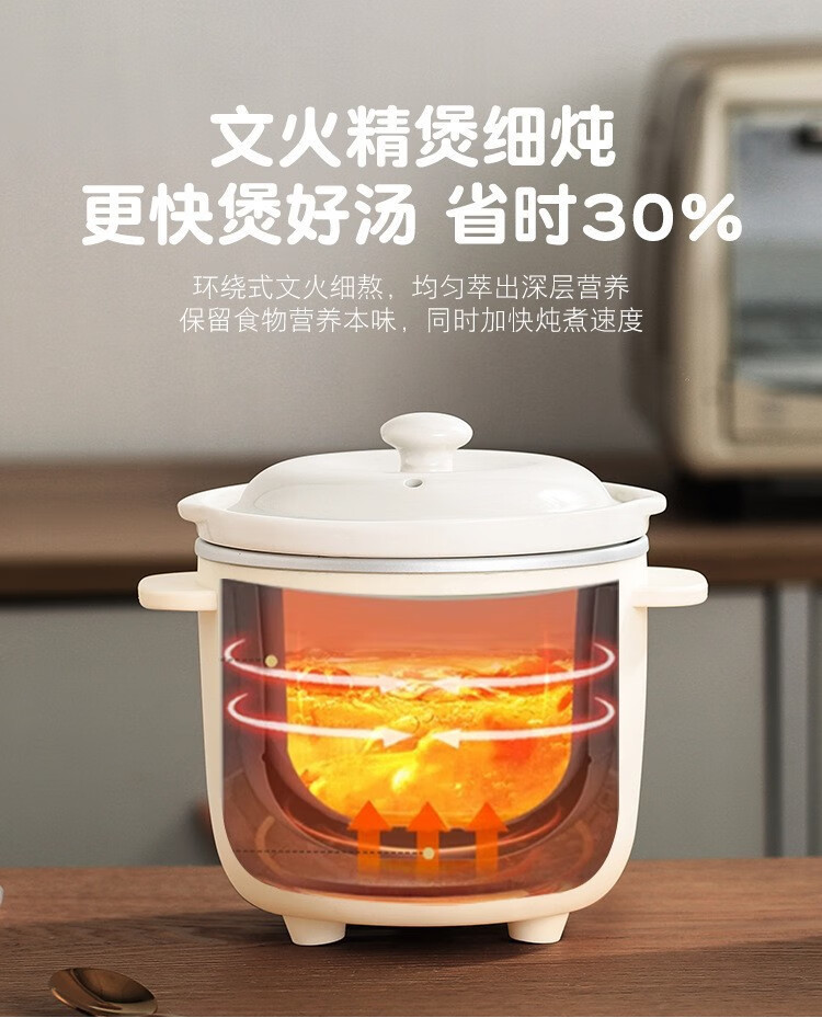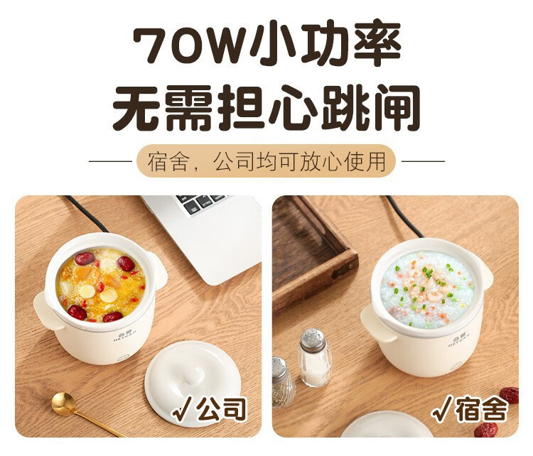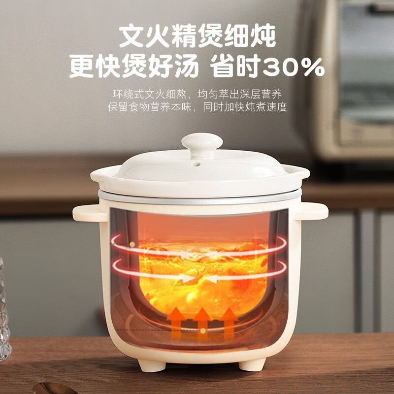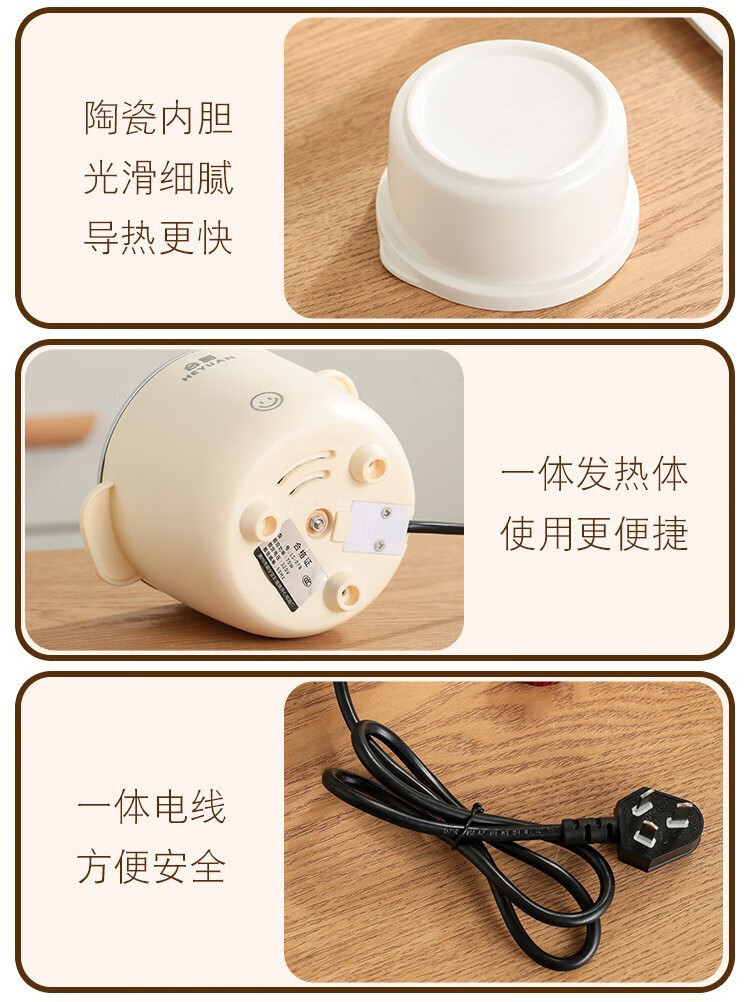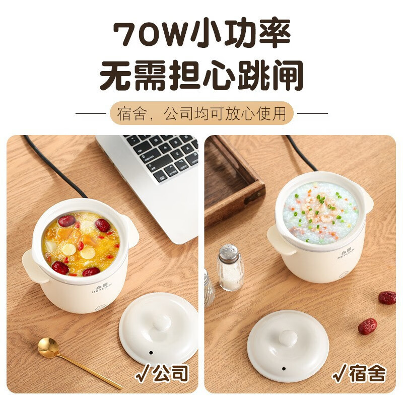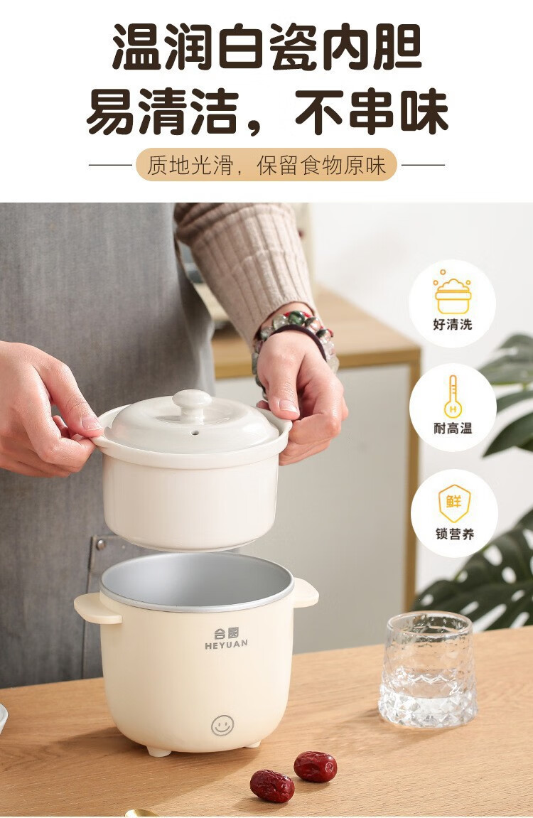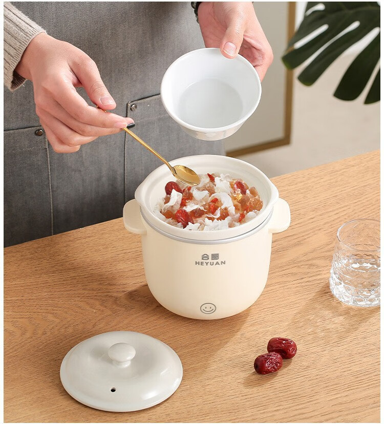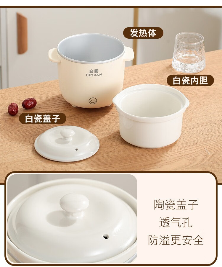 米栗熊合圆小电炖锅陶瓷炖锅煮粥煲汤婴儿辅食锅家用宿舍电炖锅电饭煲 0.7L