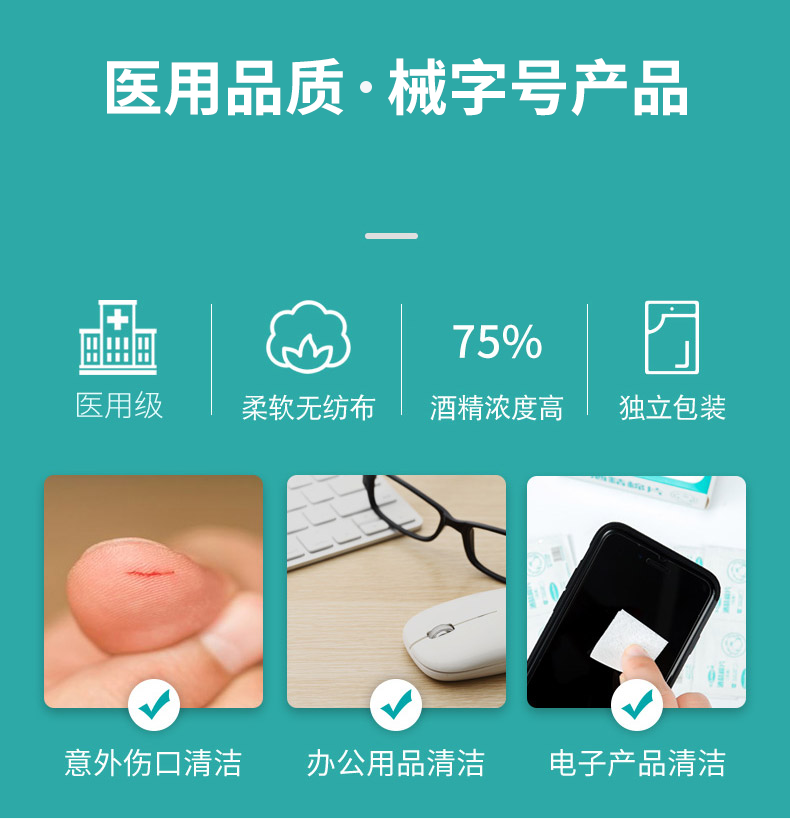 江赫 75%酒精棉片医用消毒棉片一次性消毒杀菌擦手机便携式通用清洁布 【2盒 共200片】消毒棉片6x6cm