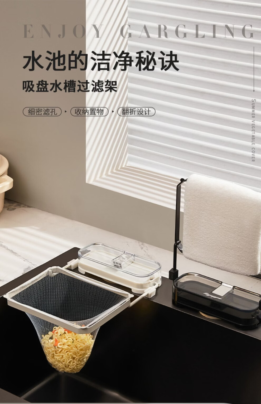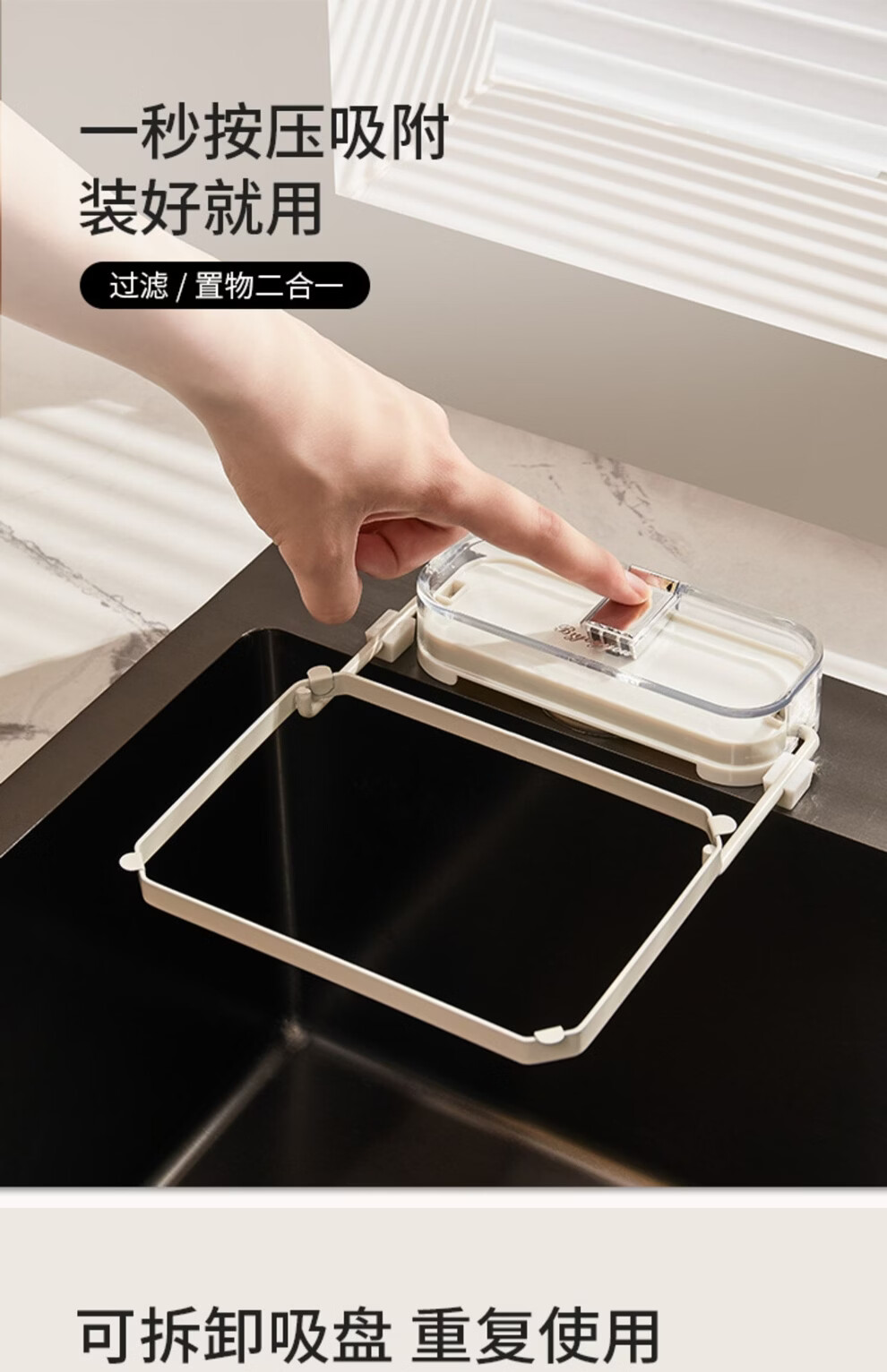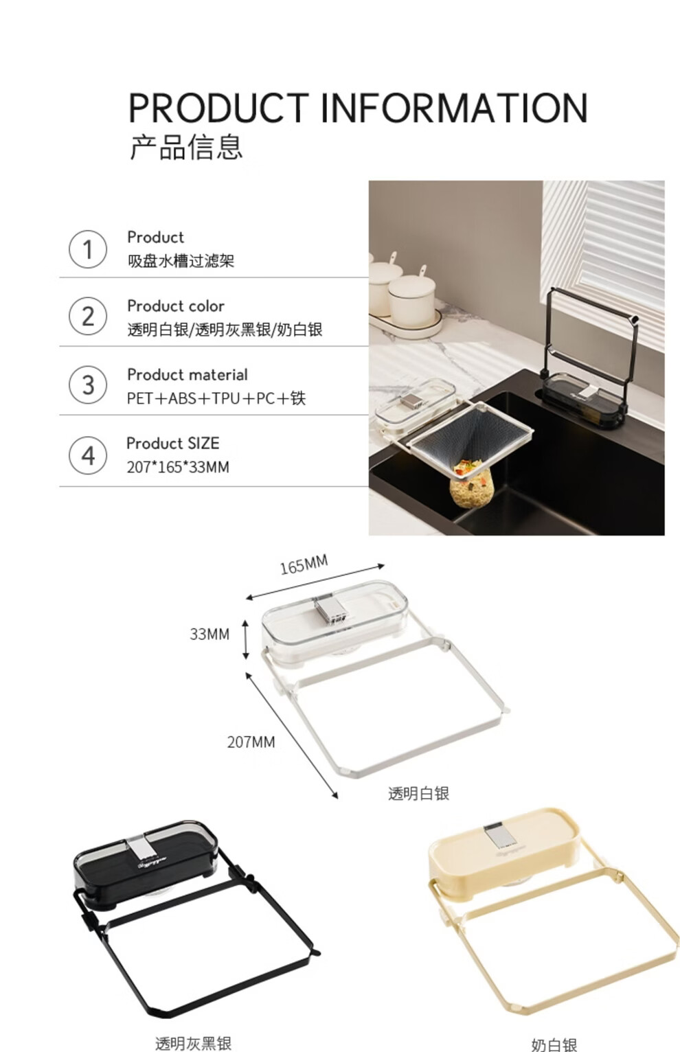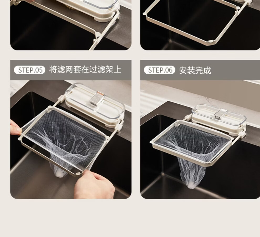 日禾盛唐厨房水槽过滤网架吸盘式剩饭剩菜防堵洗碗盆水池厨余垃圾沥水网架 透明白银/过滤架+过滤网50只 33-207mm