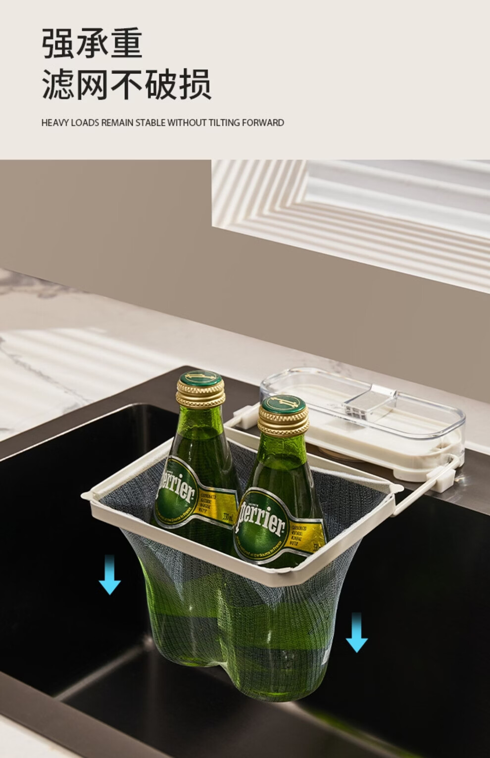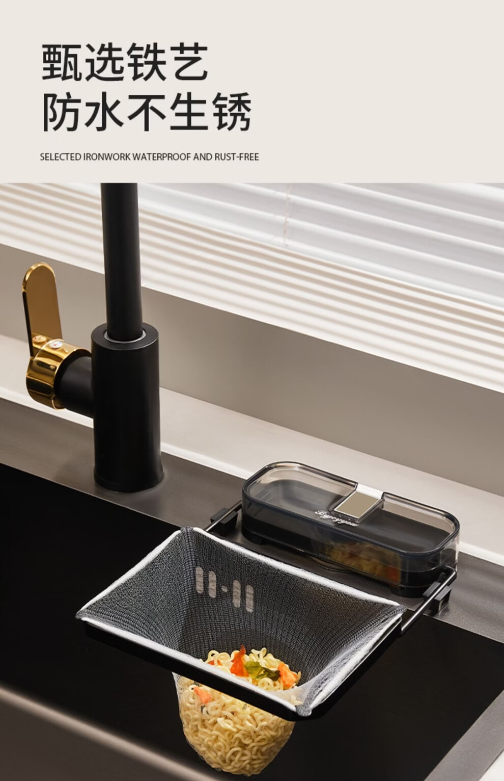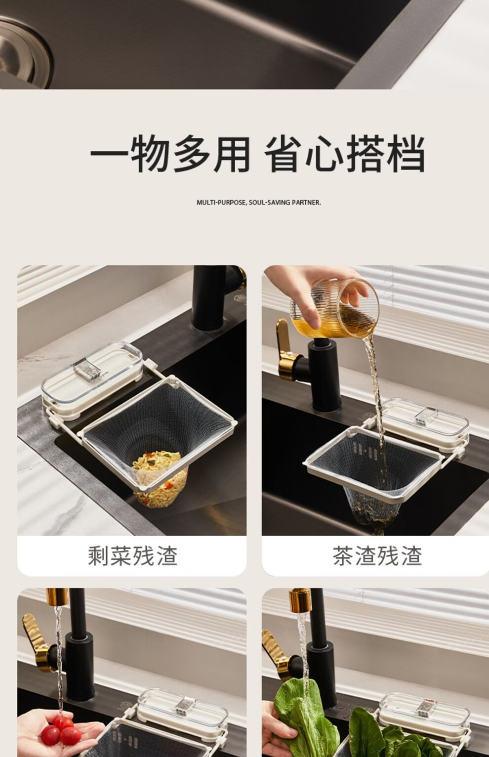 日禾盛唐厨房水槽过滤网架吸盘式剩饭剩菜防堵洗碗盆水池厨余垃圾沥水网架 透明白银/过滤架+过滤网50只 33-207mm