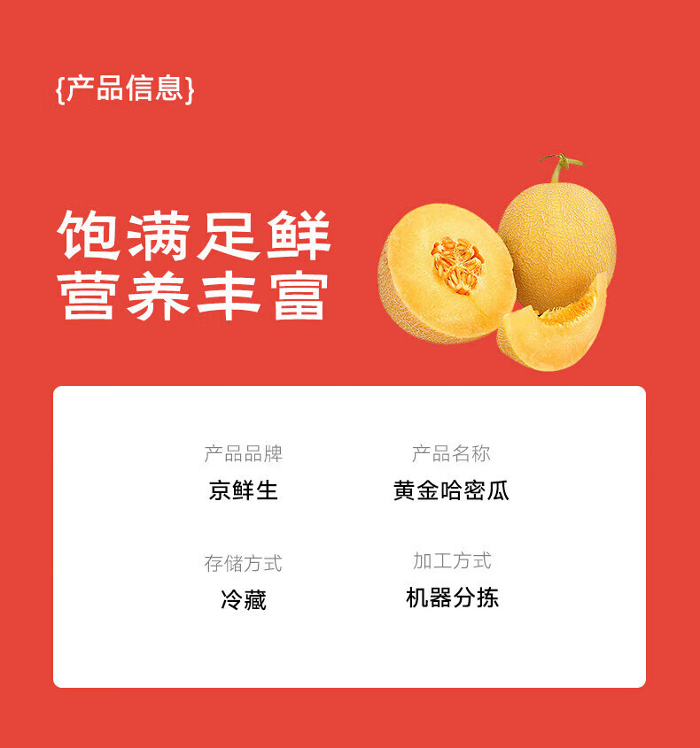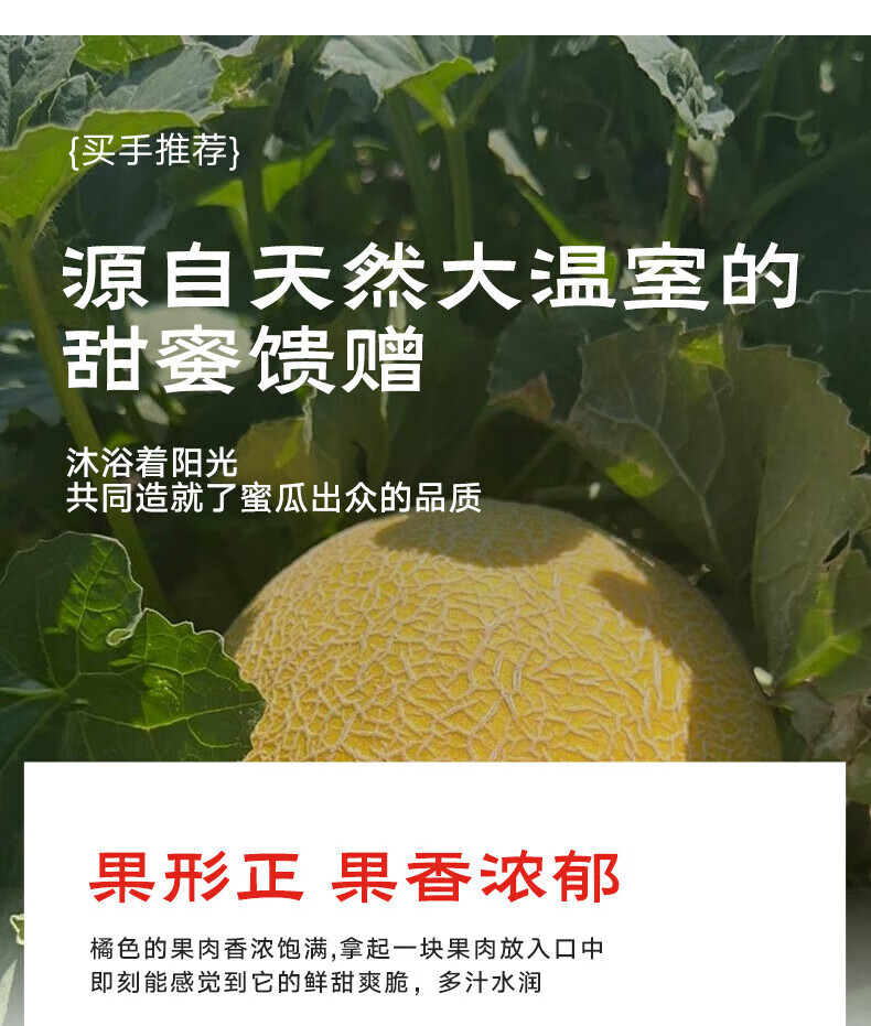 京鲜生 黄金哈密瓜 2粒 单果2.5斤起 净重6-8斤 生鲜水果礼盒