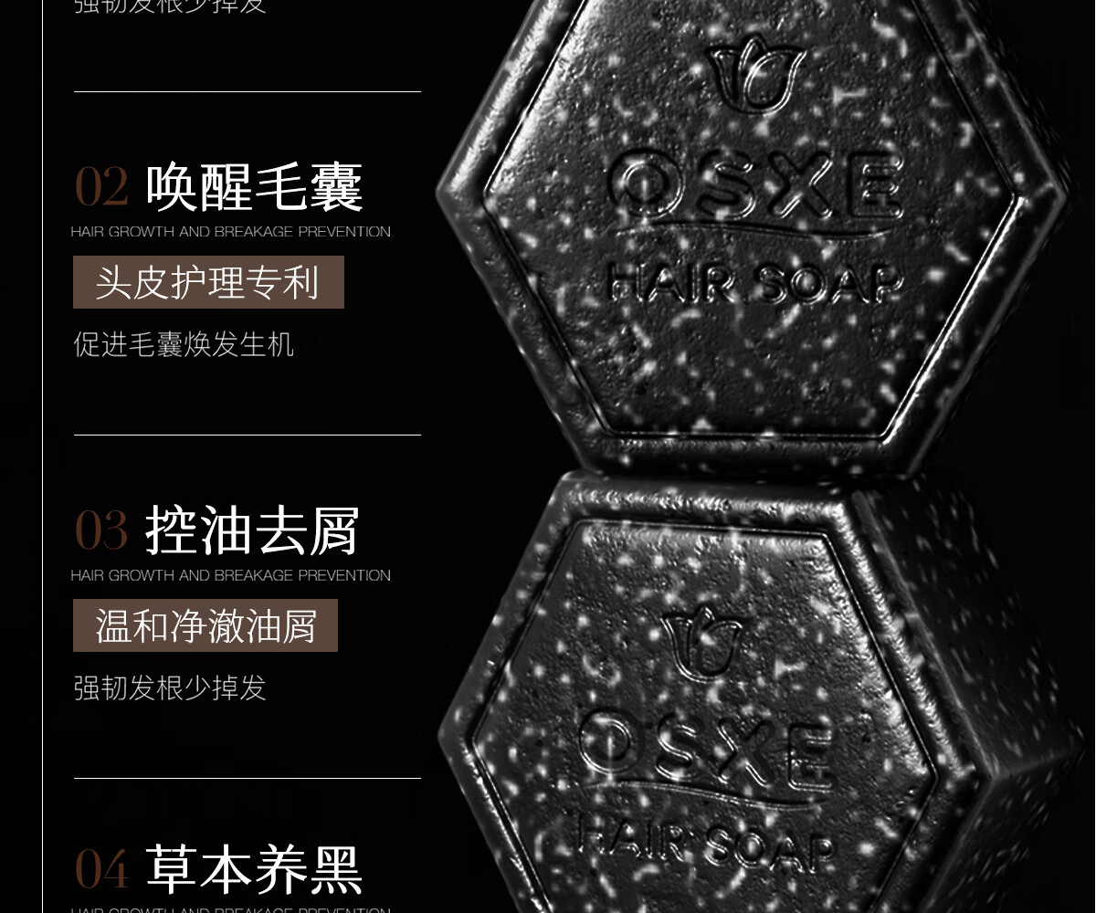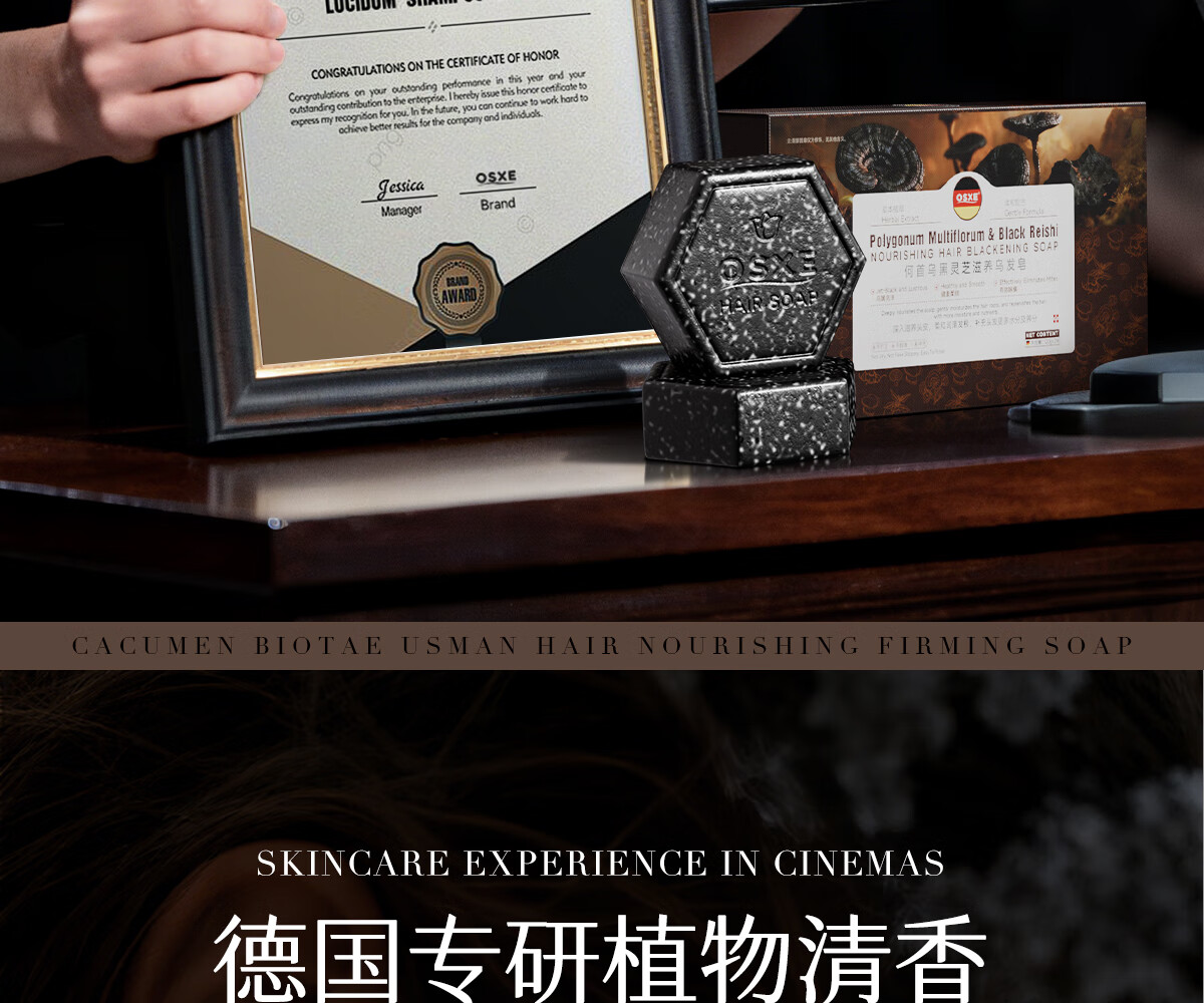 OSXE法国进口原料黑灵芝何首乌洗发皂白头发转养黑冶发根养发洗发露*1