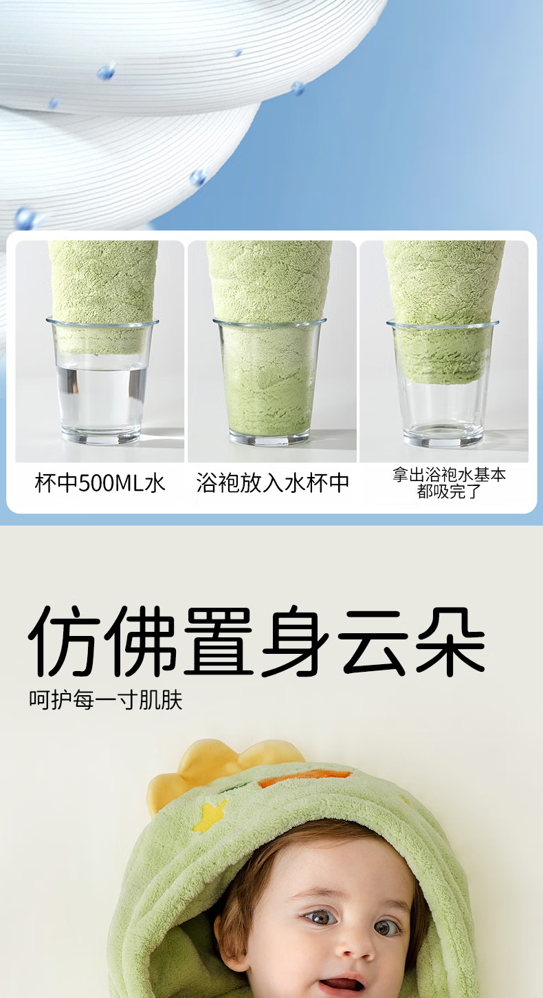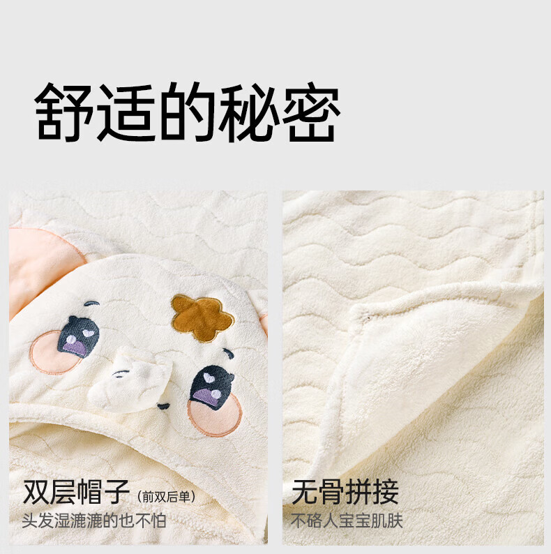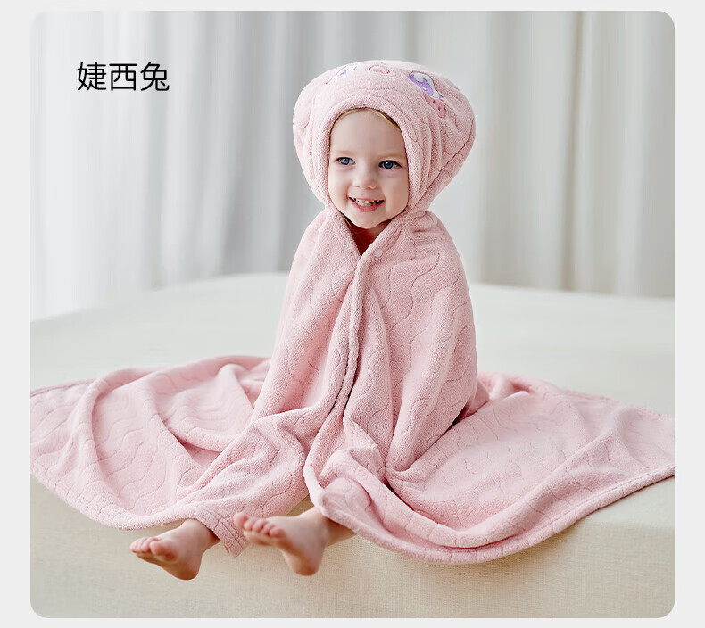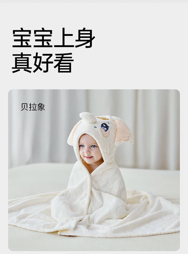 欧孕(OUYUN)儿童浴巾宝宝新生婴儿带帽斗篷浴袍男女童吸水速干可穿-1 拉蒂兔【7A抗菌 防静电】 135cmx65cm