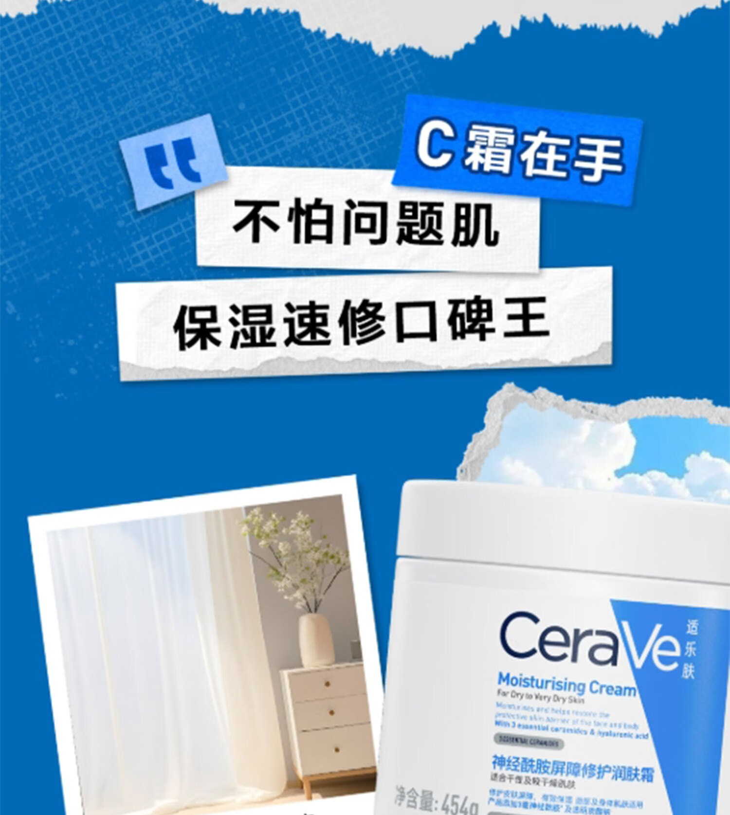 适乐肤(CeraVe)C霜滋润修护面霜50ml舒缓保湿身体乳面霜【临期清仓】