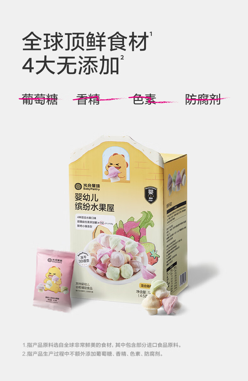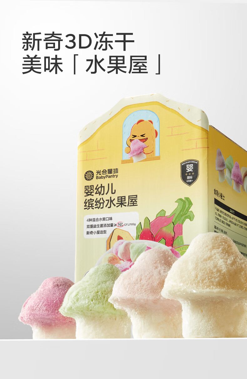 光合星球babycare【山姆同款】小蘑豆宝宝零食溶豆缤纷水果屋冻干水果126g