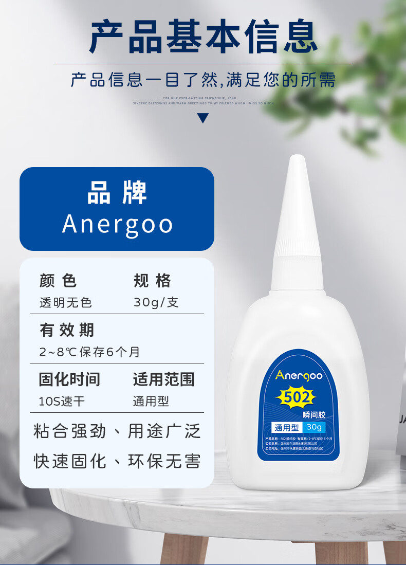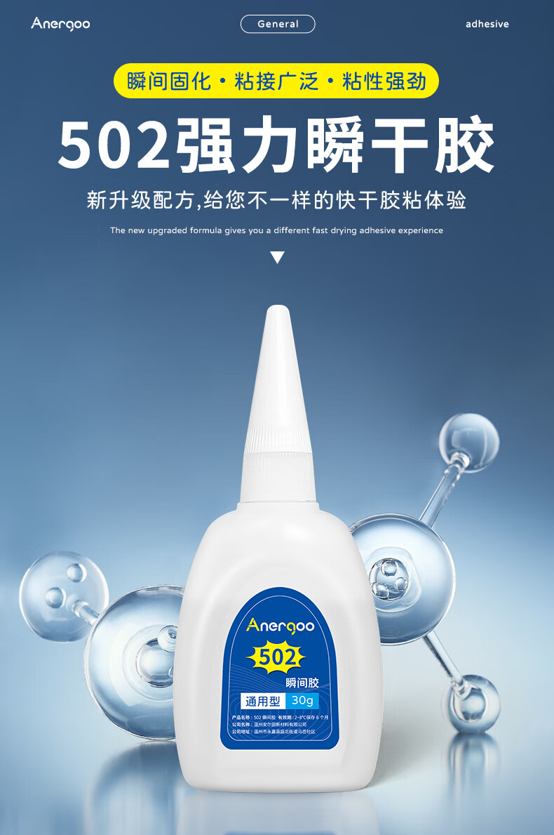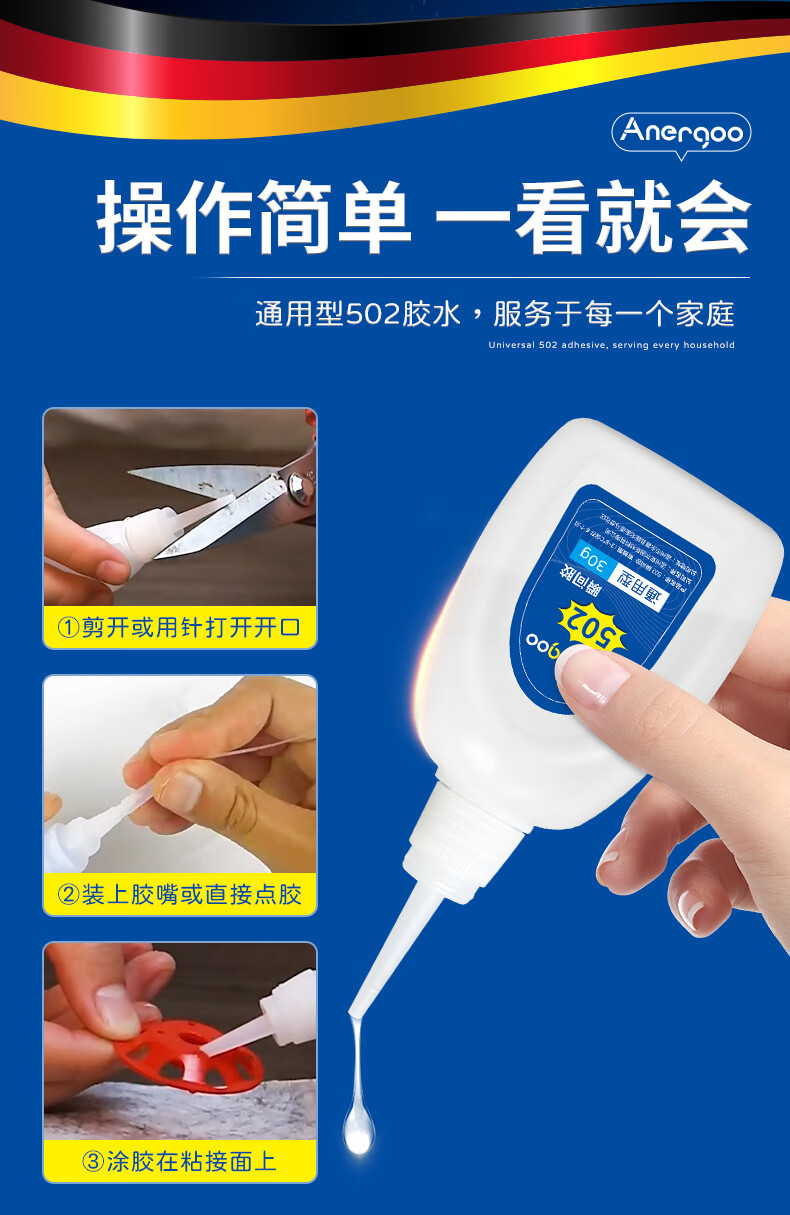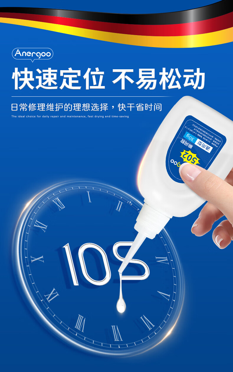ANERGOO 安尔固502胶水强力胶京东自营透明无痕胶万能瞬间胶粘鞋补鞋金属陶瓷木头塑料模型专用胶快干胶