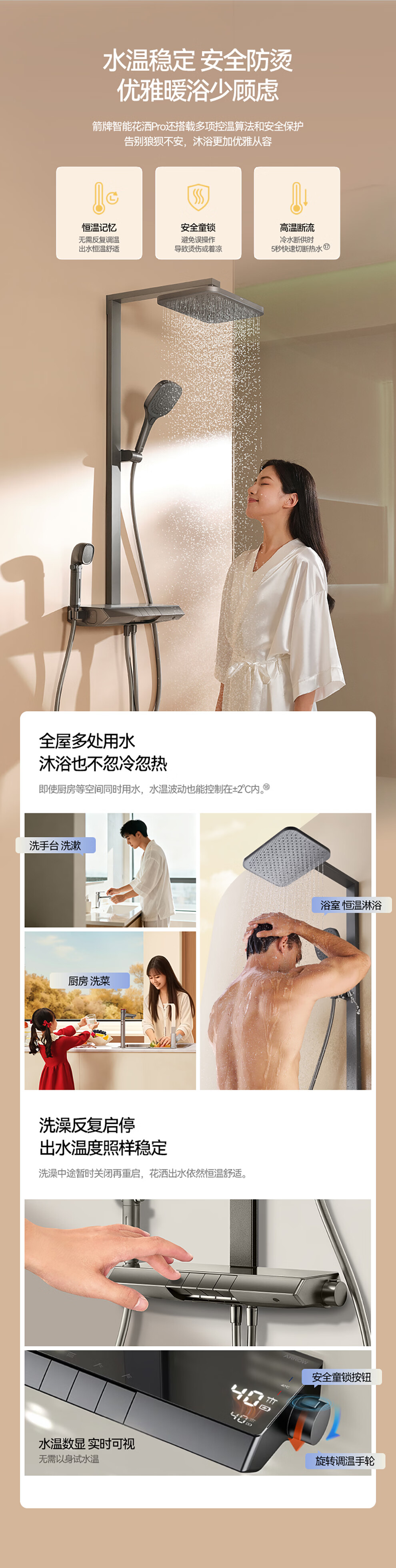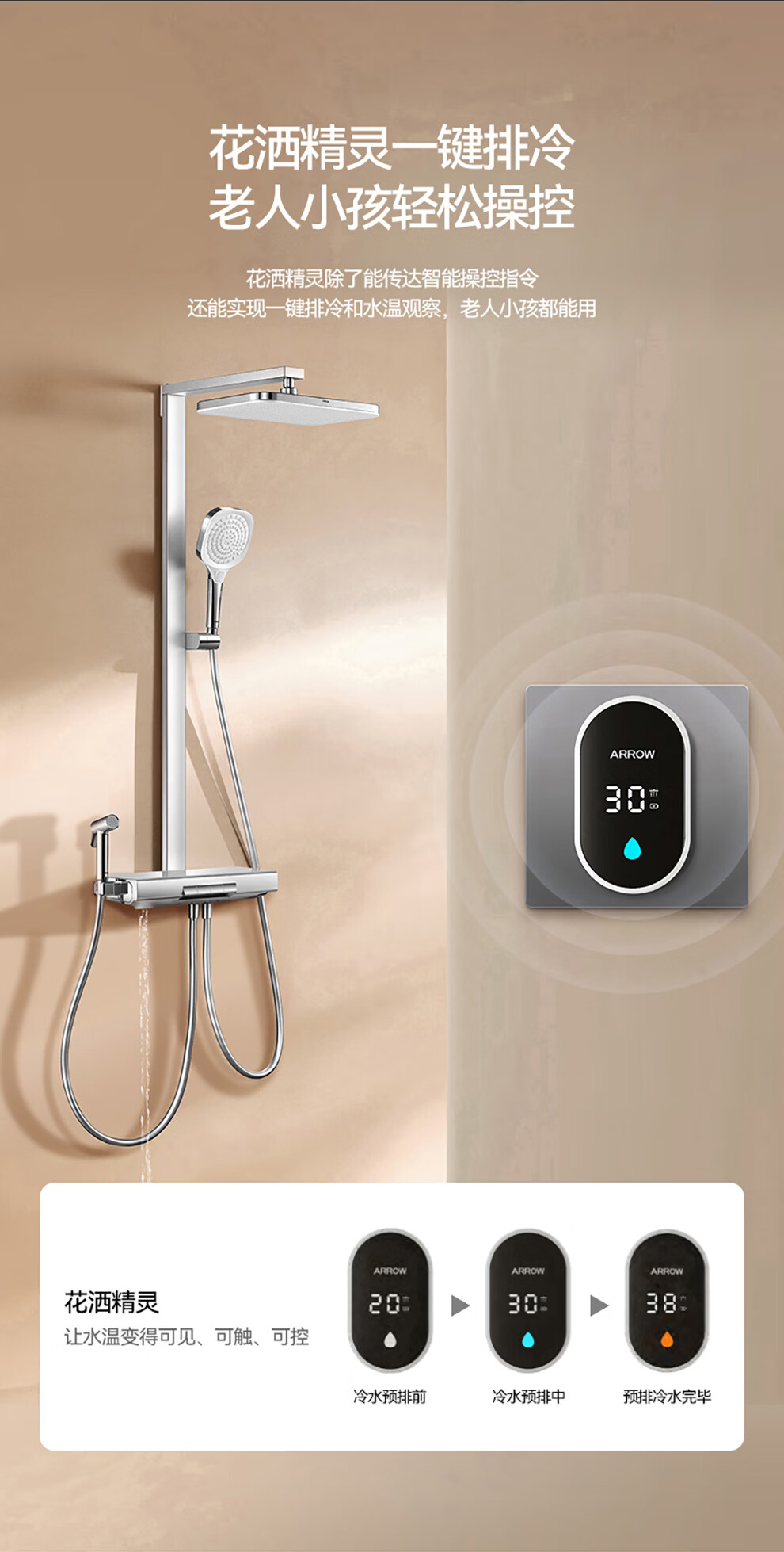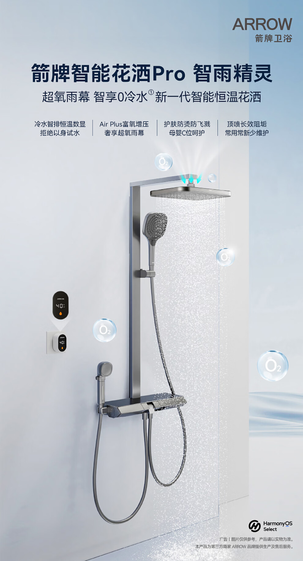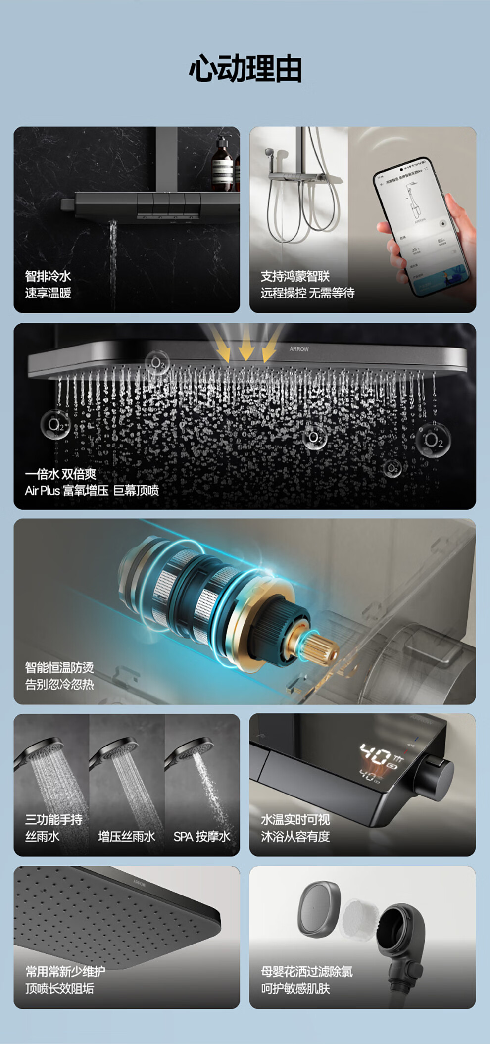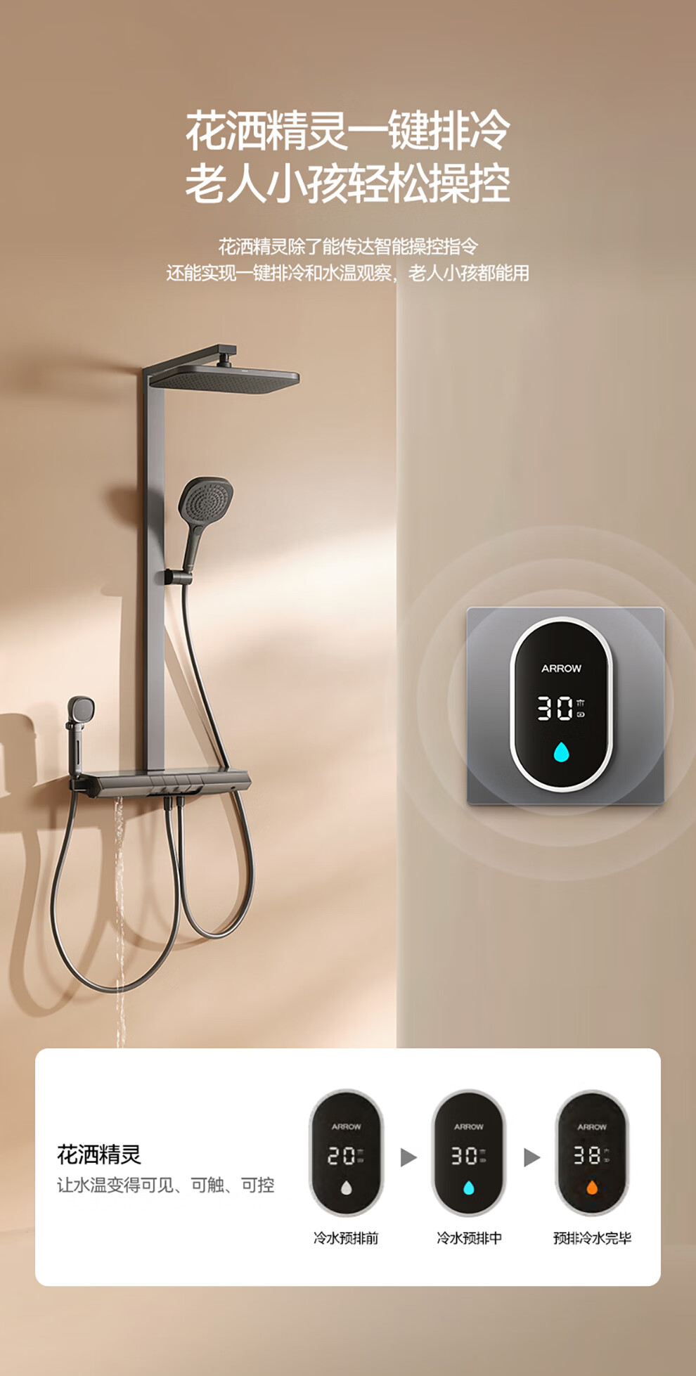 箭牌(ARROW)鸿蒙智选【智雨精灵】淋浴花洒套装0冷水恒温琴键增压花洒 鸿蒙智选花洒Pro-金属灰色
