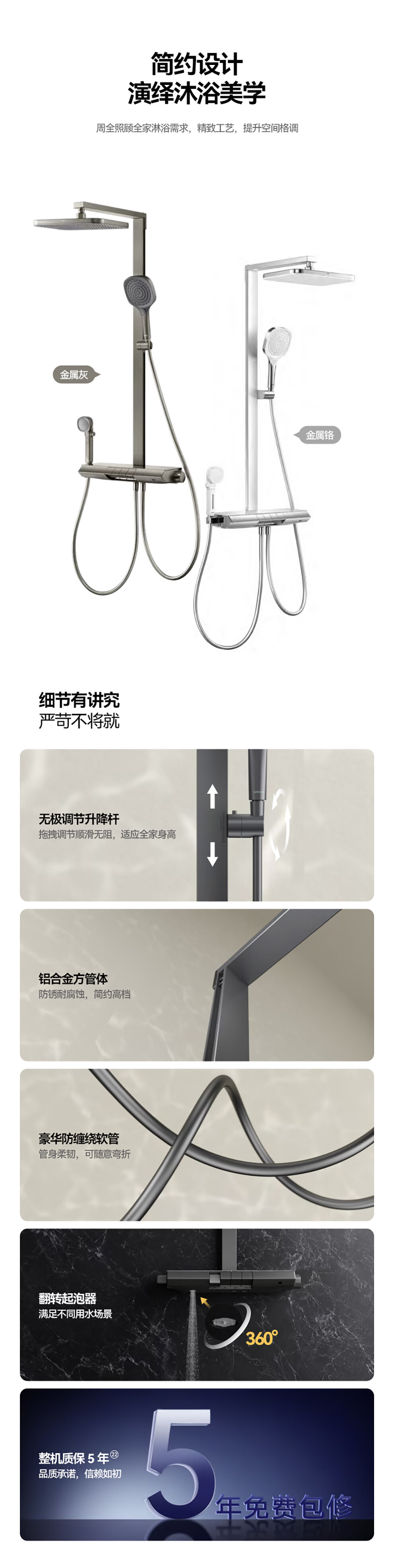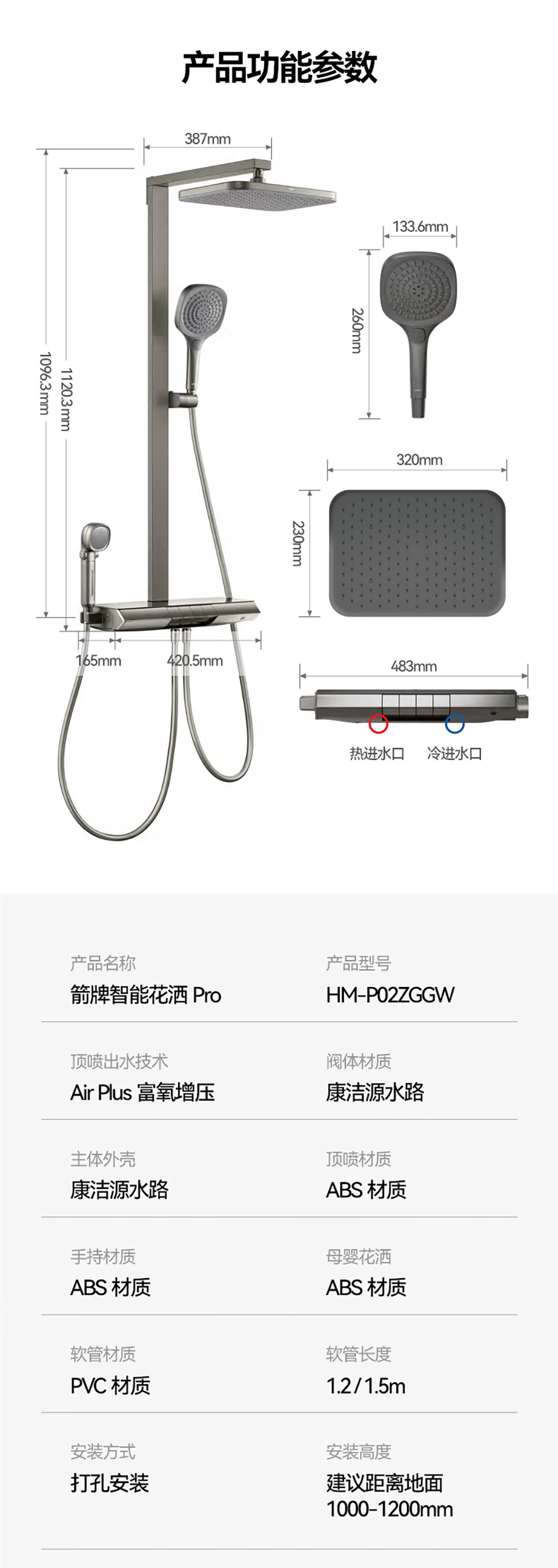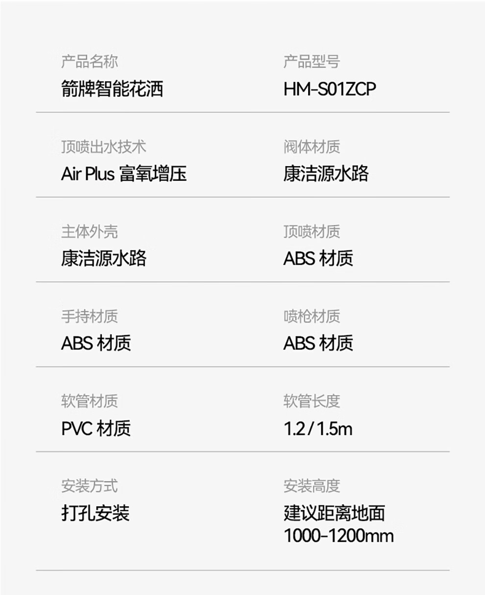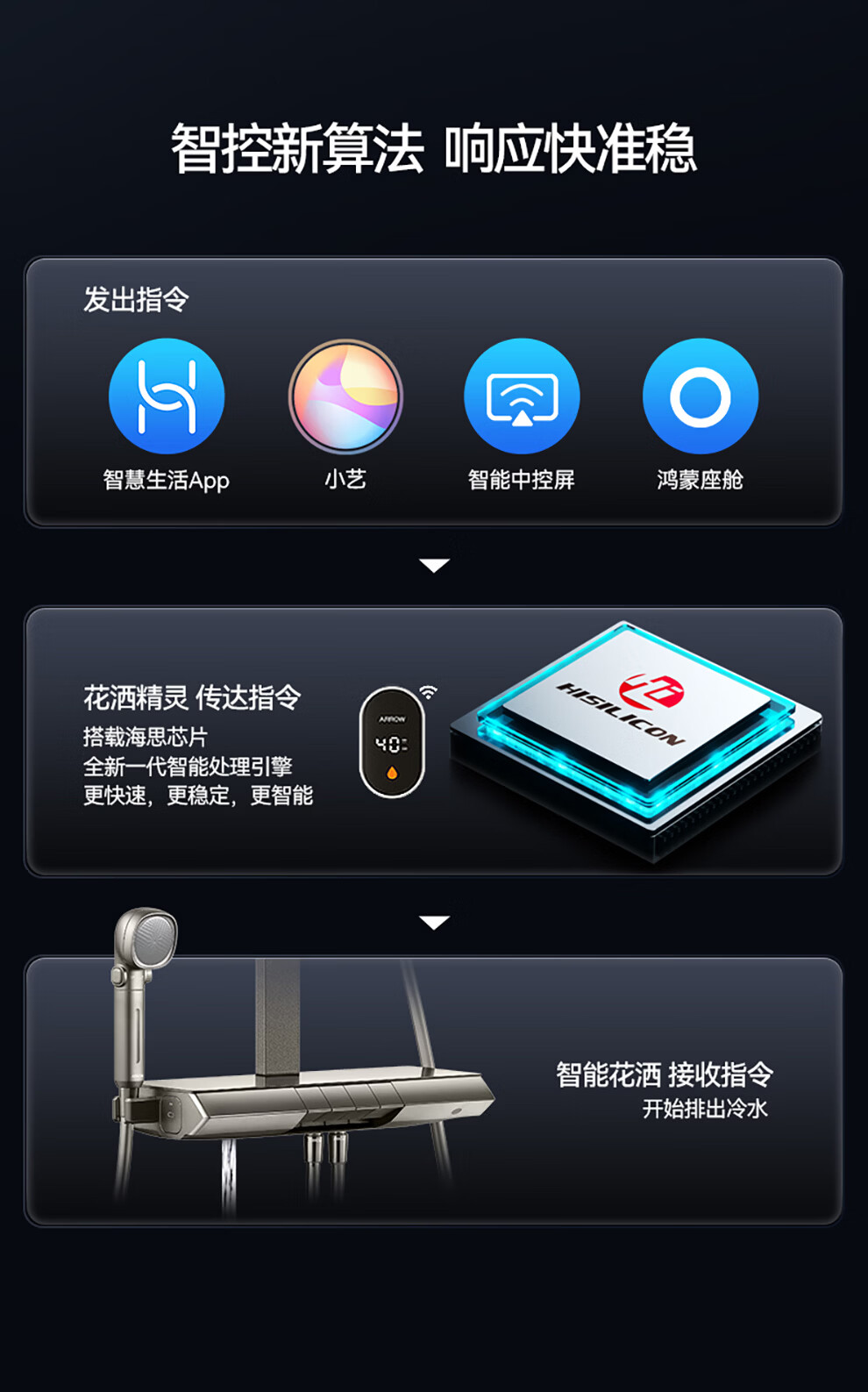 箭牌(ARROW)鸿蒙智选【智雨精灵】淋浴花洒套装0冷水恒温琴键增压花洒 鸿蒙智选花洒Pro-金属灰色