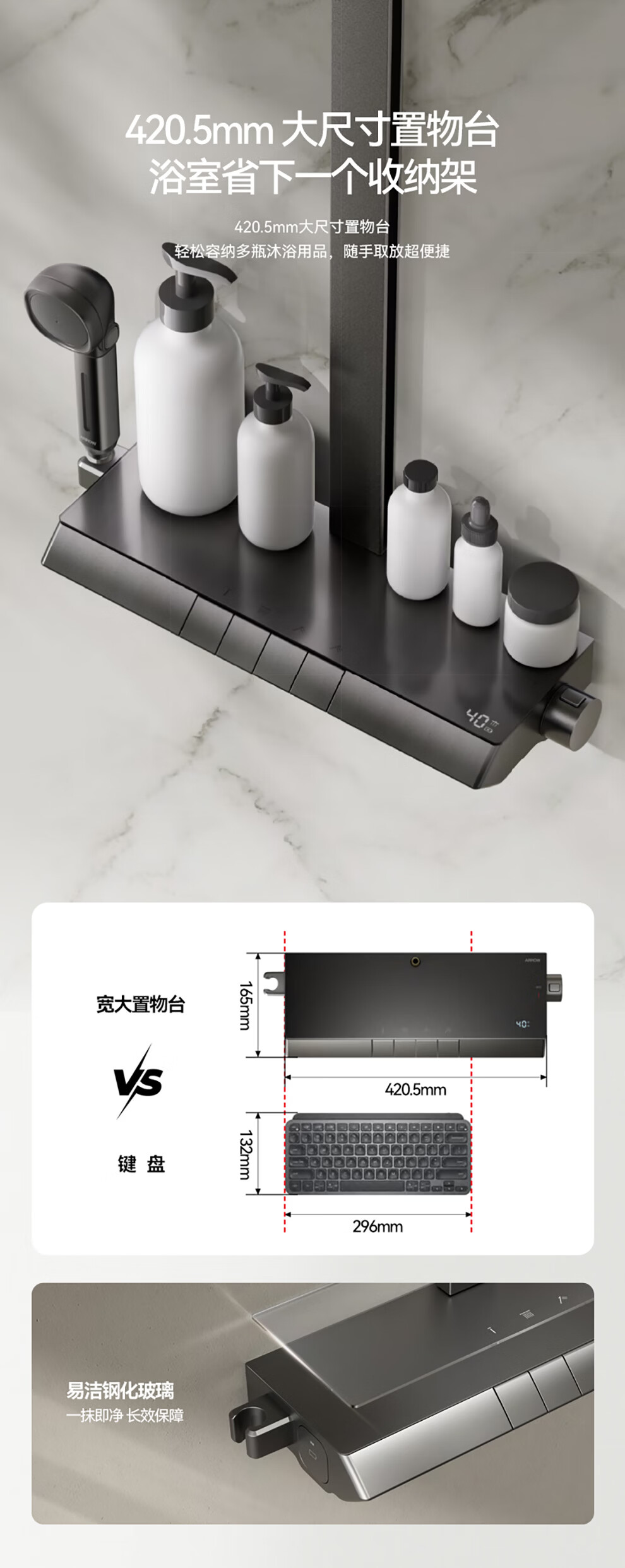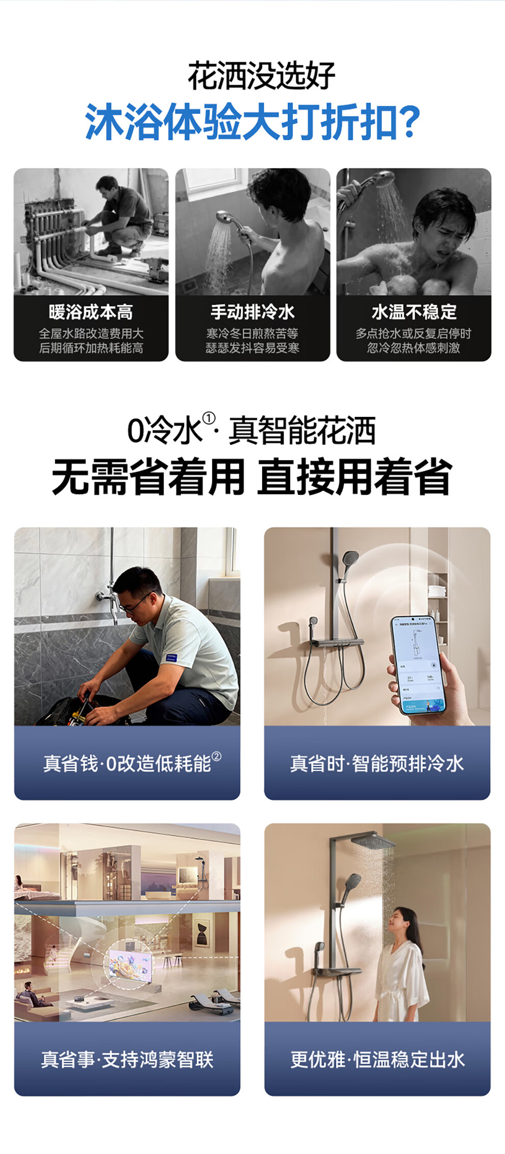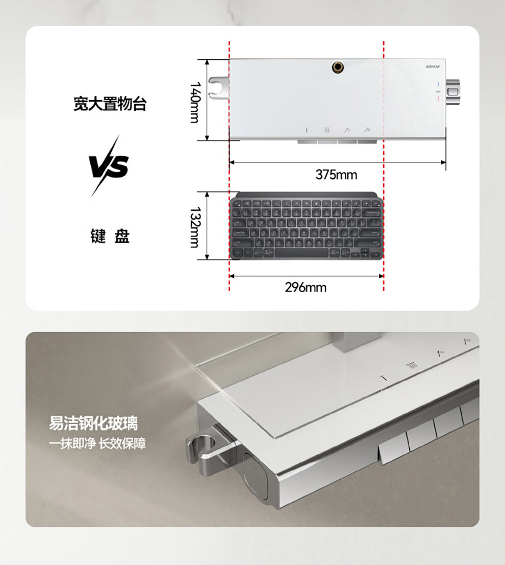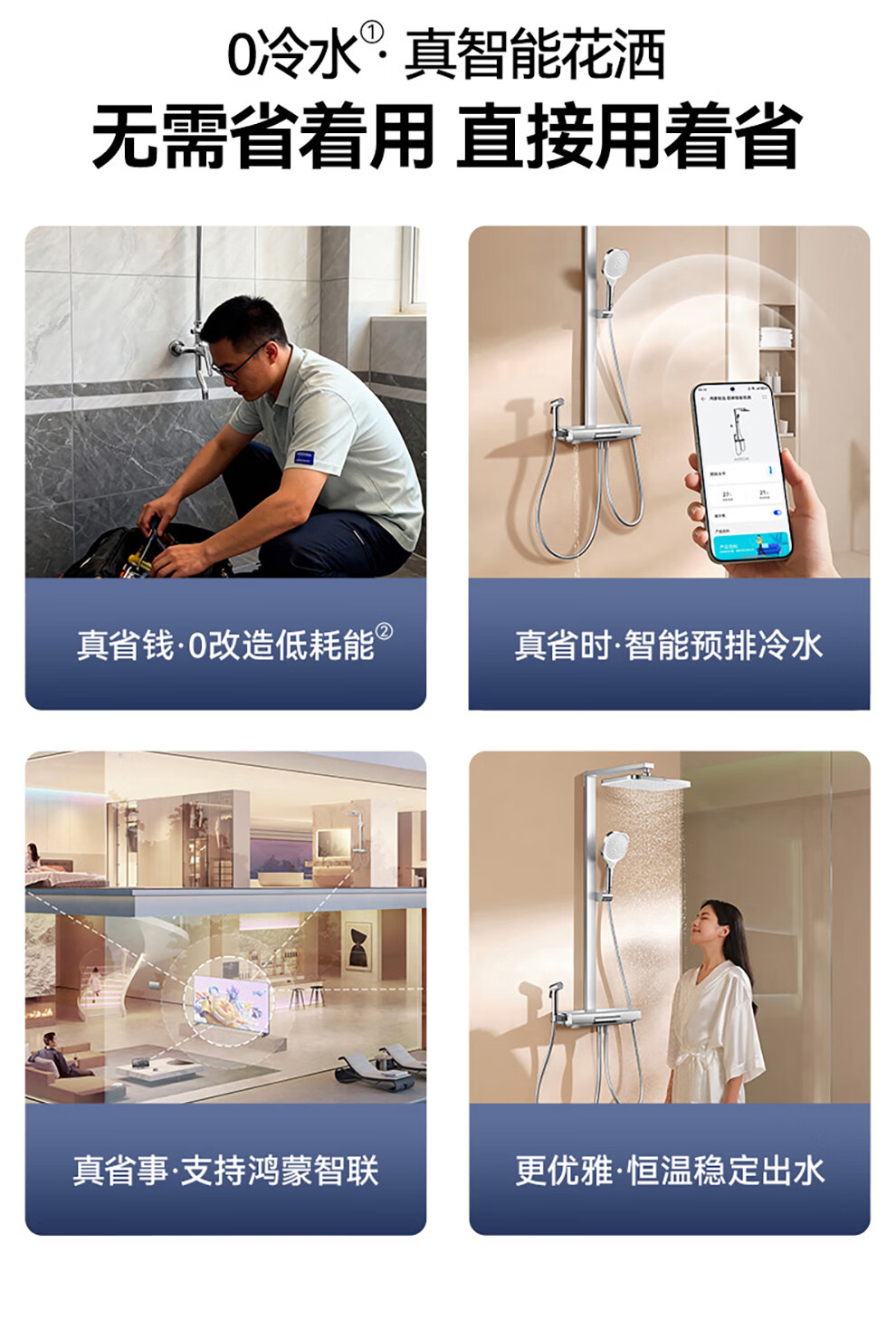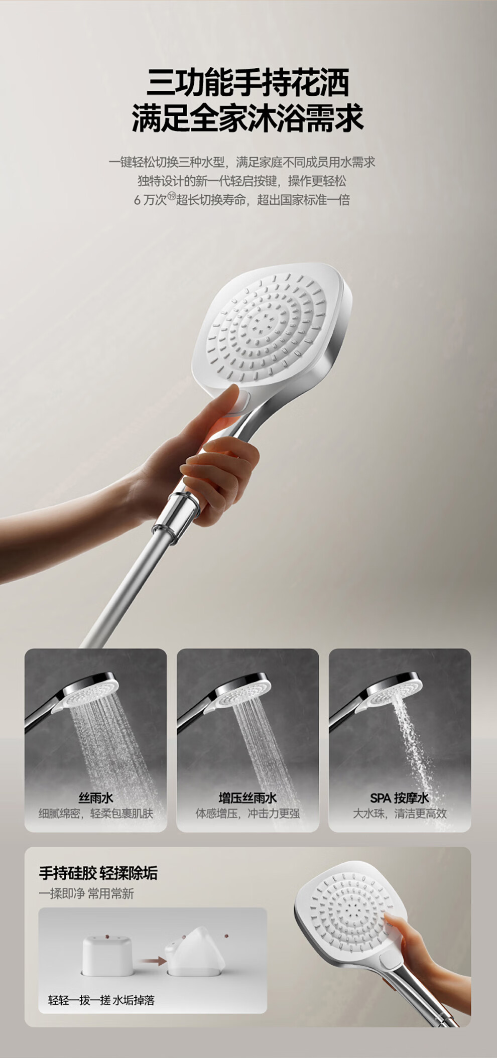 箭牌(ARROW)鸿蒙智选【智雨精灵】淋浴花洒套装0冷水恒温琴键增压花洒 鸿蒙智选花洒Pro-金属灰色