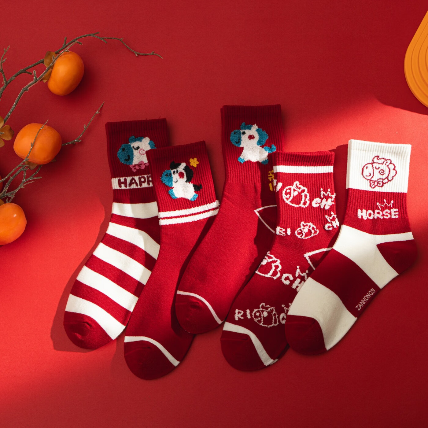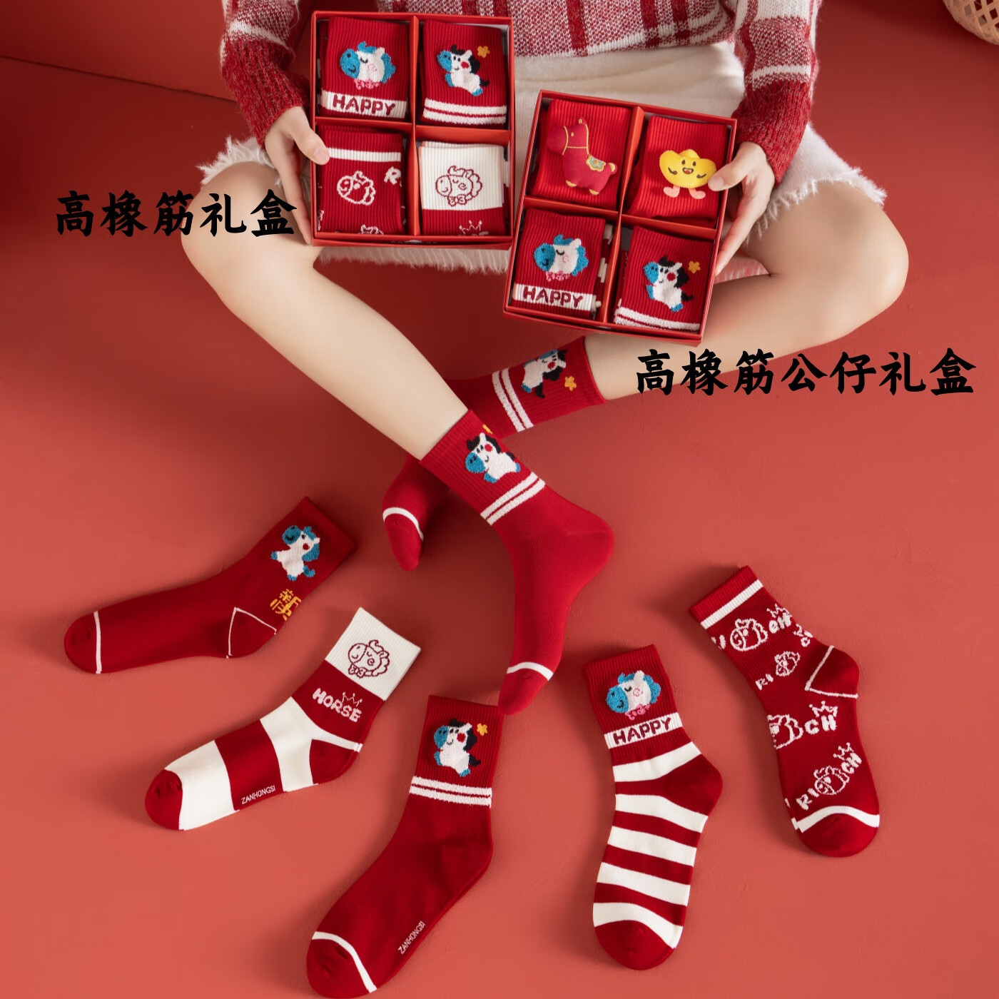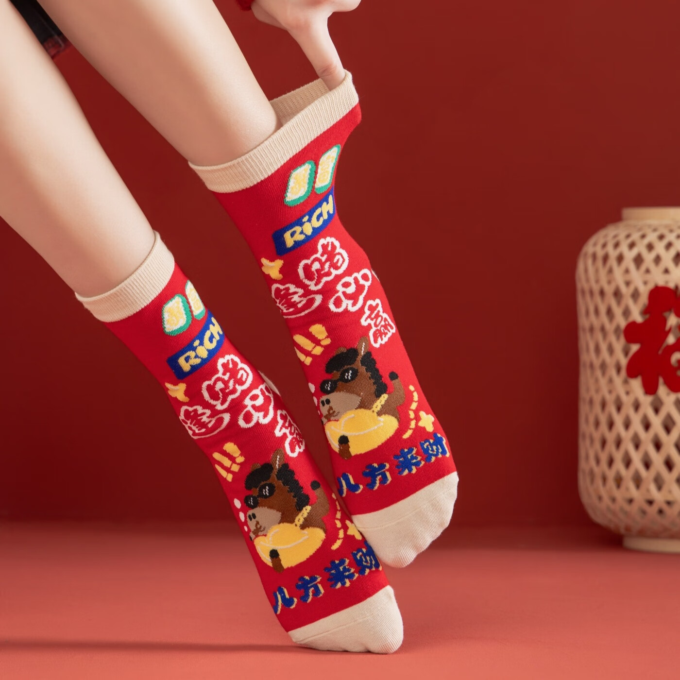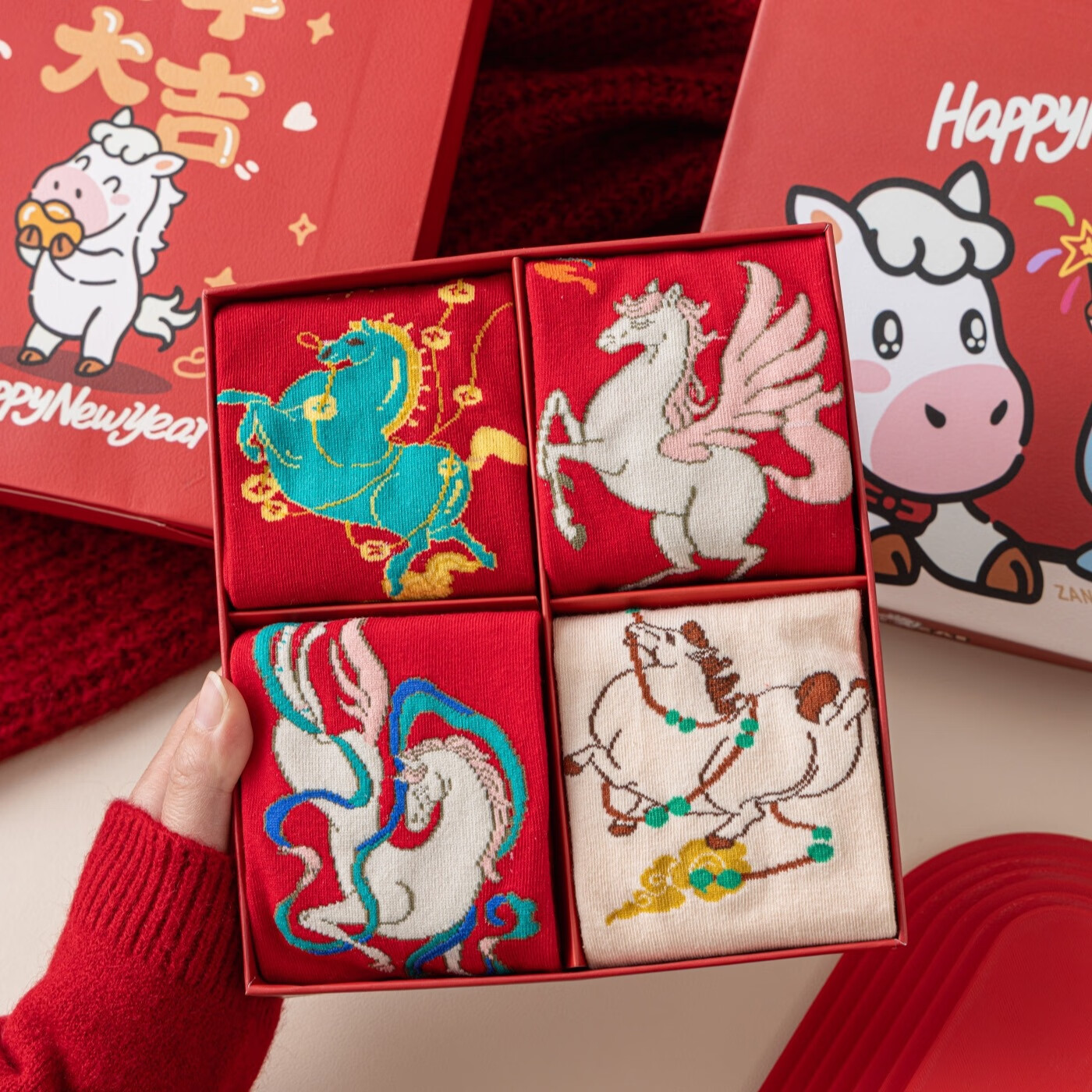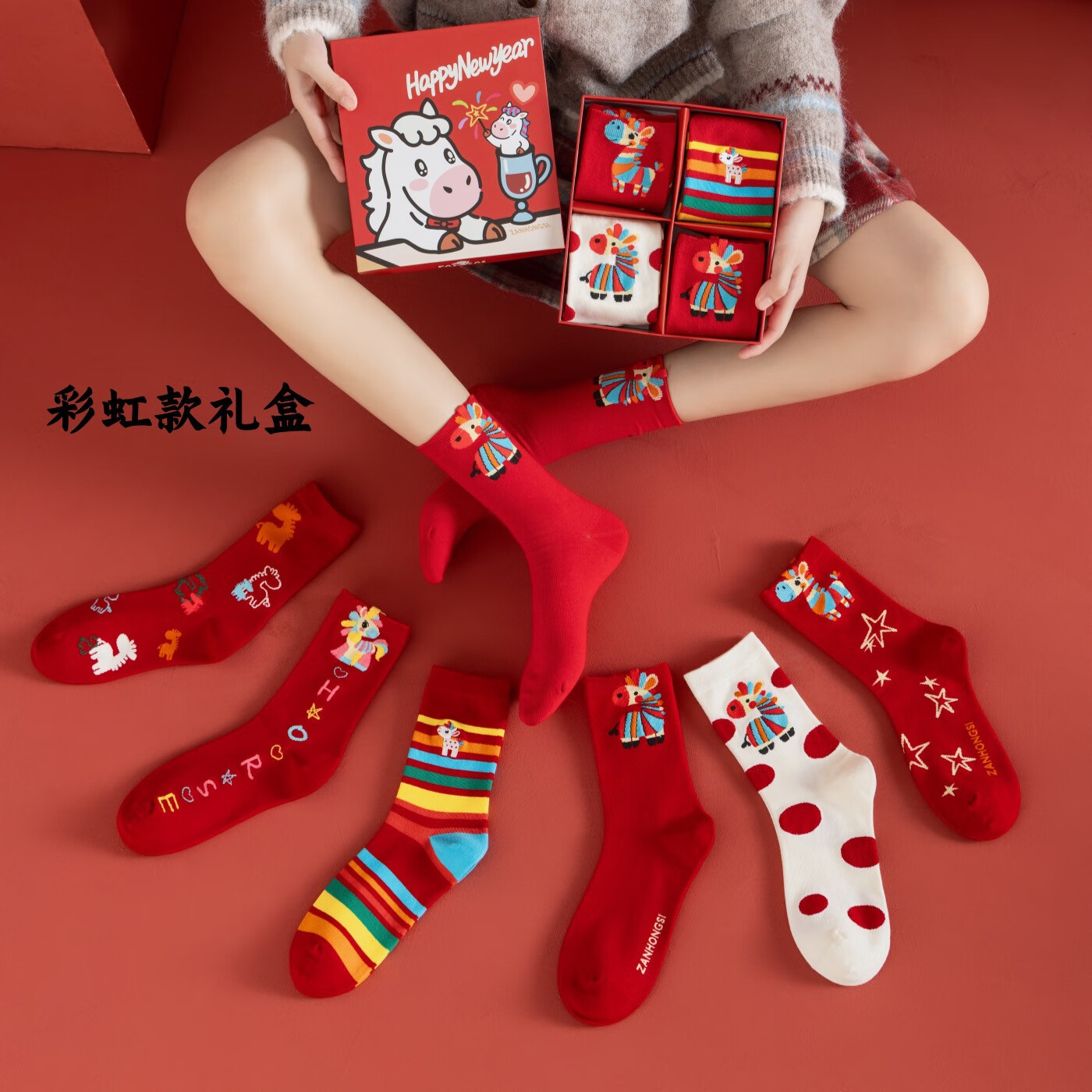 相于中马年本命年大红新年袜子男女中筒鸿运袜男女送礼礼盒秋冬中筒袜子 本村首富款 礼盒装 4双