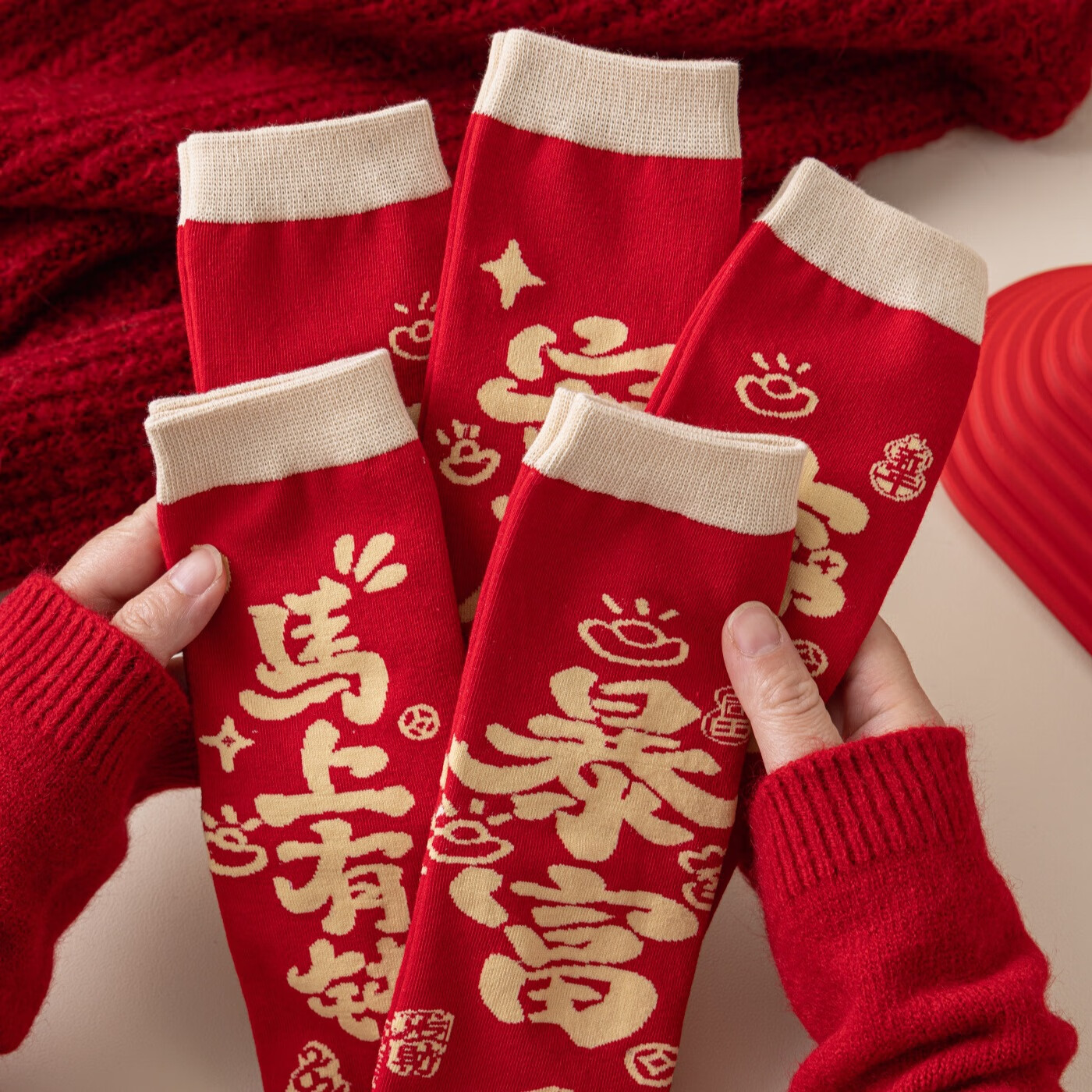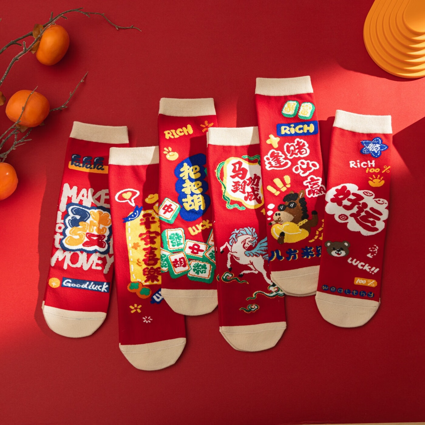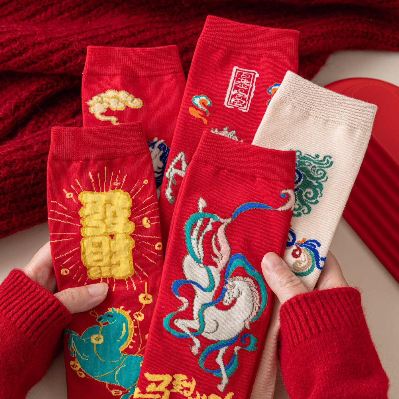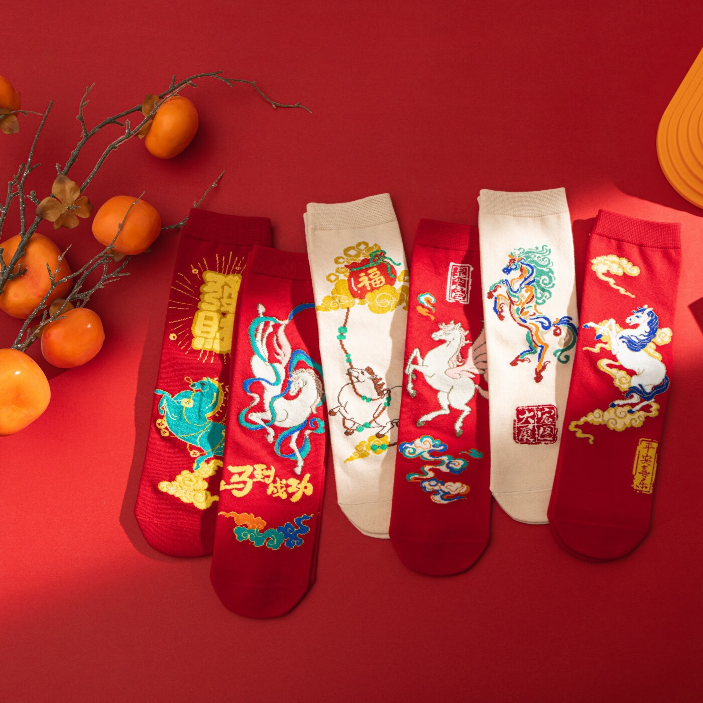 相于中马年本命年大红新年袜子男女中筒鸿运袜男女送礼礼盒秋冬中筒袜子 本村首富款 礼盒装 4双