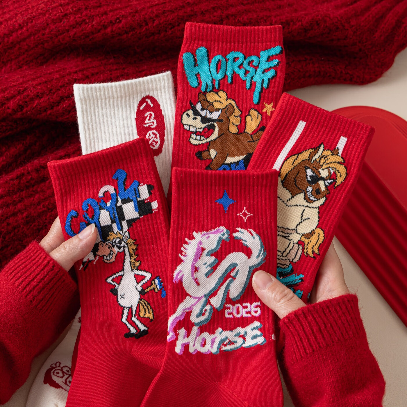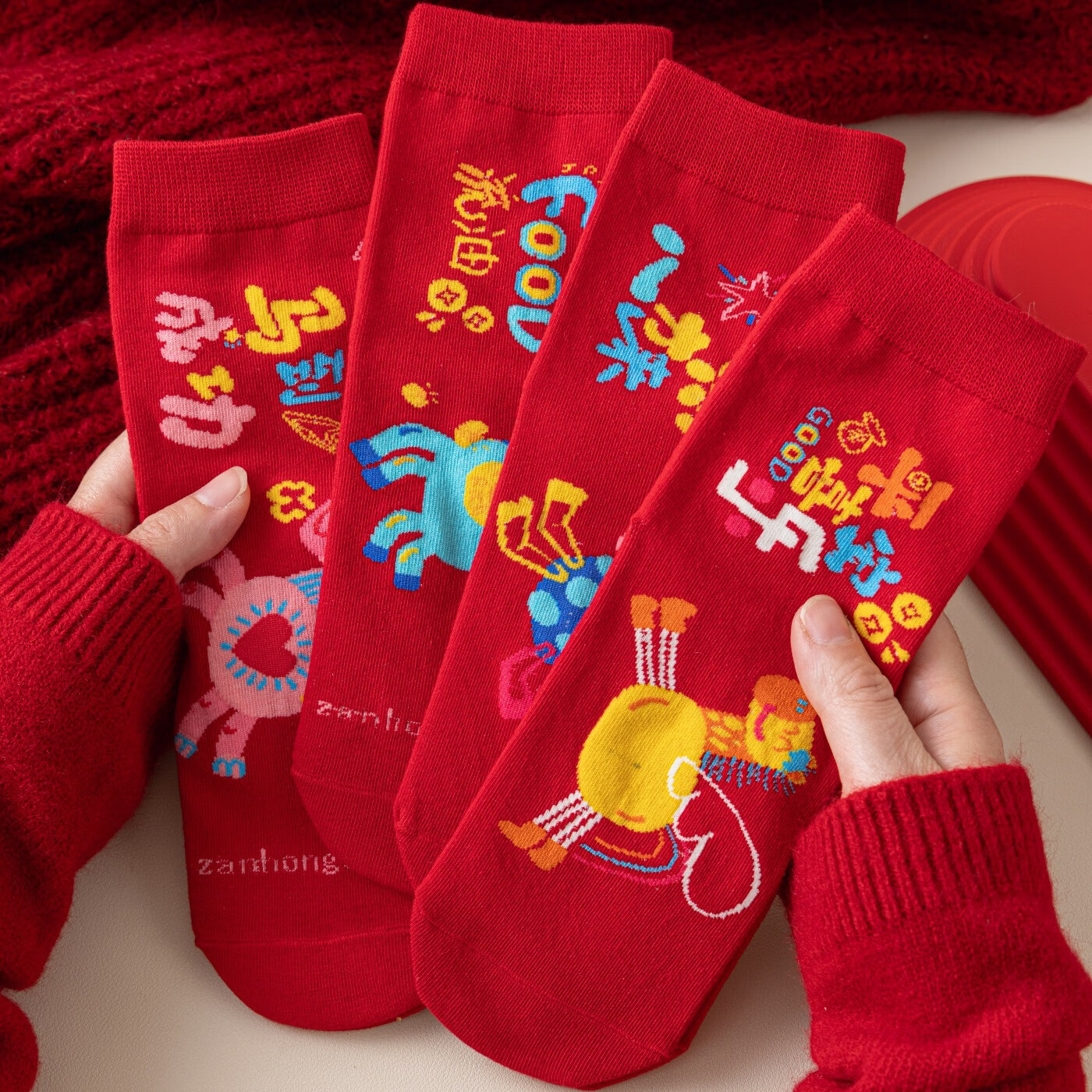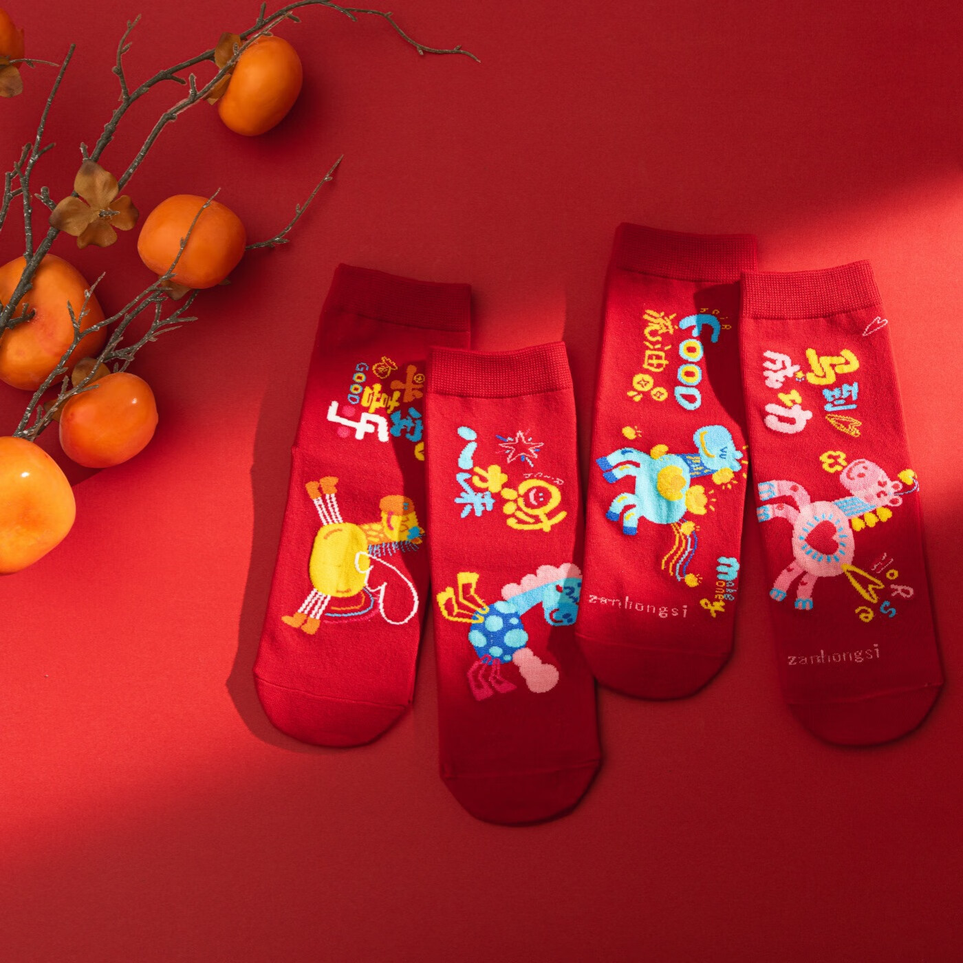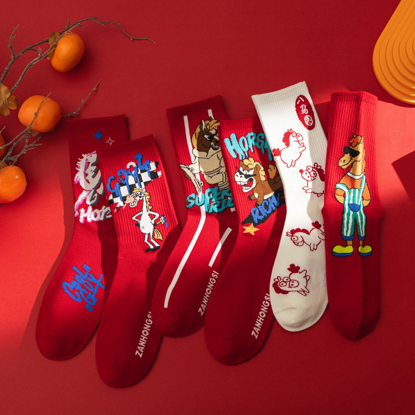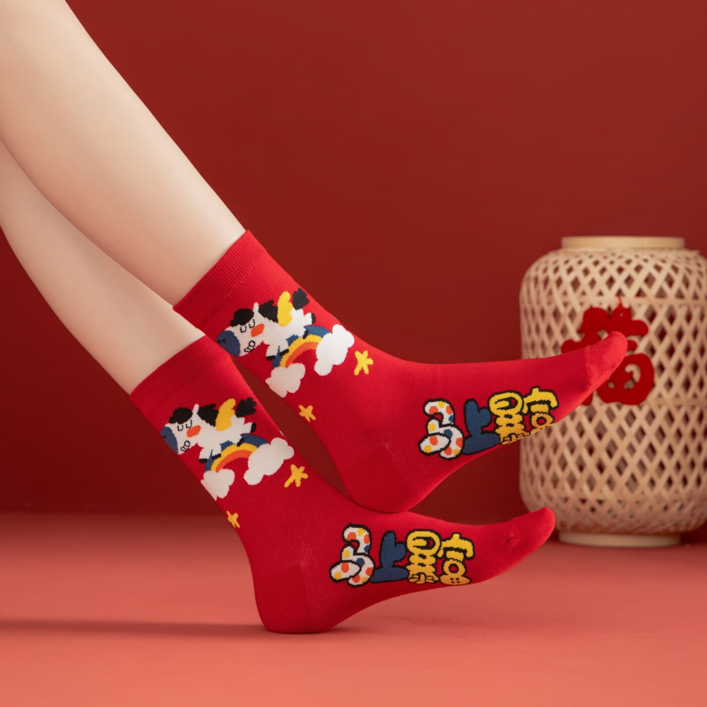 相于中马年本命年大红新年袜子男女中筒鸿运袜男女送礼礼盒秋冬中筒袜子 本村首富款 礼盒装 4双