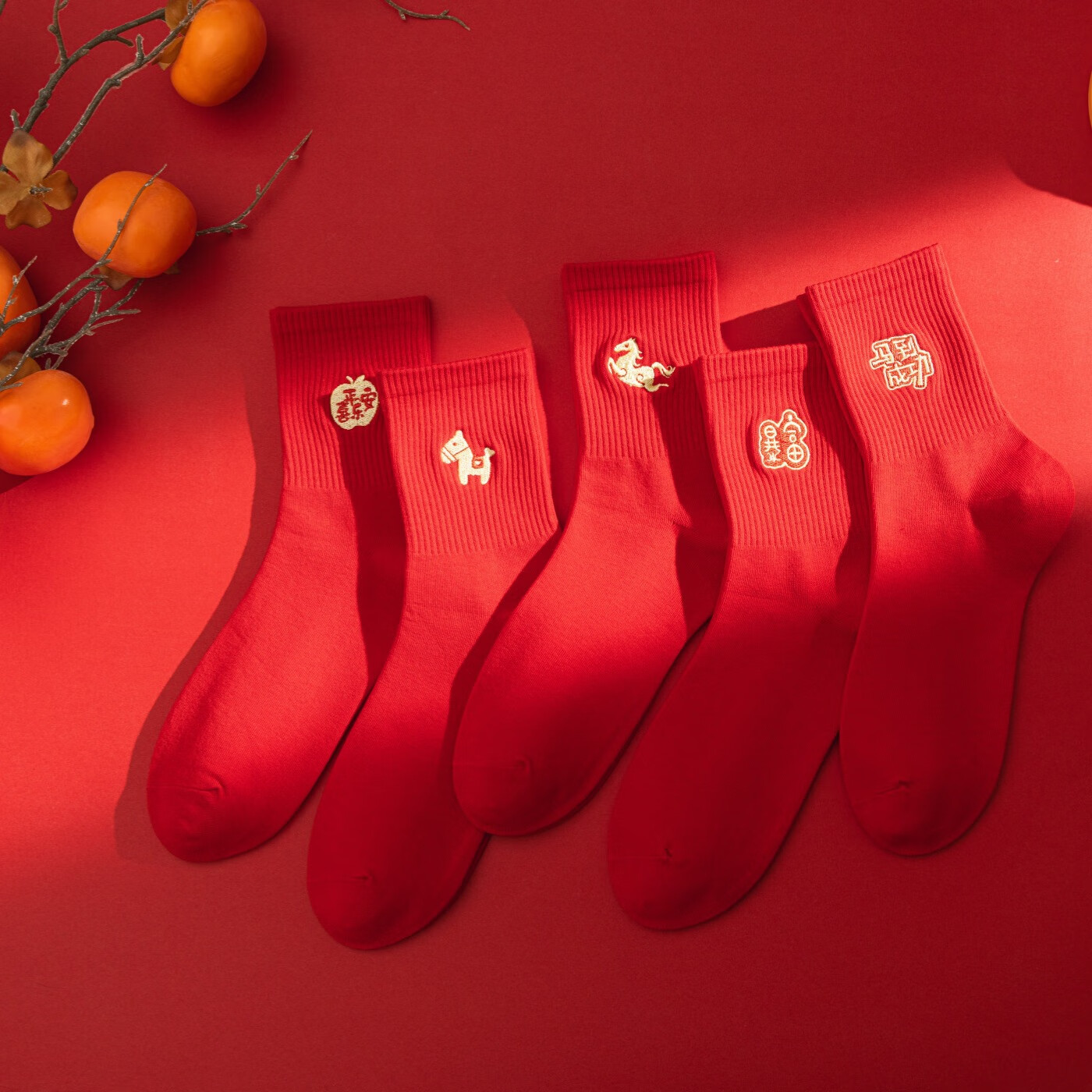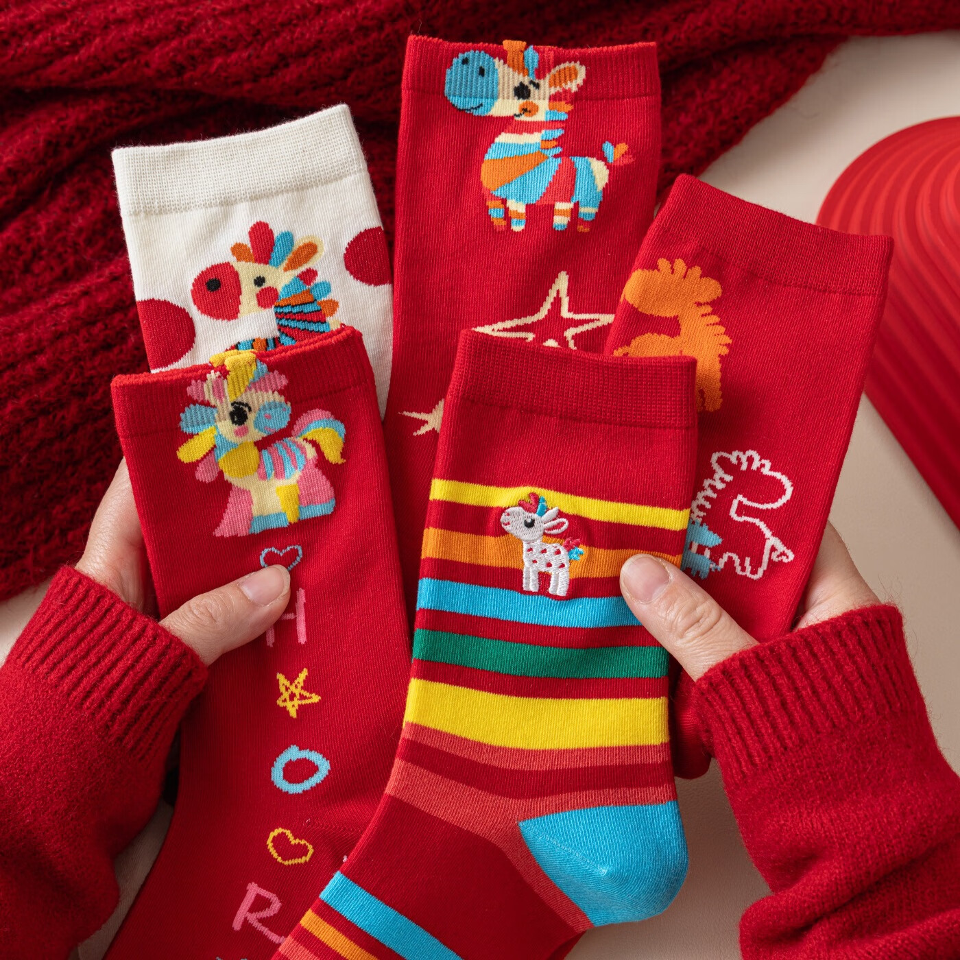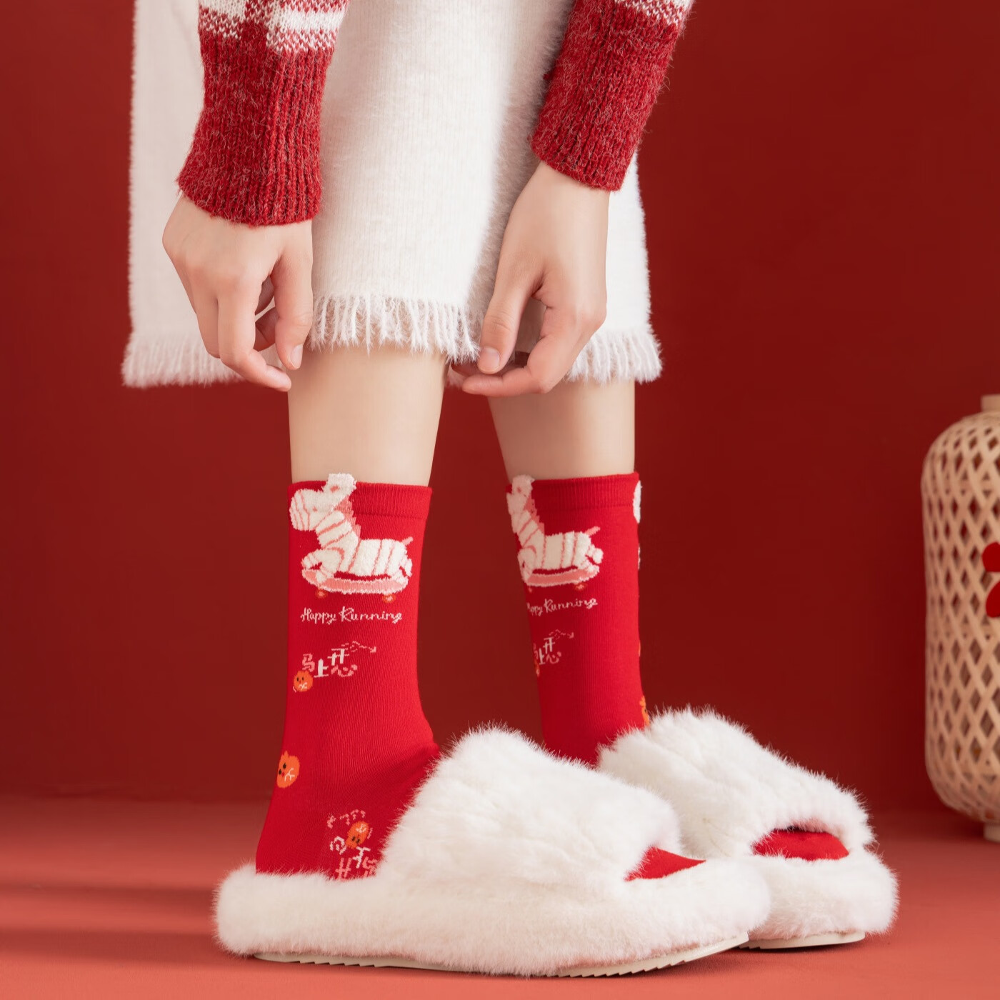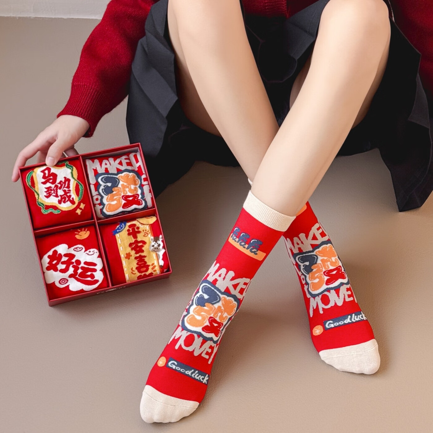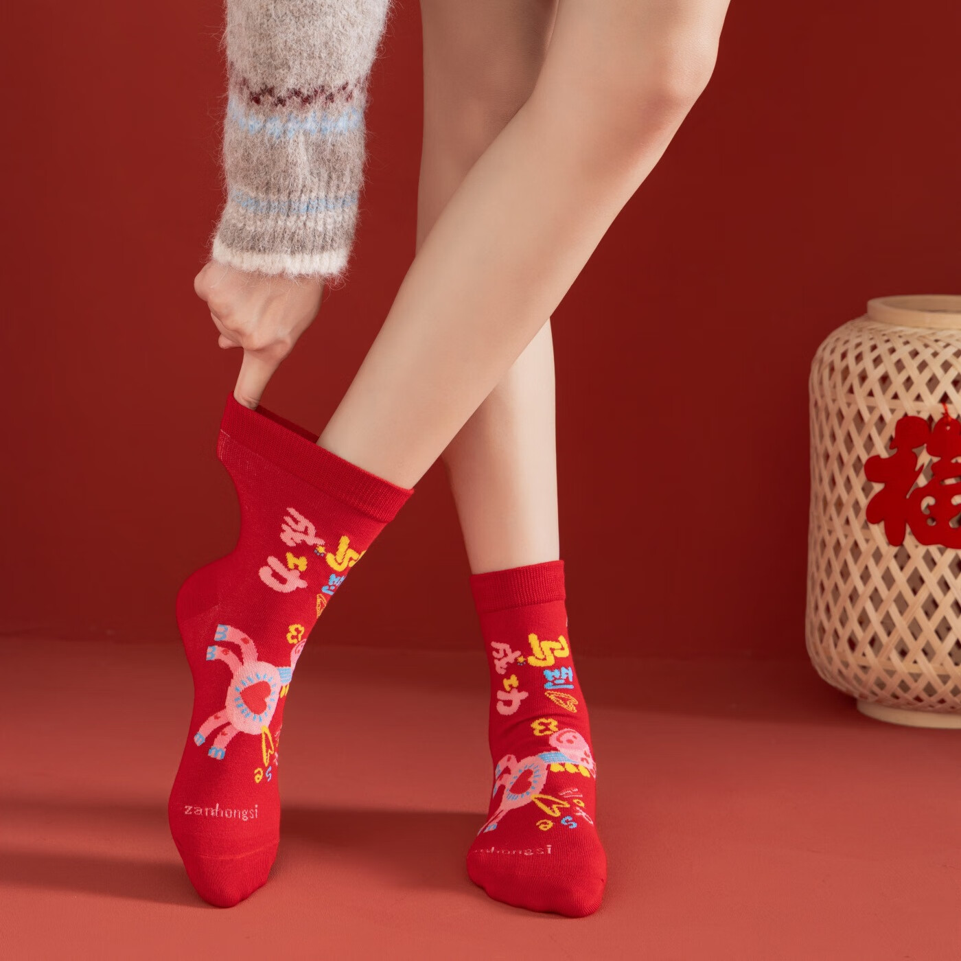 相于中马年本命年大红新年袜子男女中筒鸿运袜男女送礼礼盒秋冬中筒袜子 本村首富款 礼盒装 4双