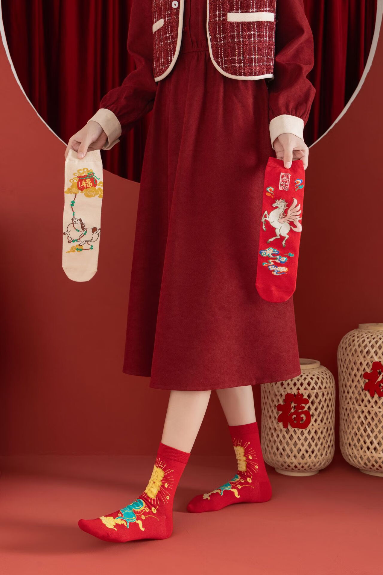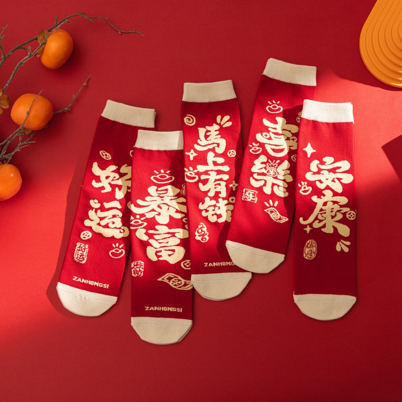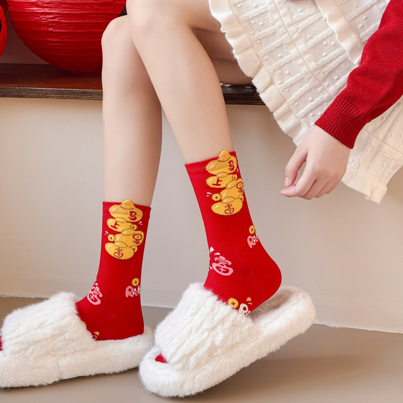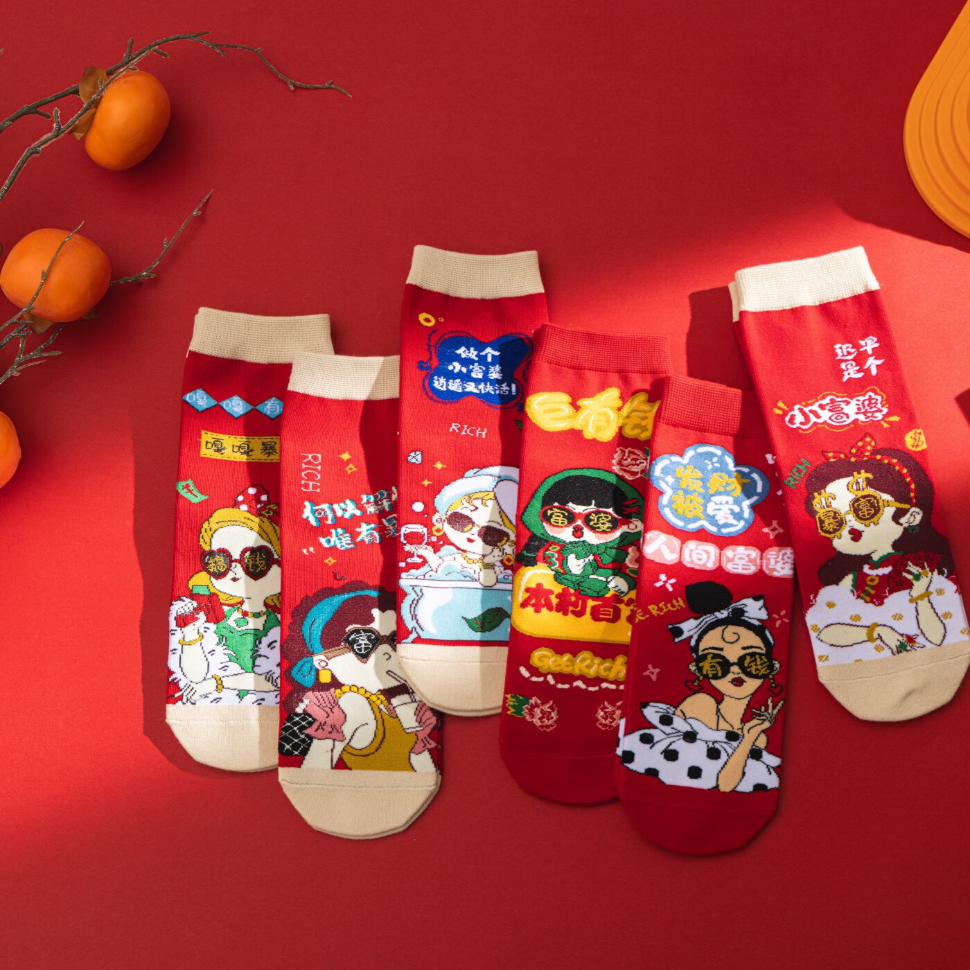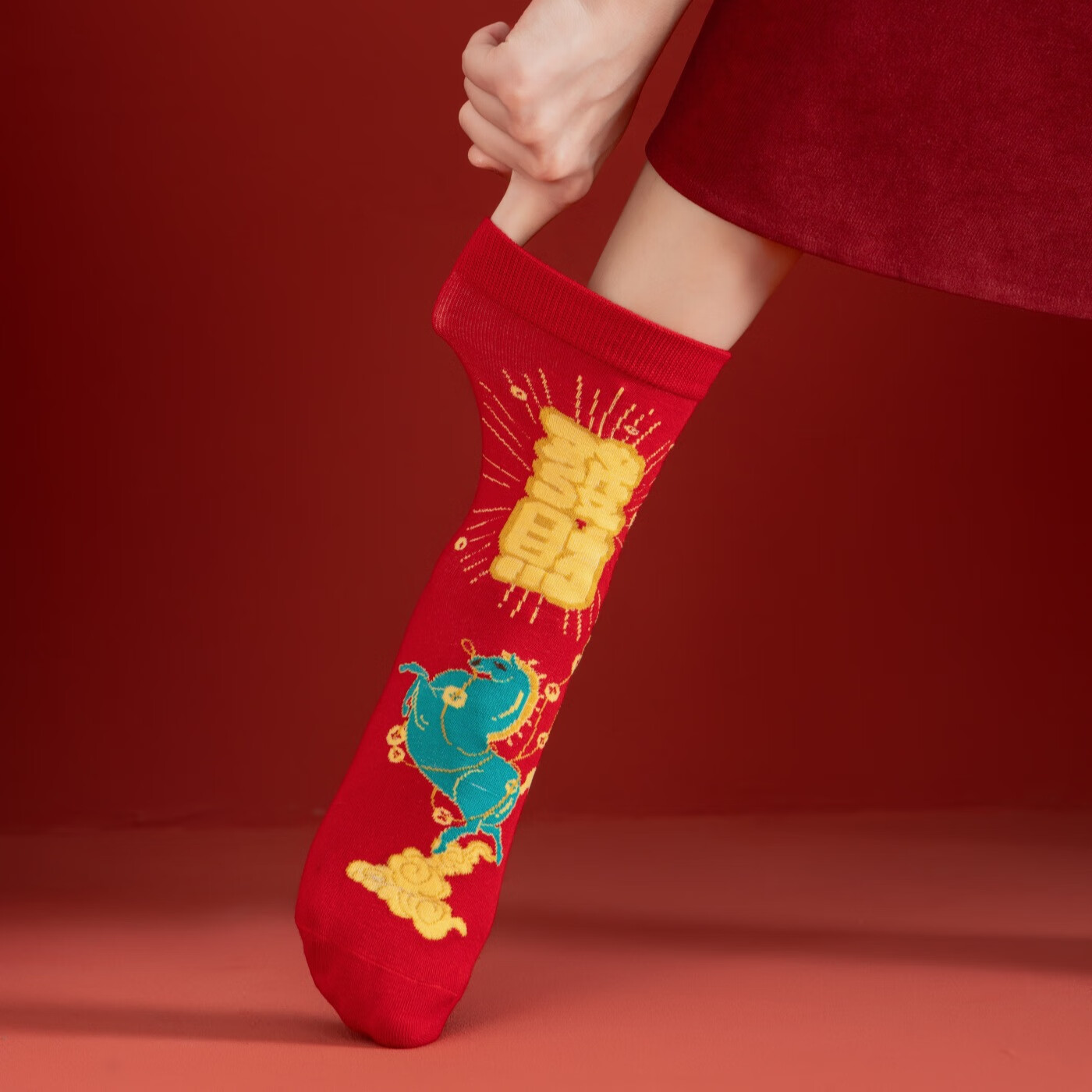 相于中马年本命年大红新年袜子男女中筒鸿运袜男女送礼礼盒秋冬中筒袜子 本村首富款 礼盒装 4双