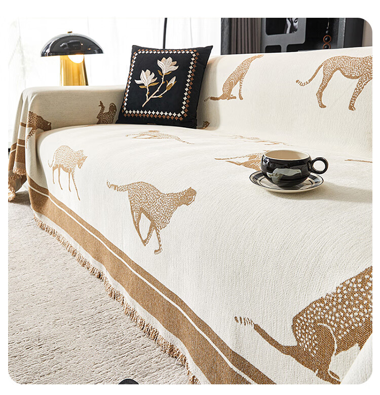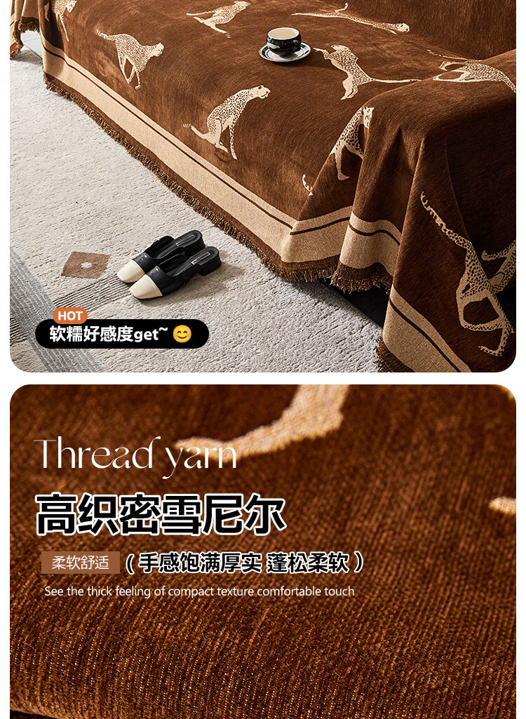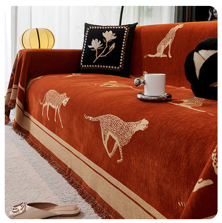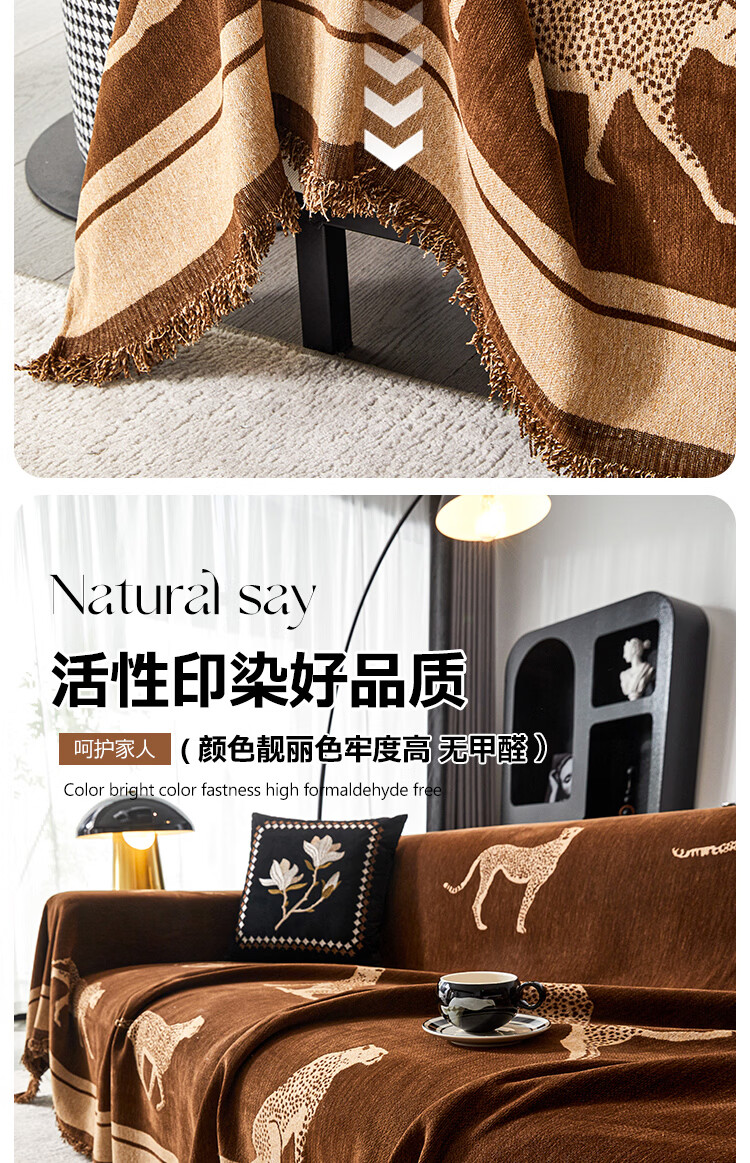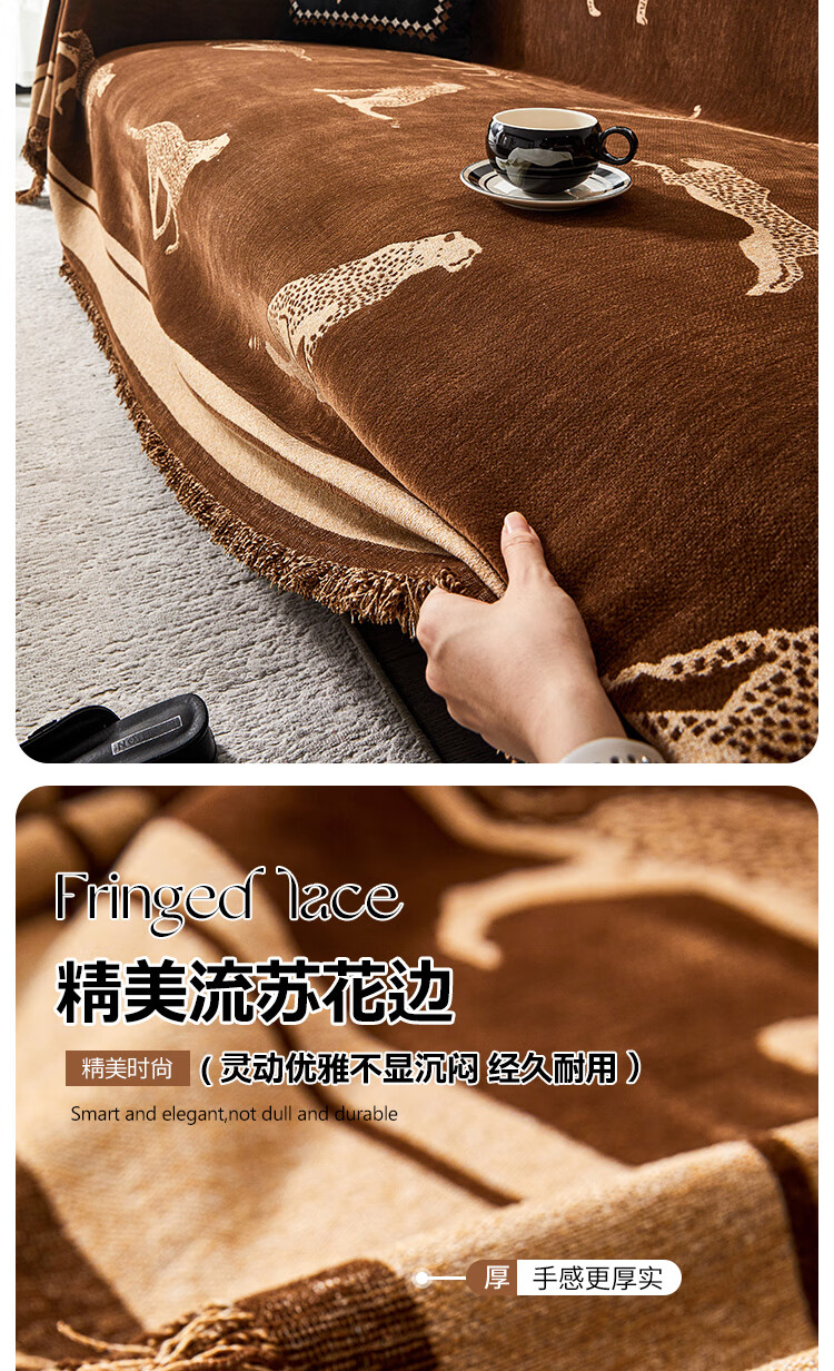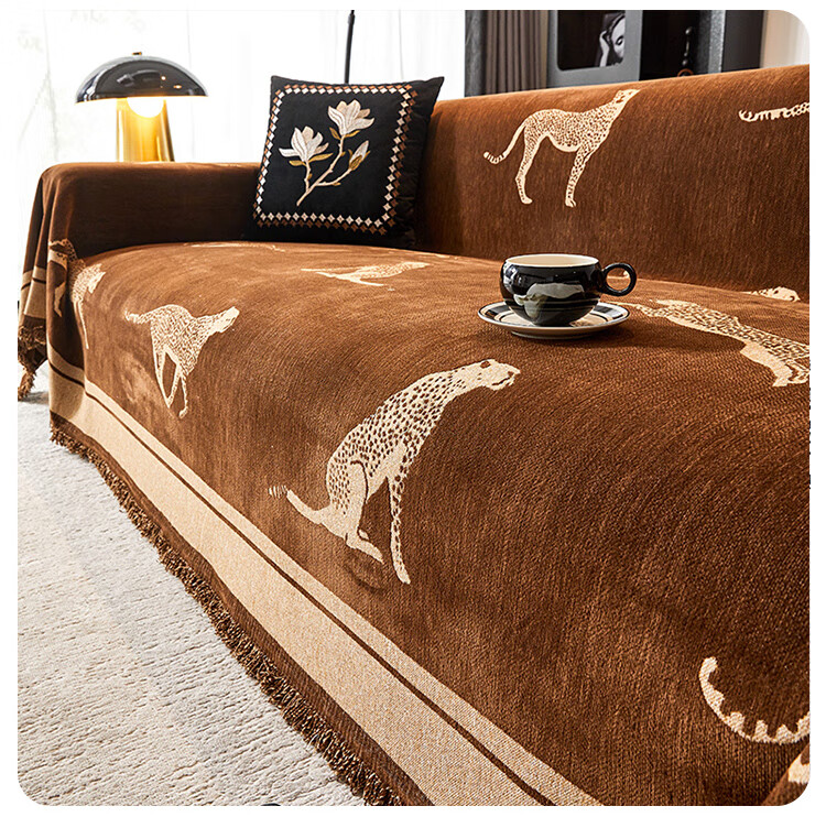 缔卓怡复古轻奢沙发盖布巾2026新款一整张坐垫套罩四季通用防猫抓 金钱豹-咖色 180cm*130cm (适用于单人位/脚踏)